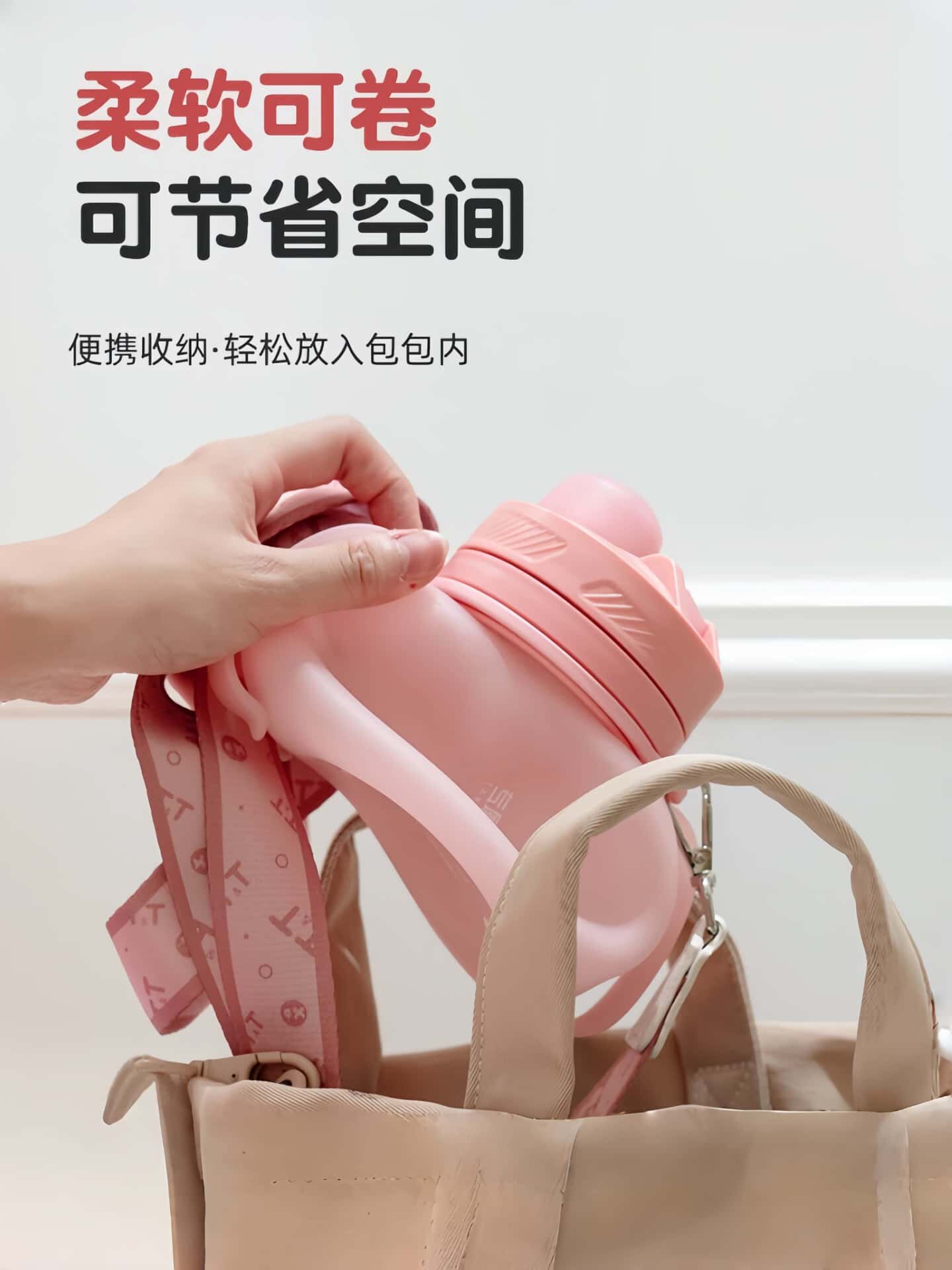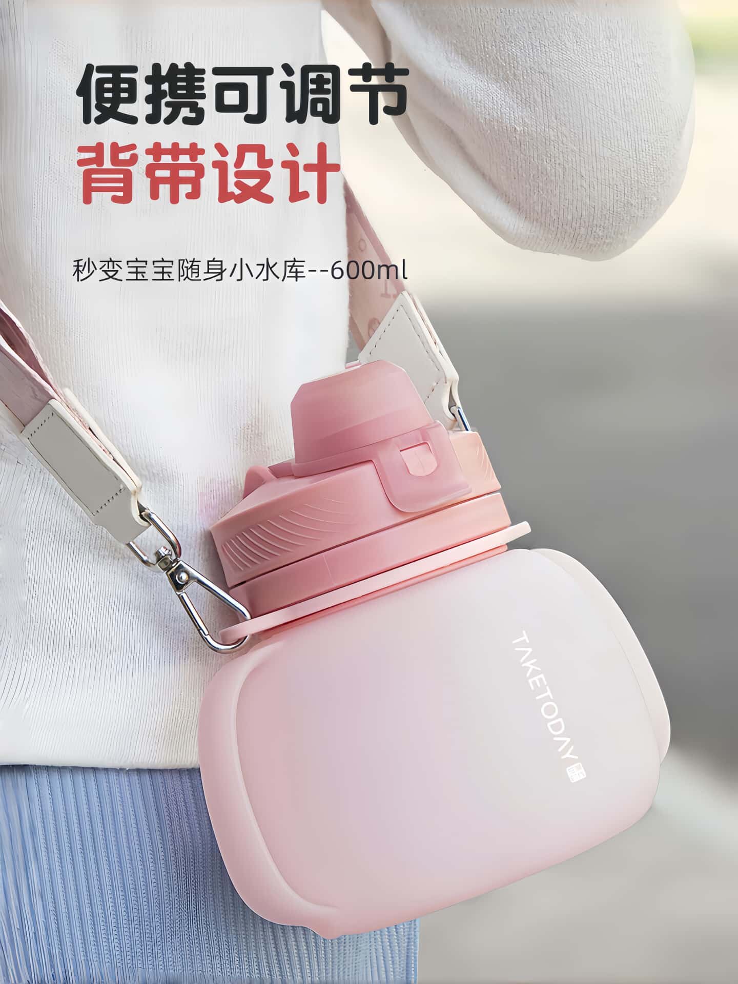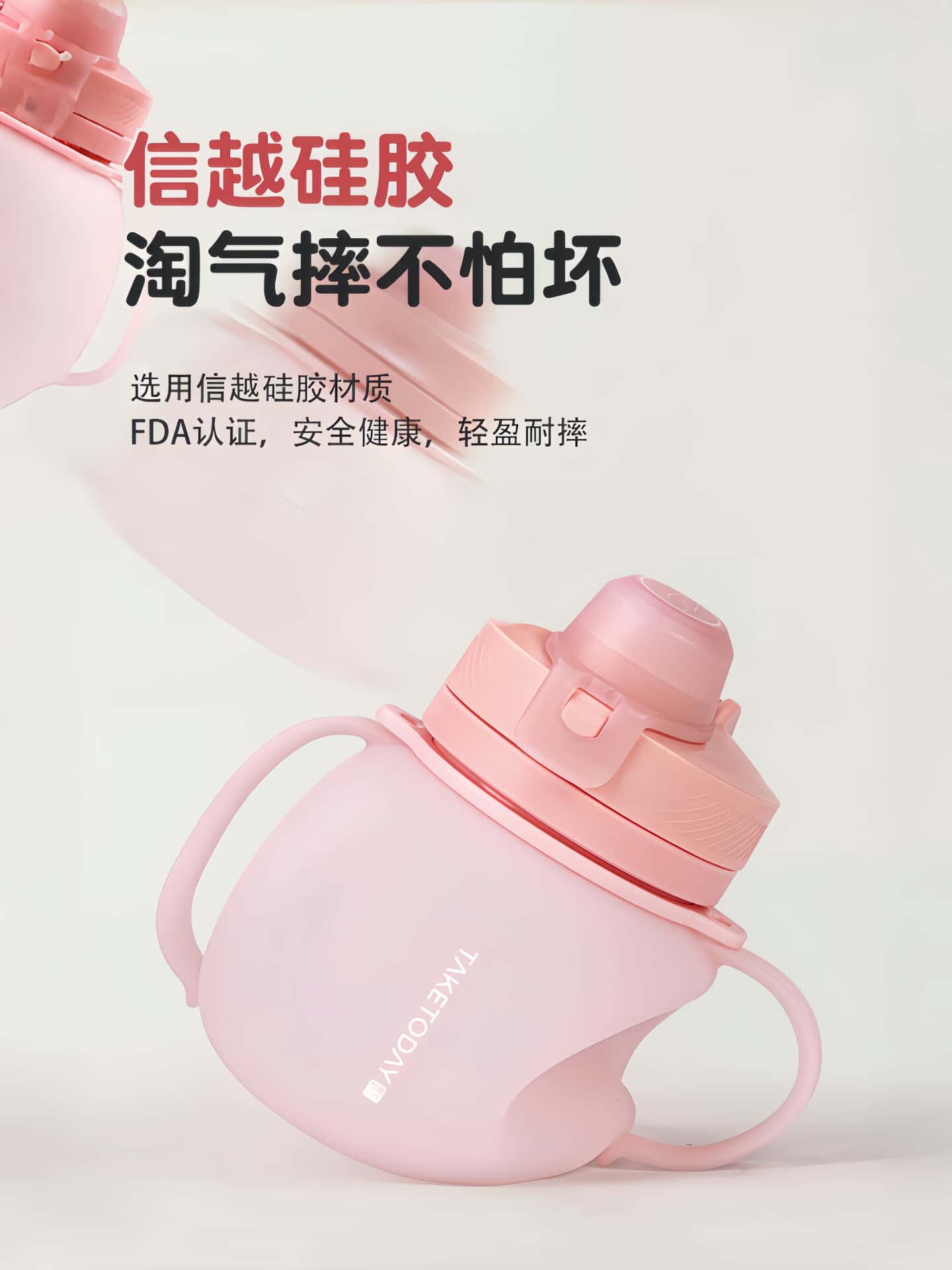 水杯女生高顔值矽膠吸琯雙飲口耐摔耐高溫可斜背外出攜帶折疊水壺