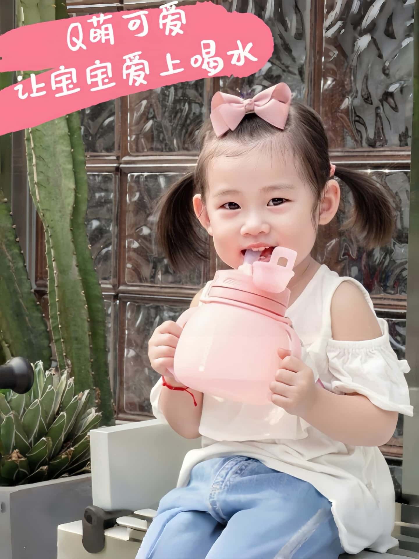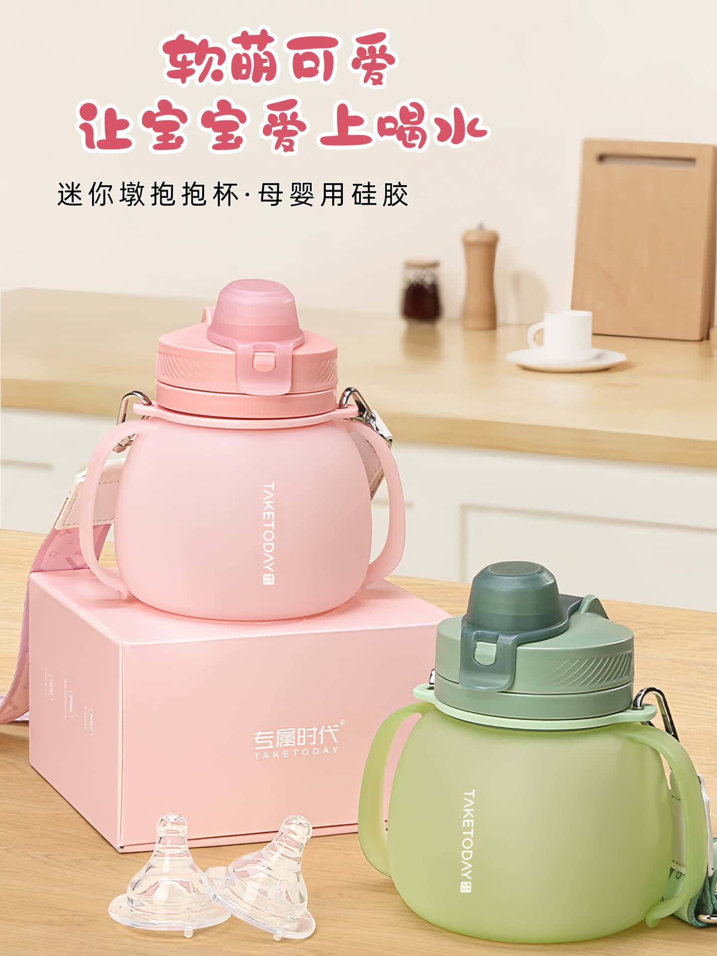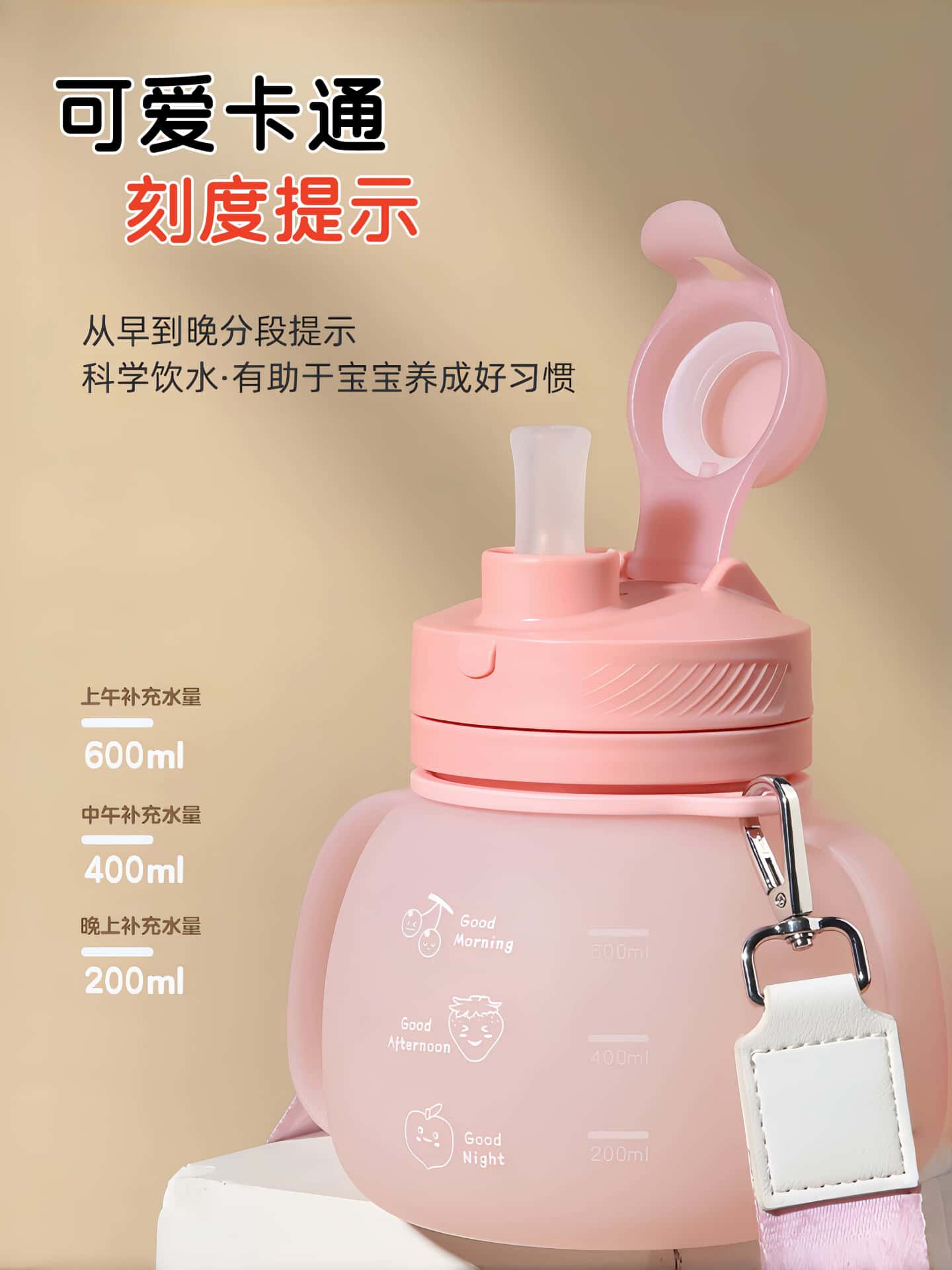 水杯女生高顔值矽膠吸琯雙飲口耐摔耐高溫可斜背外出攜帶折疊水壺