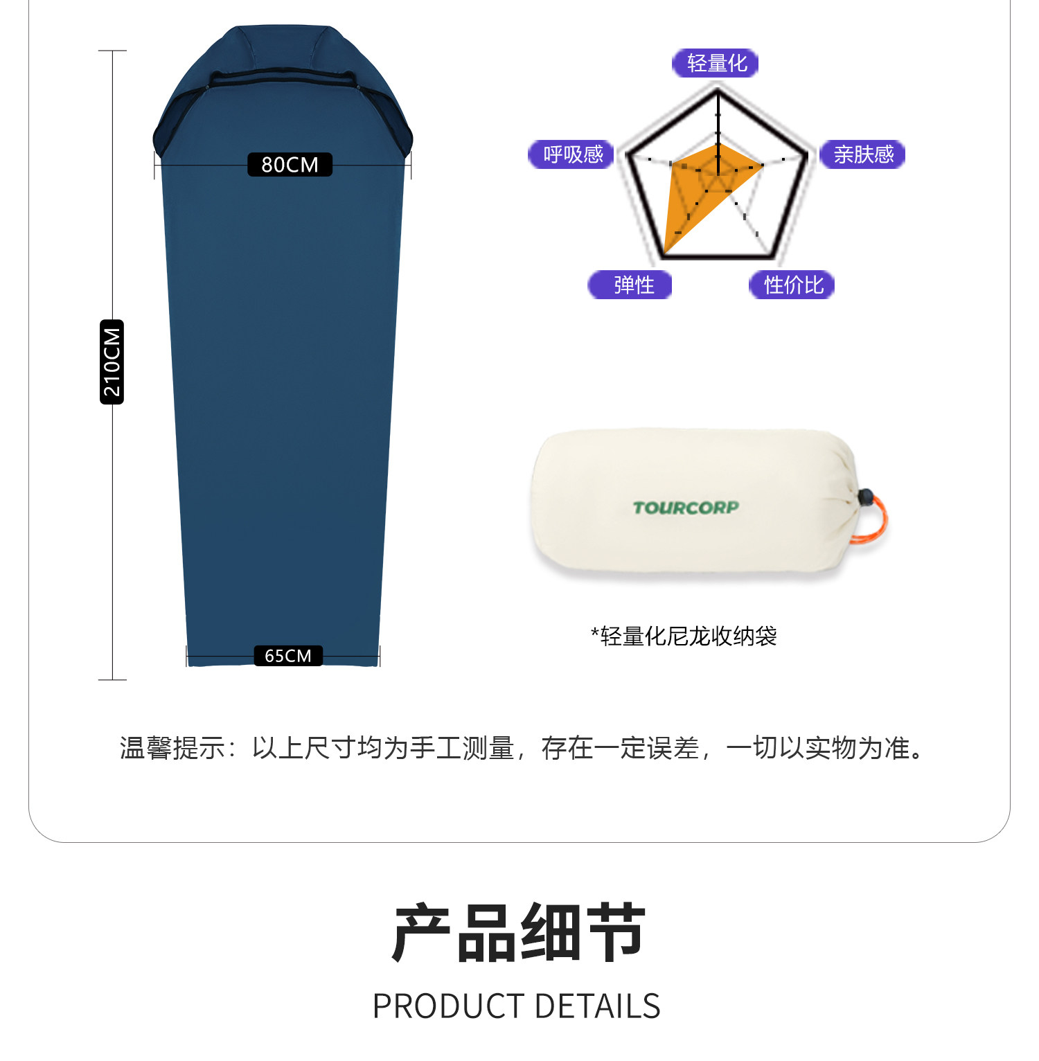 TOURCORP戶外隔髒睡袋內膽高彈力成年薄款輕盈可攜式旅行酒店衛生