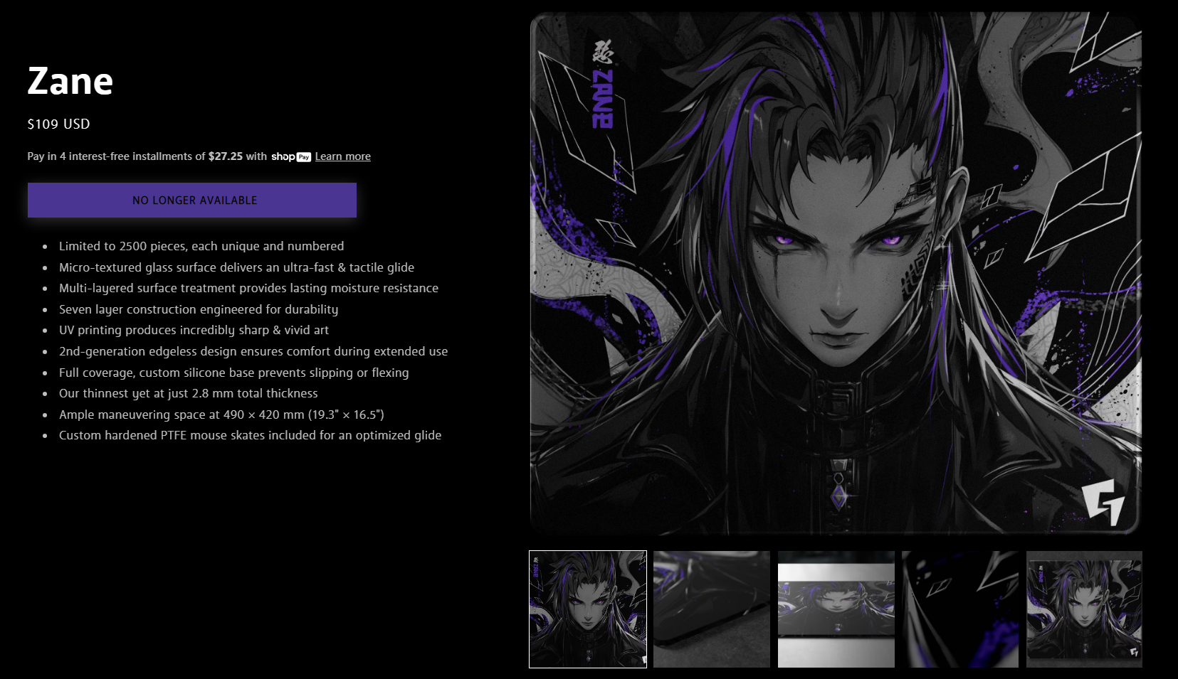 GLSSWRKS Zane二次元鋼化玻璃滑鼠墊桌墊辦公電競遊戯FPS專用大號