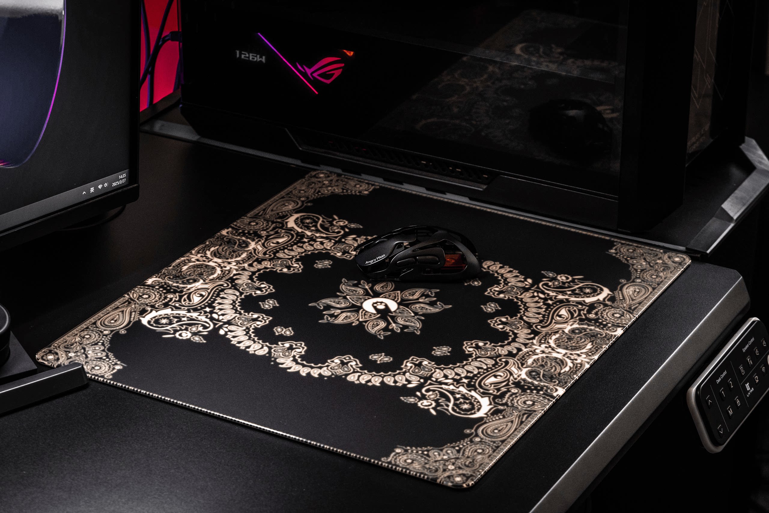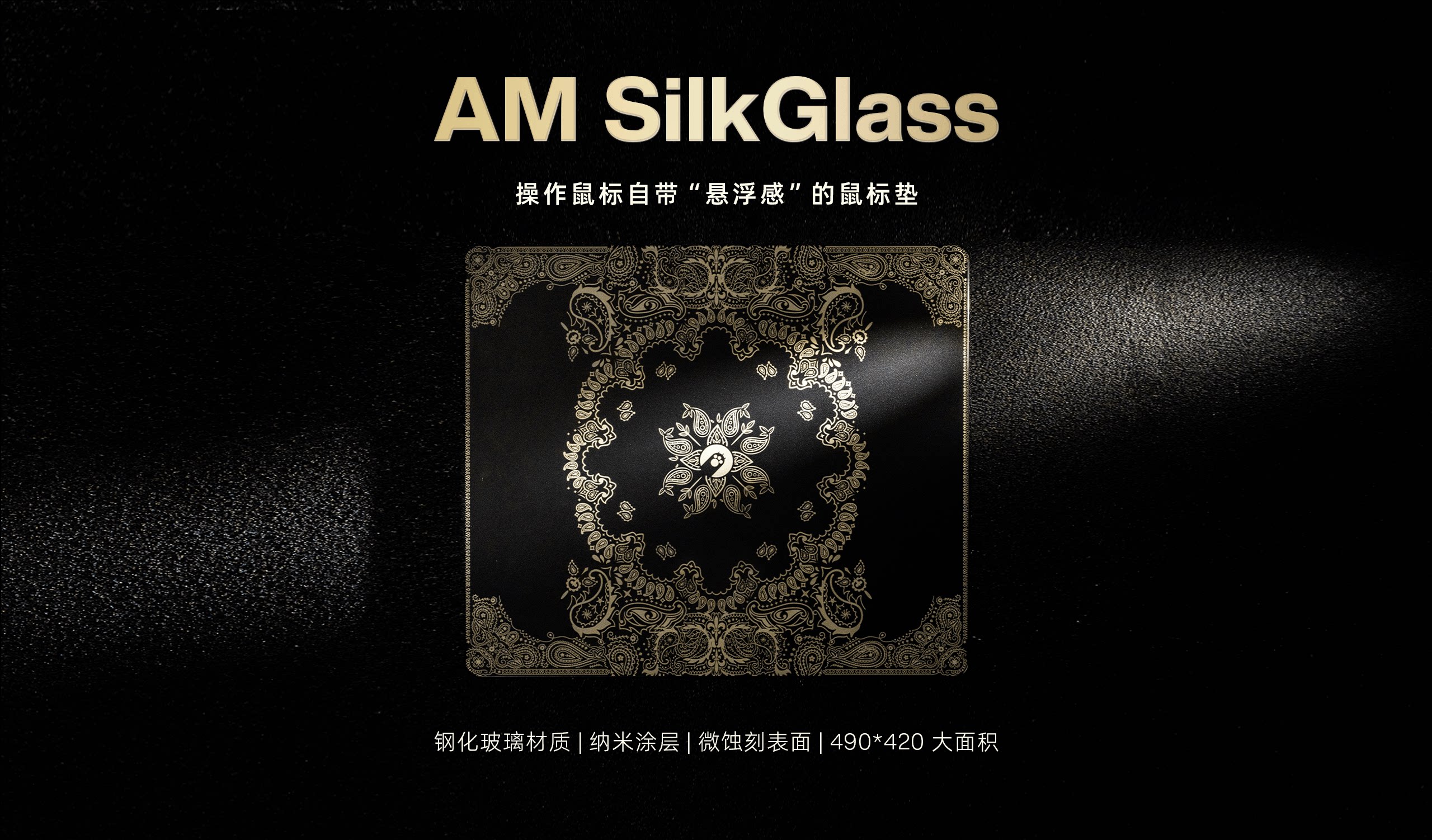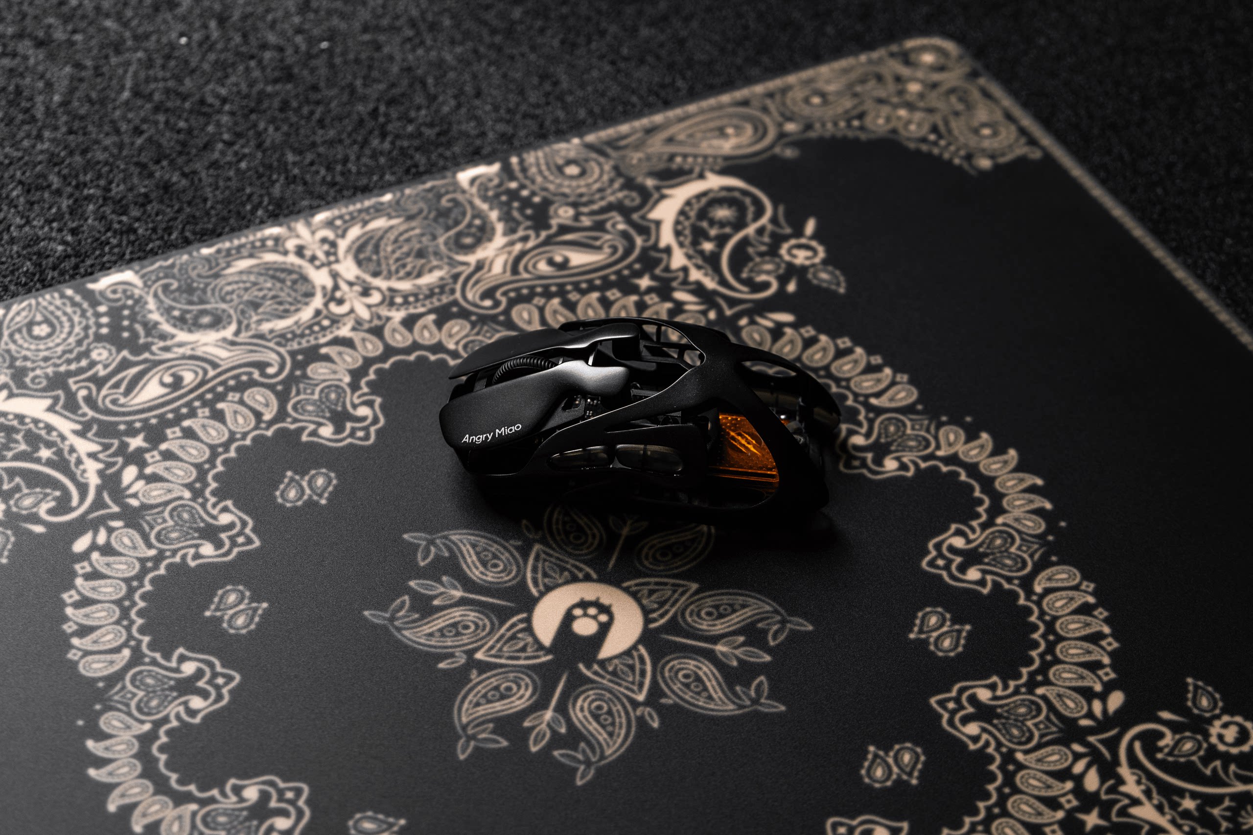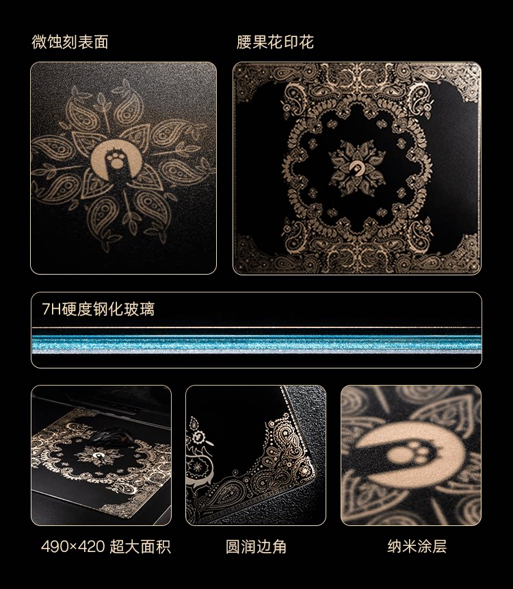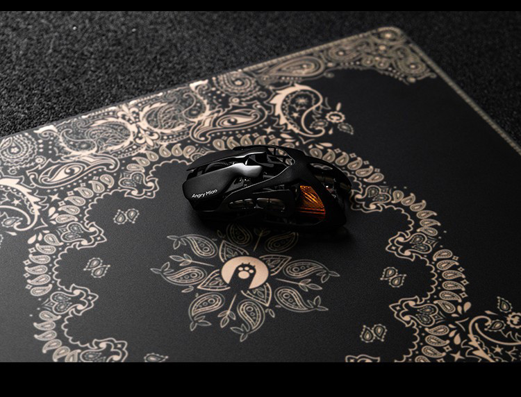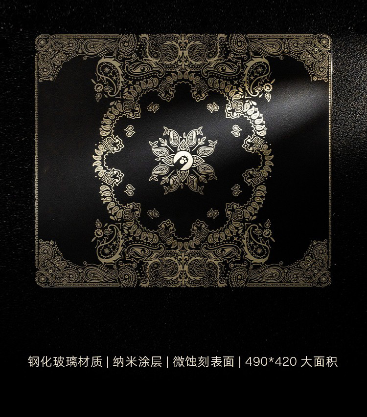 AngryMiao怒喵黑金腰果花鋼化玻璃滑鼠墊桌墊辦公電競遊戯FPS專用