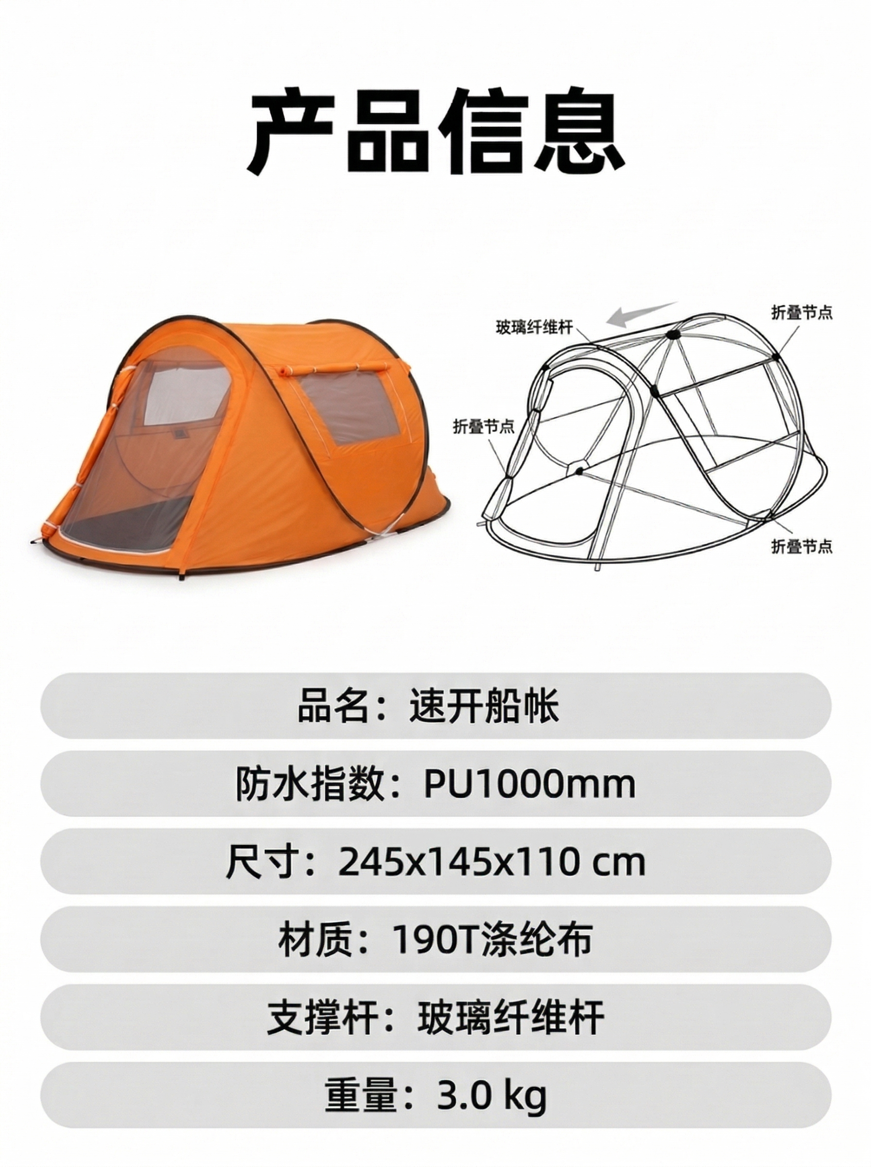 戶外速開船帳免搭建防曬透氣防蚊可攜式露營帳篷