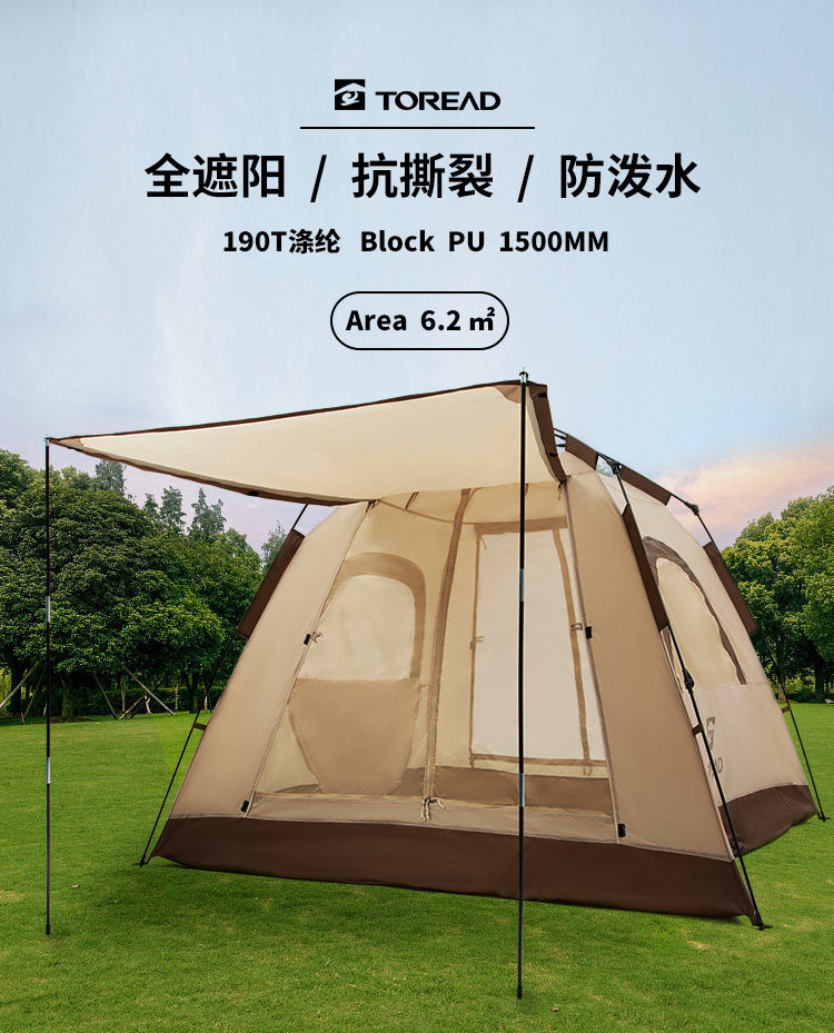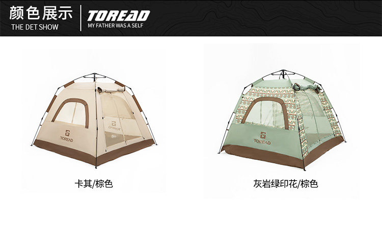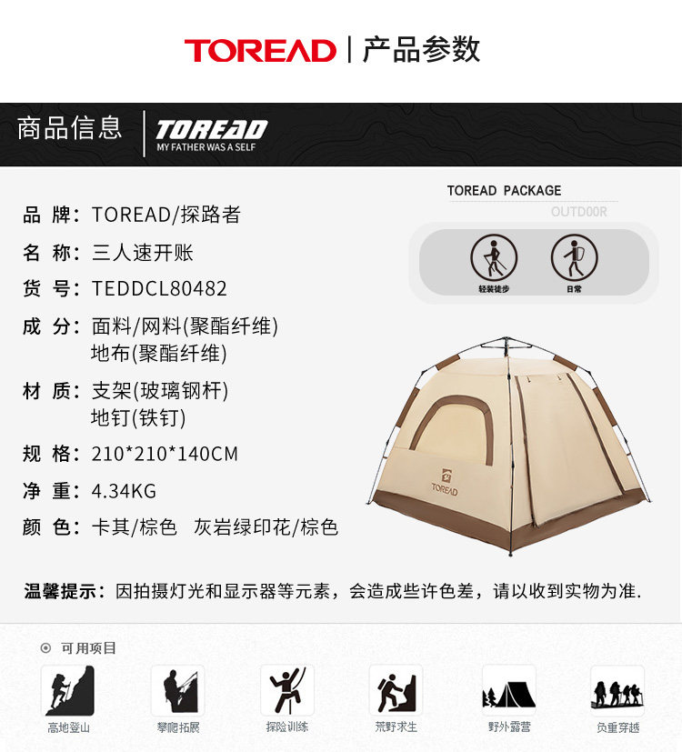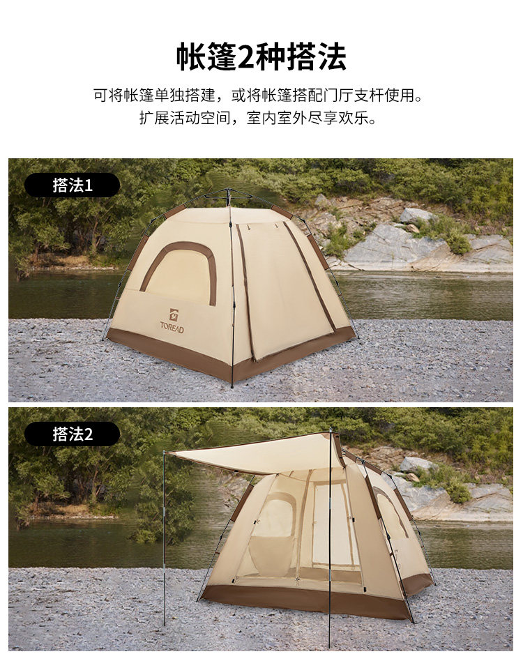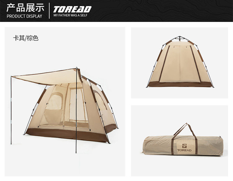 探路者戶外自動帳篷可攜式可折疊露天室外野營加厚露營裝備三人速開