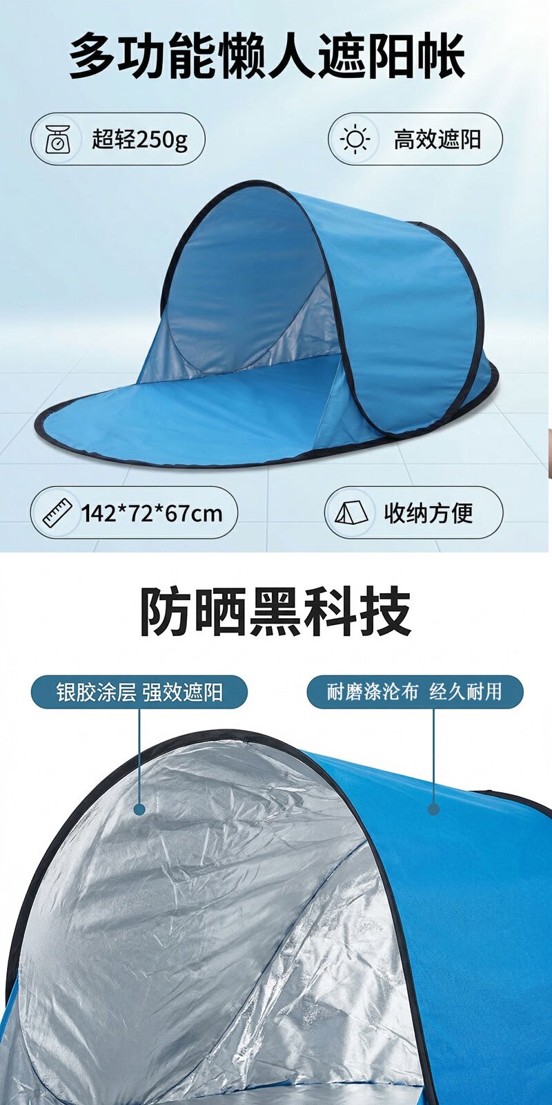 戶外速開帳篷單人防曬遮陽免搭建沙灘野營自動折疊輕便帳篷