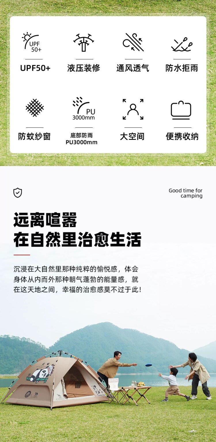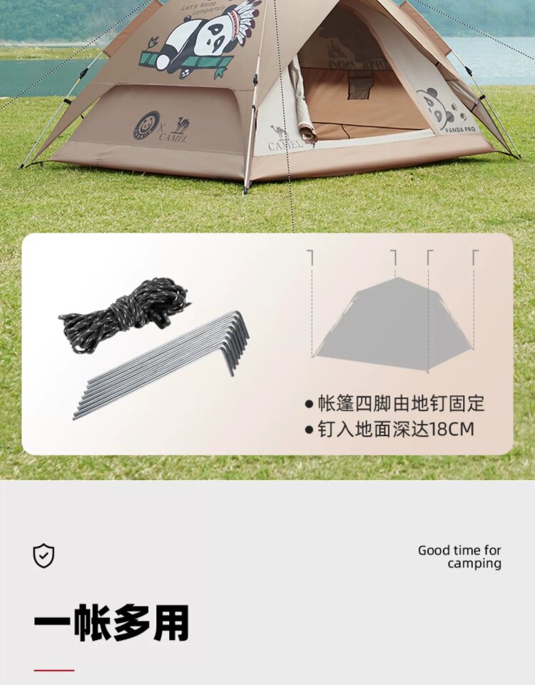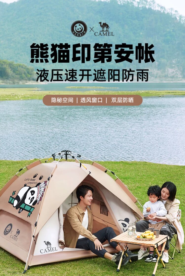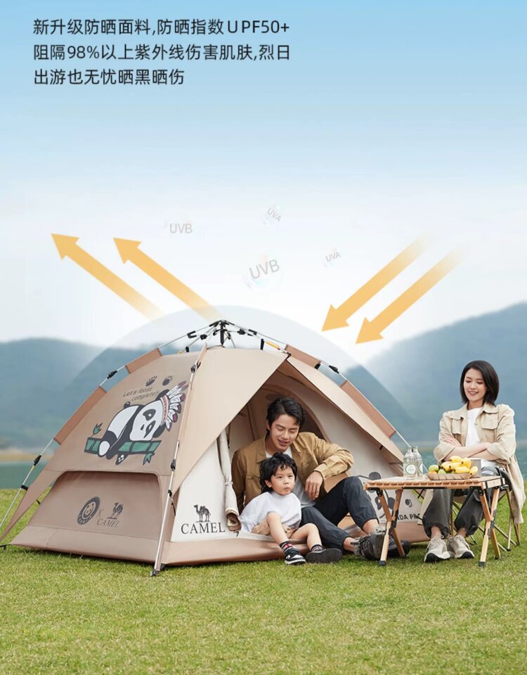 駱駝戶外熊貓自動帳篷可攜式防雨速開可折疊公園野餐野營裝備