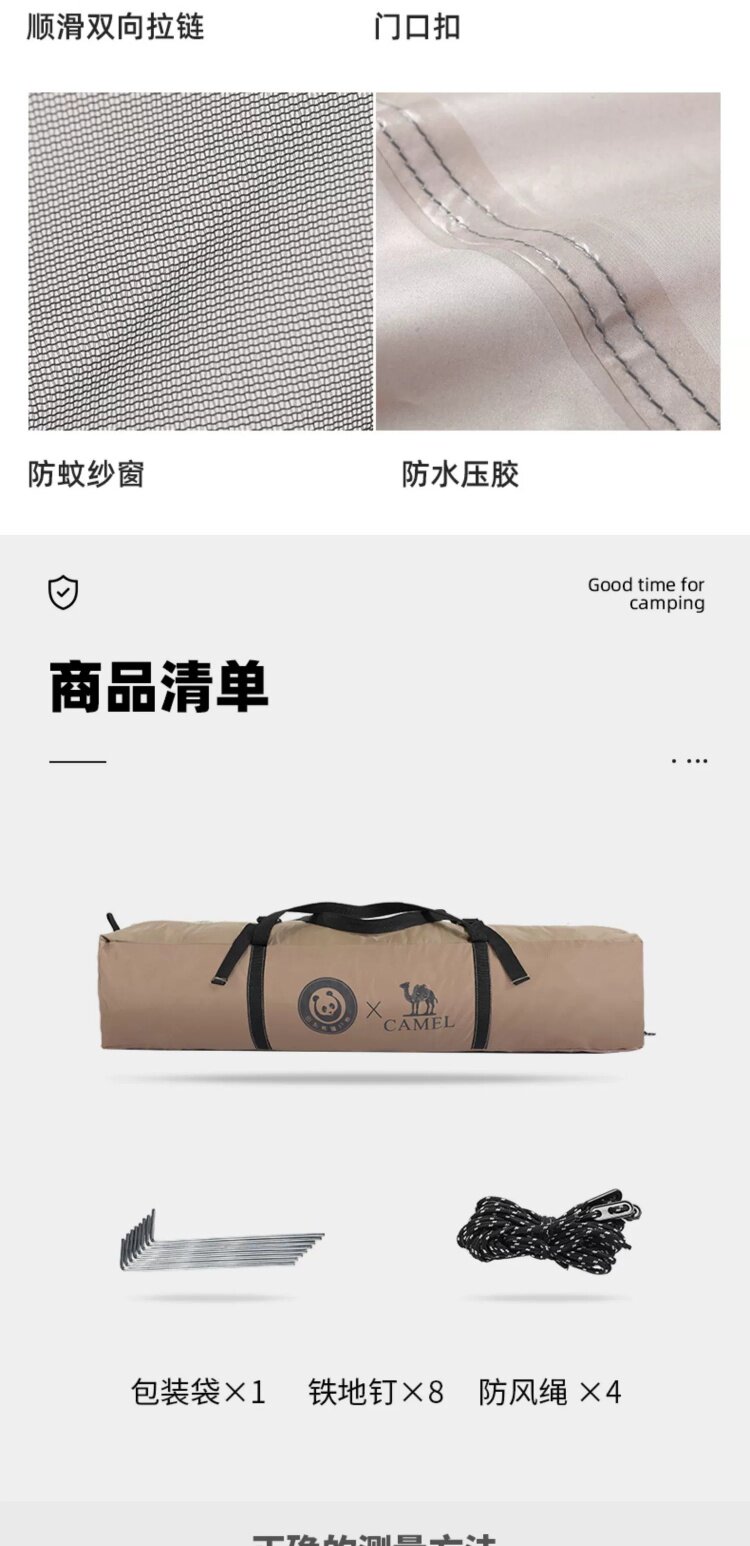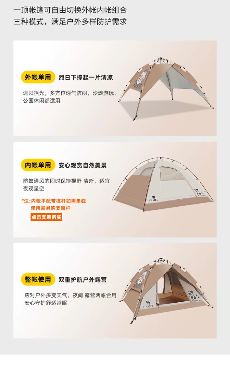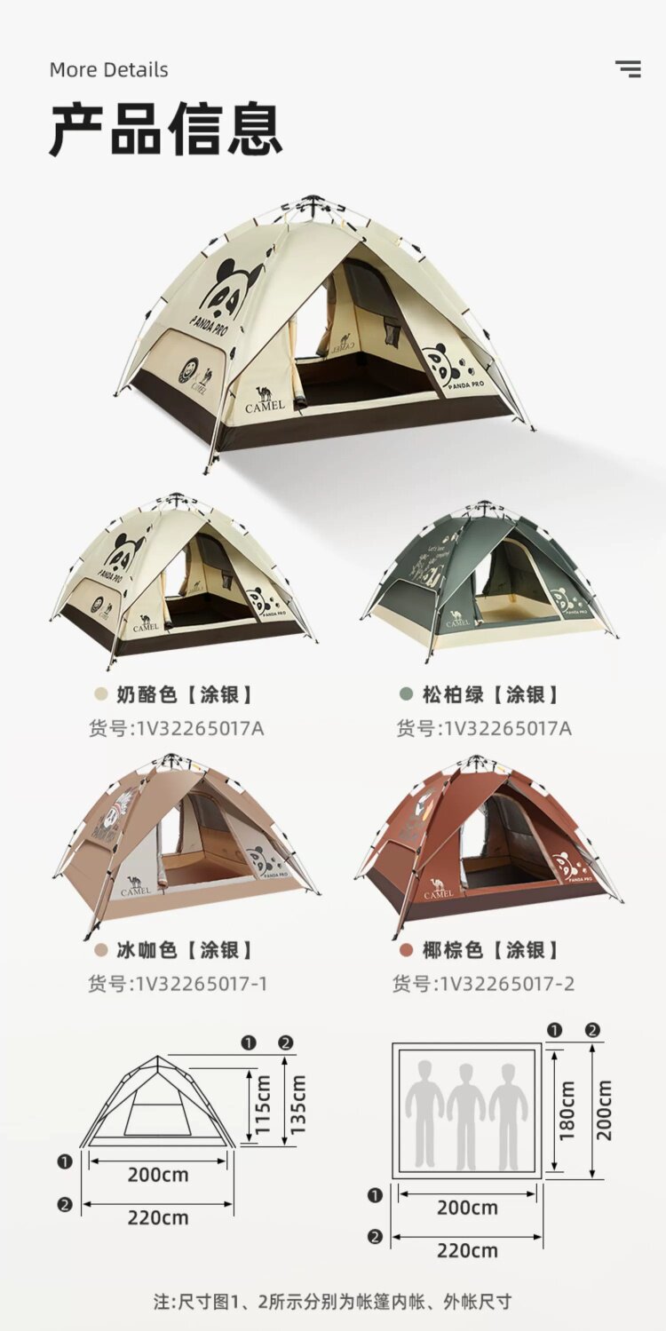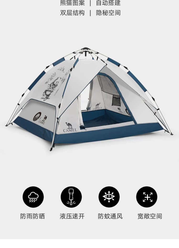 駱駝戶外熊貓自動帳篷可攜式防雨速開可折疊公園野餐野營裝備