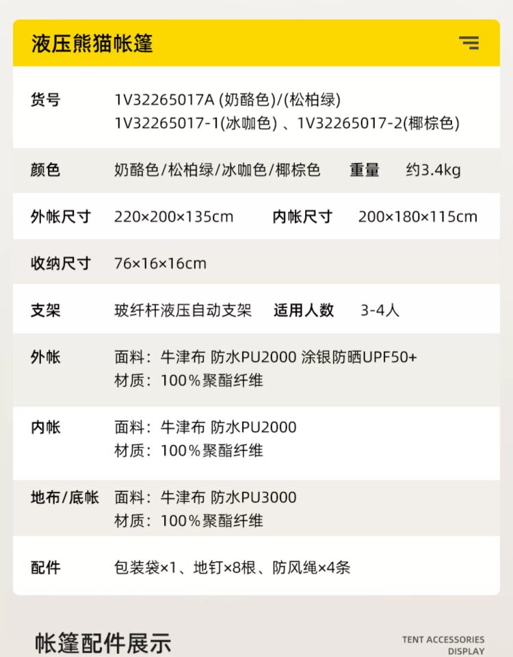 | 帳底材質 | 150D牛津布 PU2000mm |