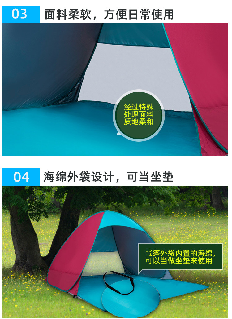 小熊全自動沙灘帳篷3-4人防曬速開多人家庭帳篷露營套裝雙人戶外