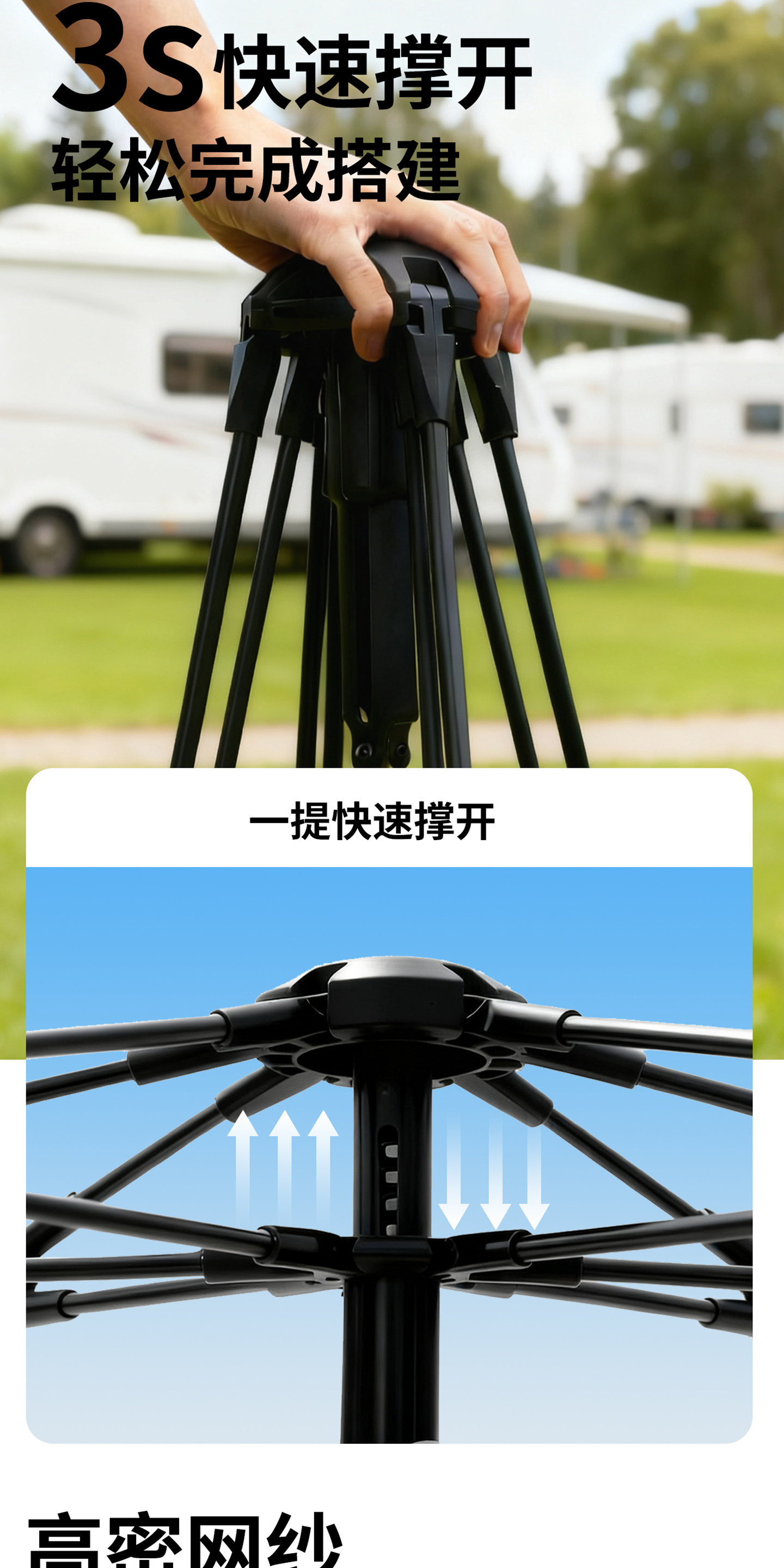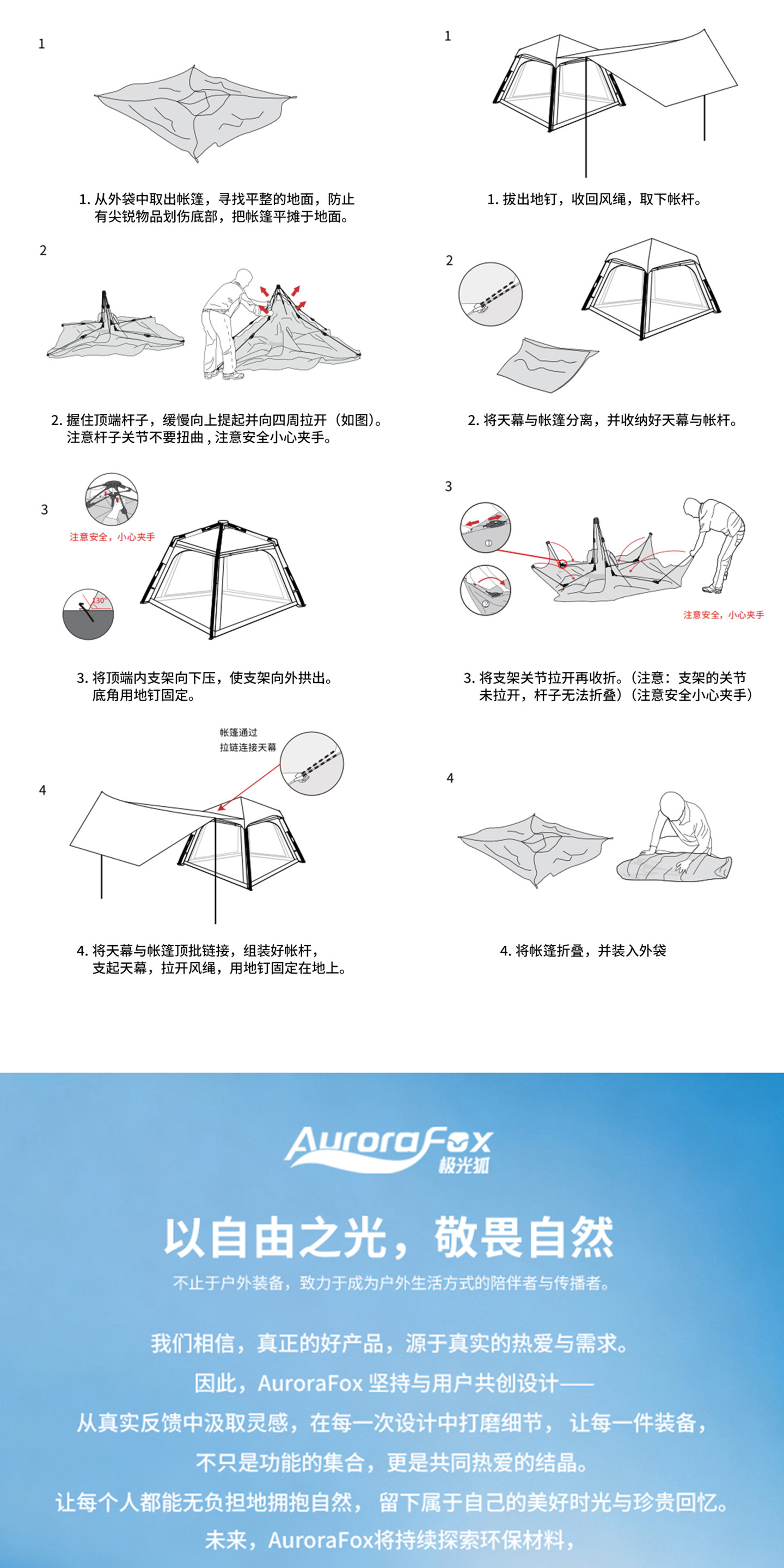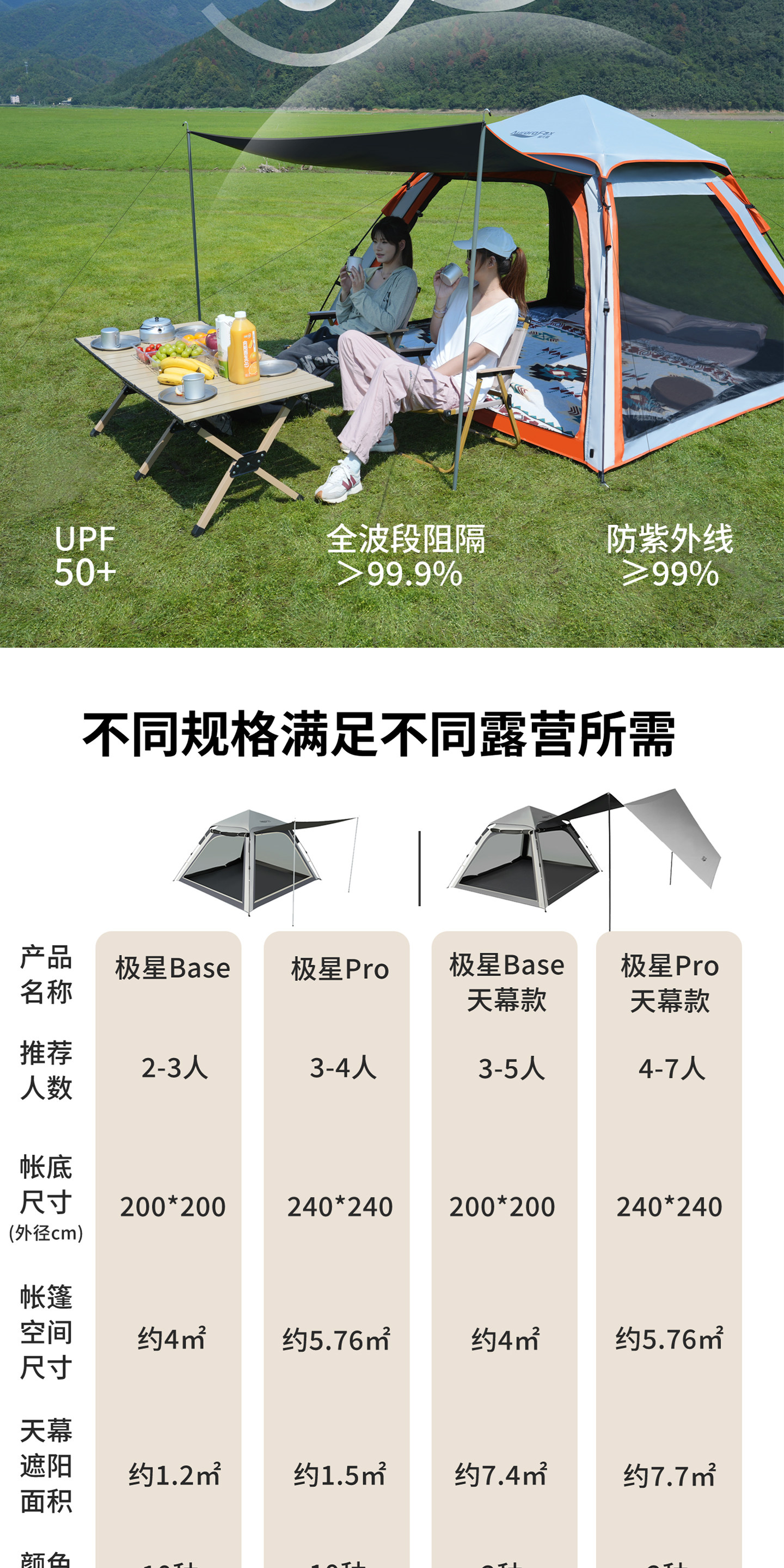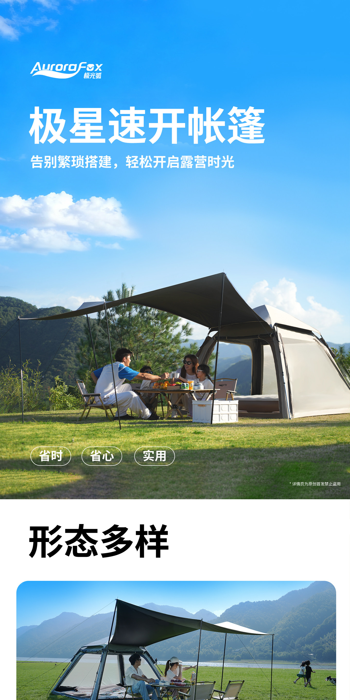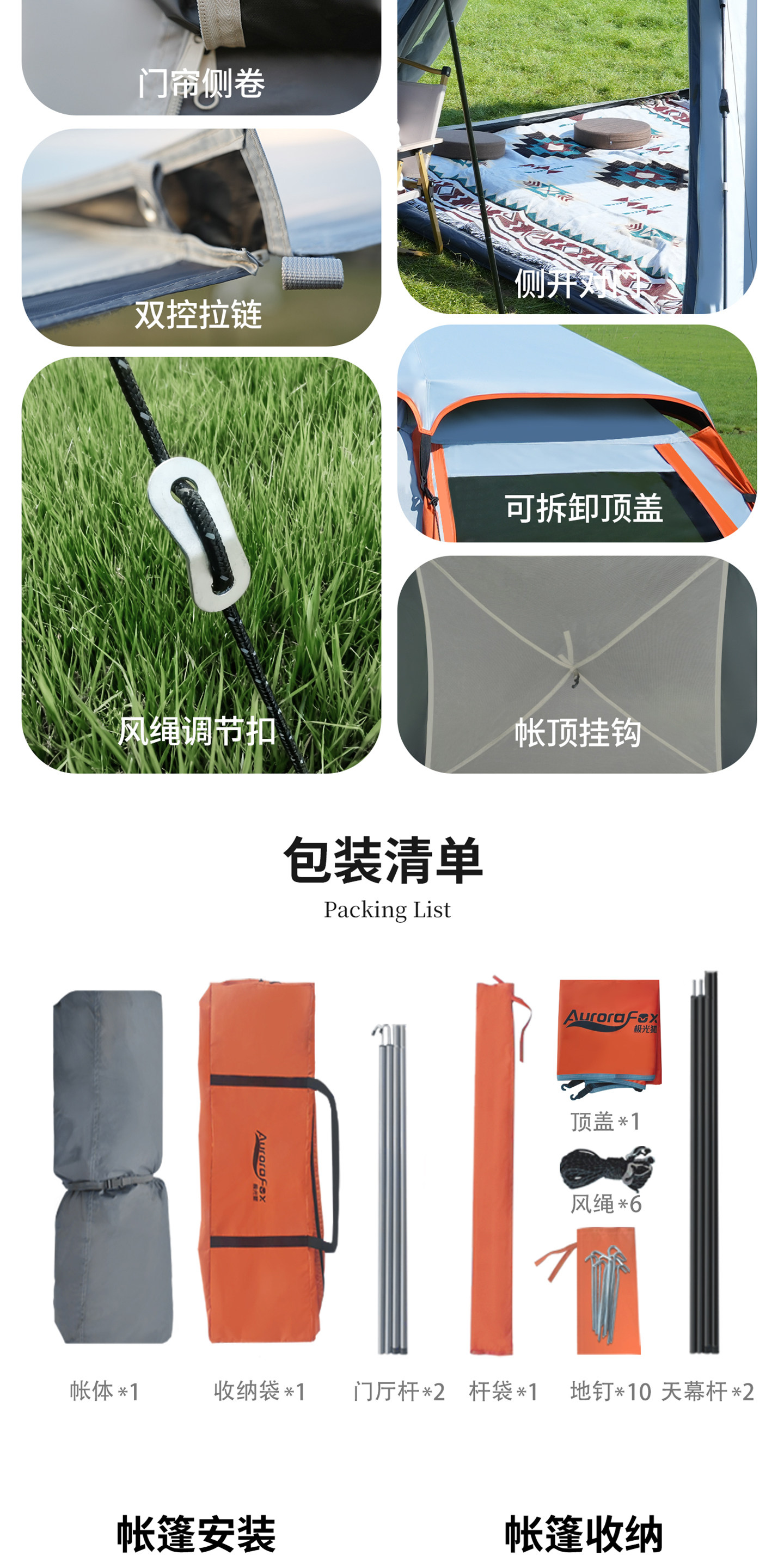 極光狐速開帳篷戶外露營可攜式折疊野營過夜防雨防曬全自動黑膠帳