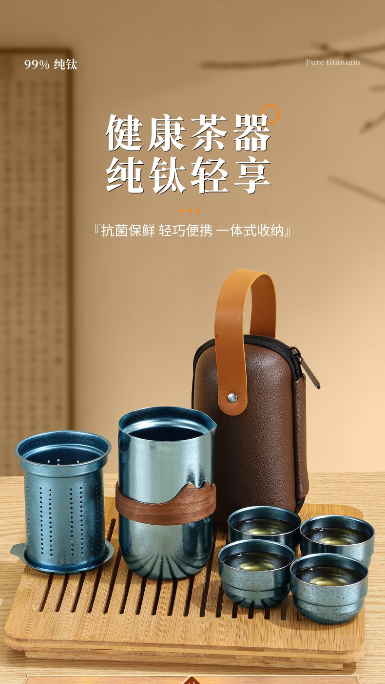 純鈦茶具套裝泡茶專用茶杯泡茶器可攜式杯子鈦禮盒裝可攜式