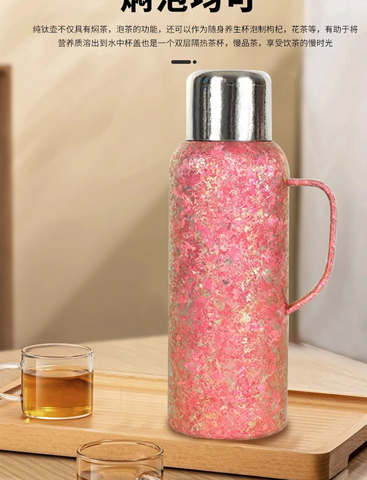 純鈦杯機械顯溫保溫壺商務辦公大容量泡茶茶壺家用純鈦燜茶壺戶外