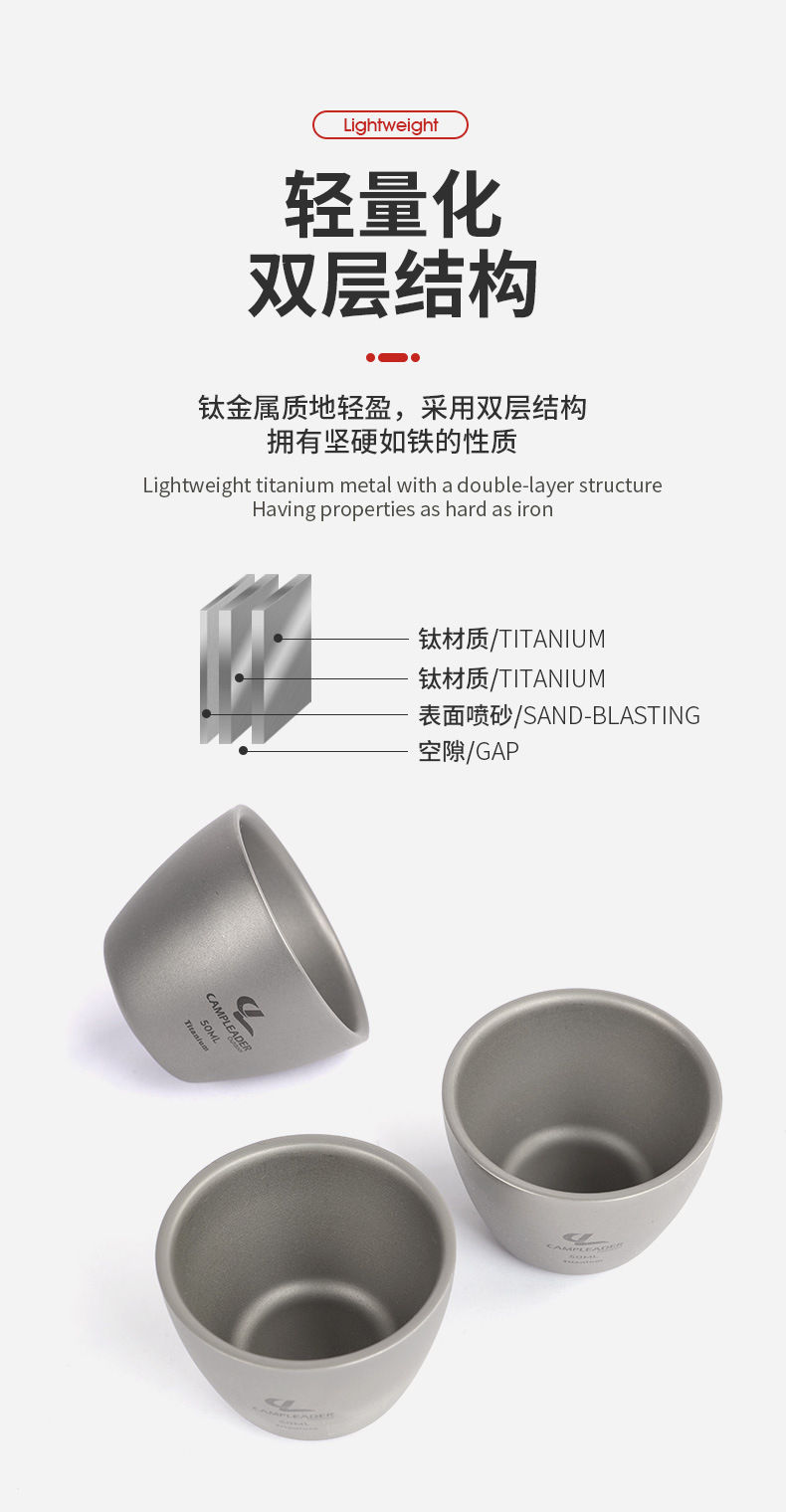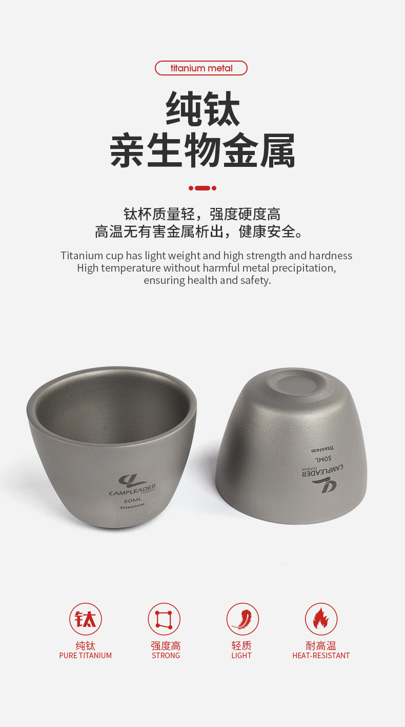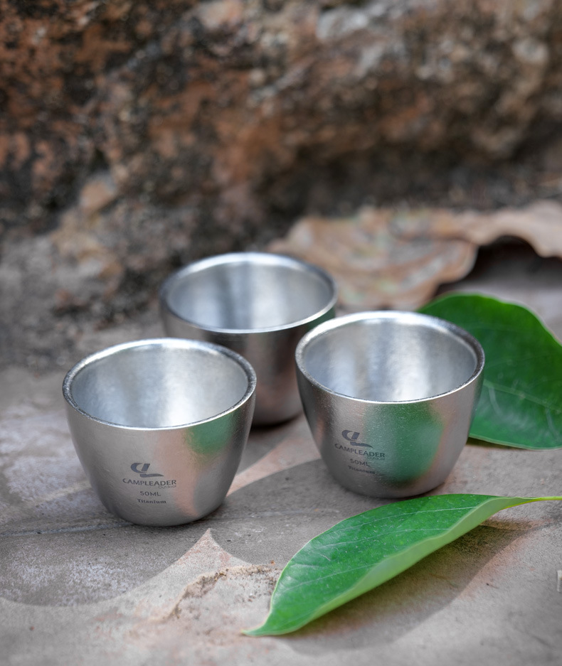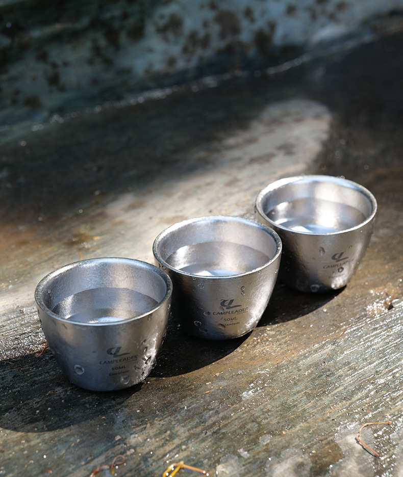戶外可攜式雙層純鈦小酒杯功夫杯鈦茶杯燒酒杯鈦杯金屬茶具冰花水杯
