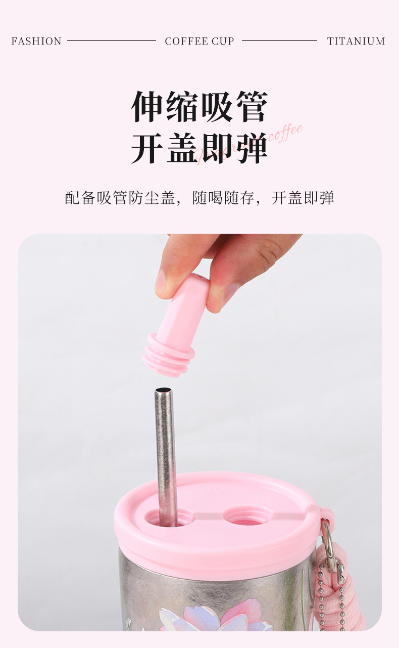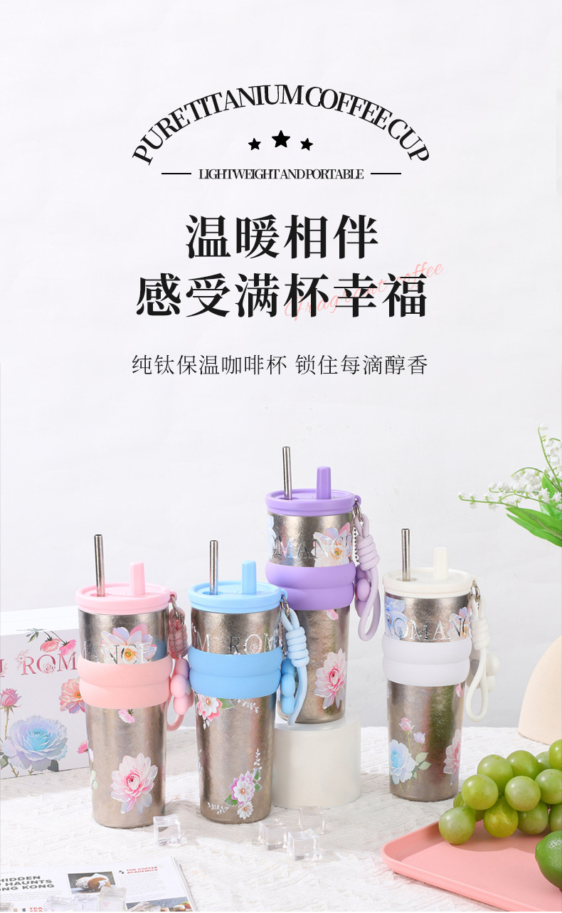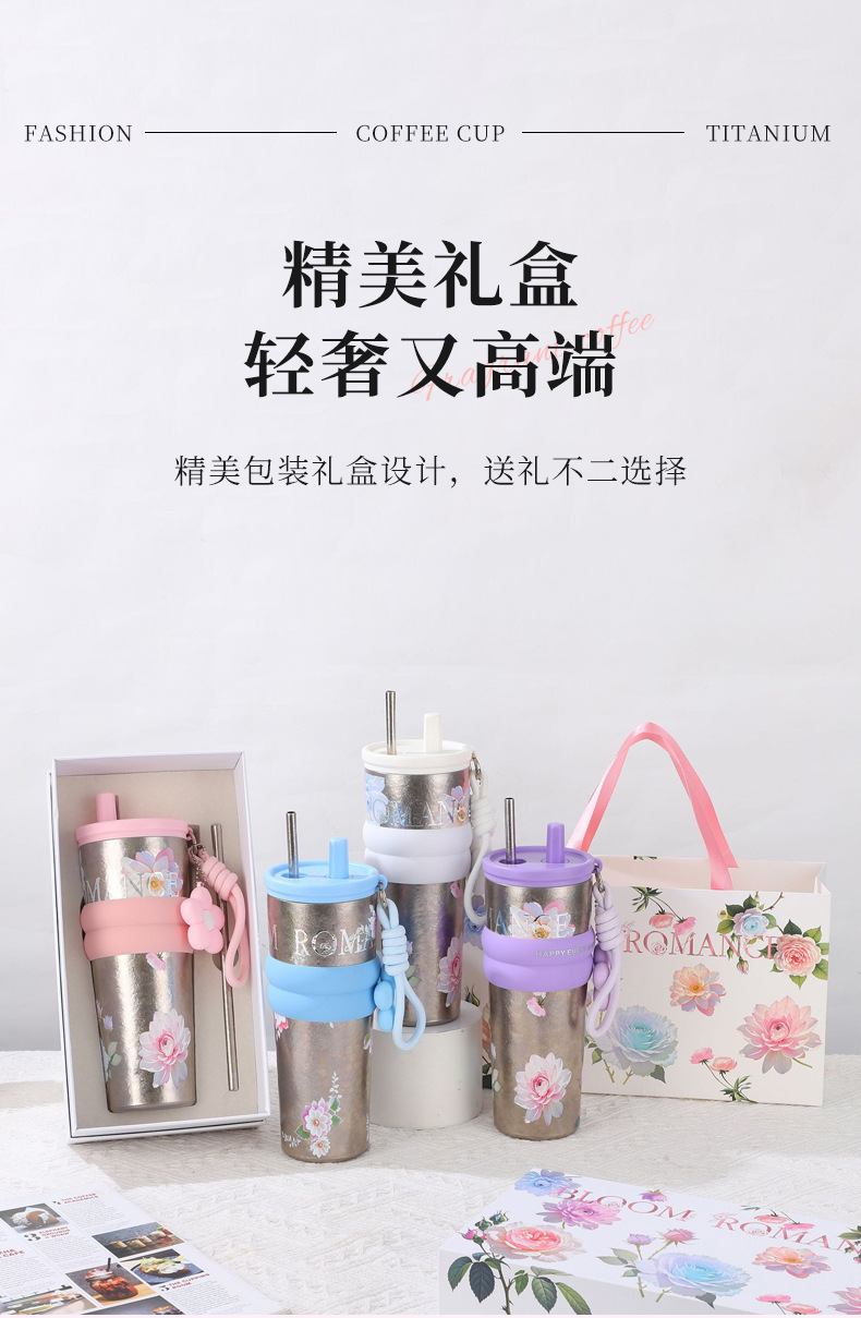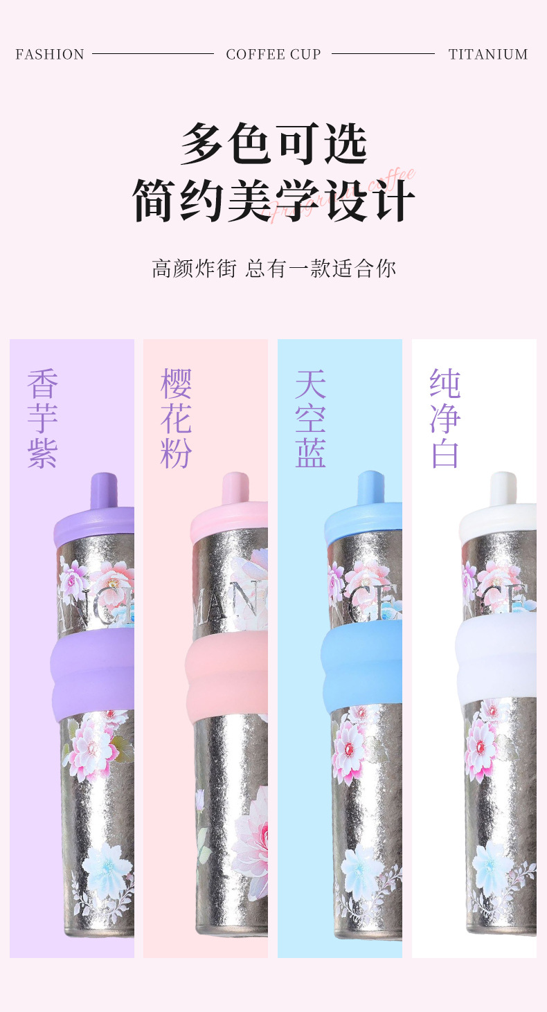 花之語純鈦咖啡杯小清新保冷吸琯保溫杯高級商務鈦杯禮盒套裝