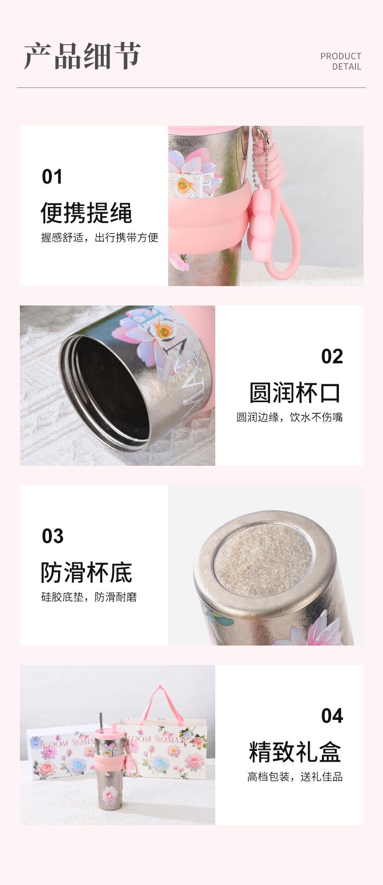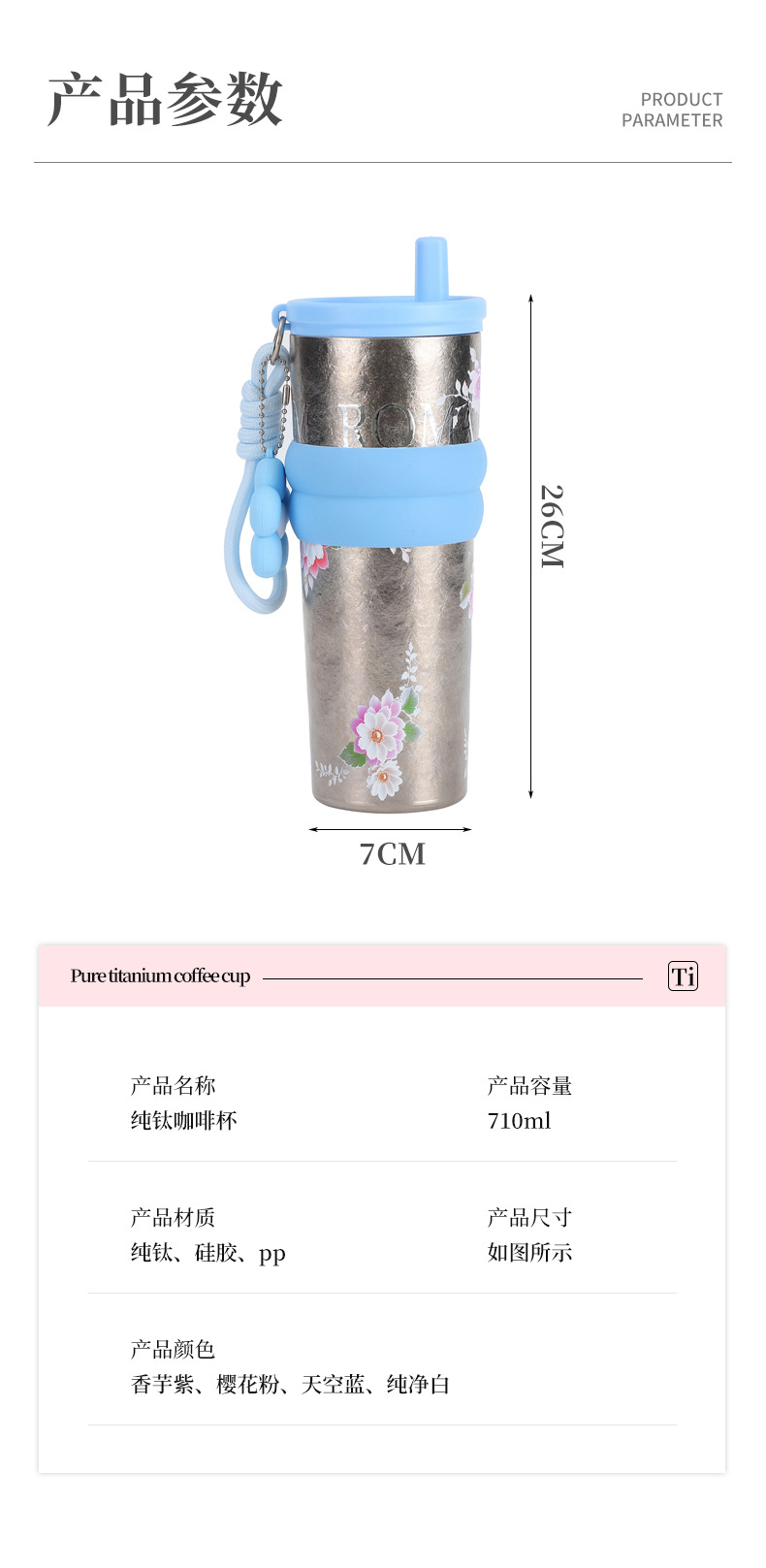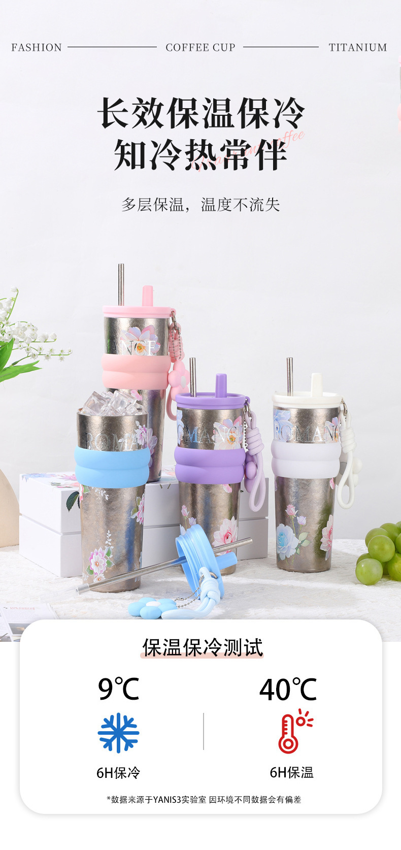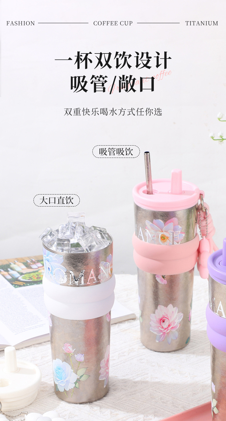 花之語純鈦咖啡杯小清新保冷吸琯保溫杯高級商務鈦杯禮盒套裝