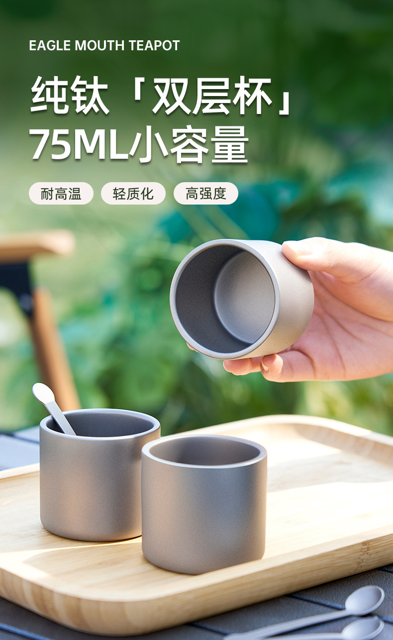 純鈦杯子戶外可攜式茶杯主人杯酒杯露營鈦水杯隔熱雙層防燙咖啡杯