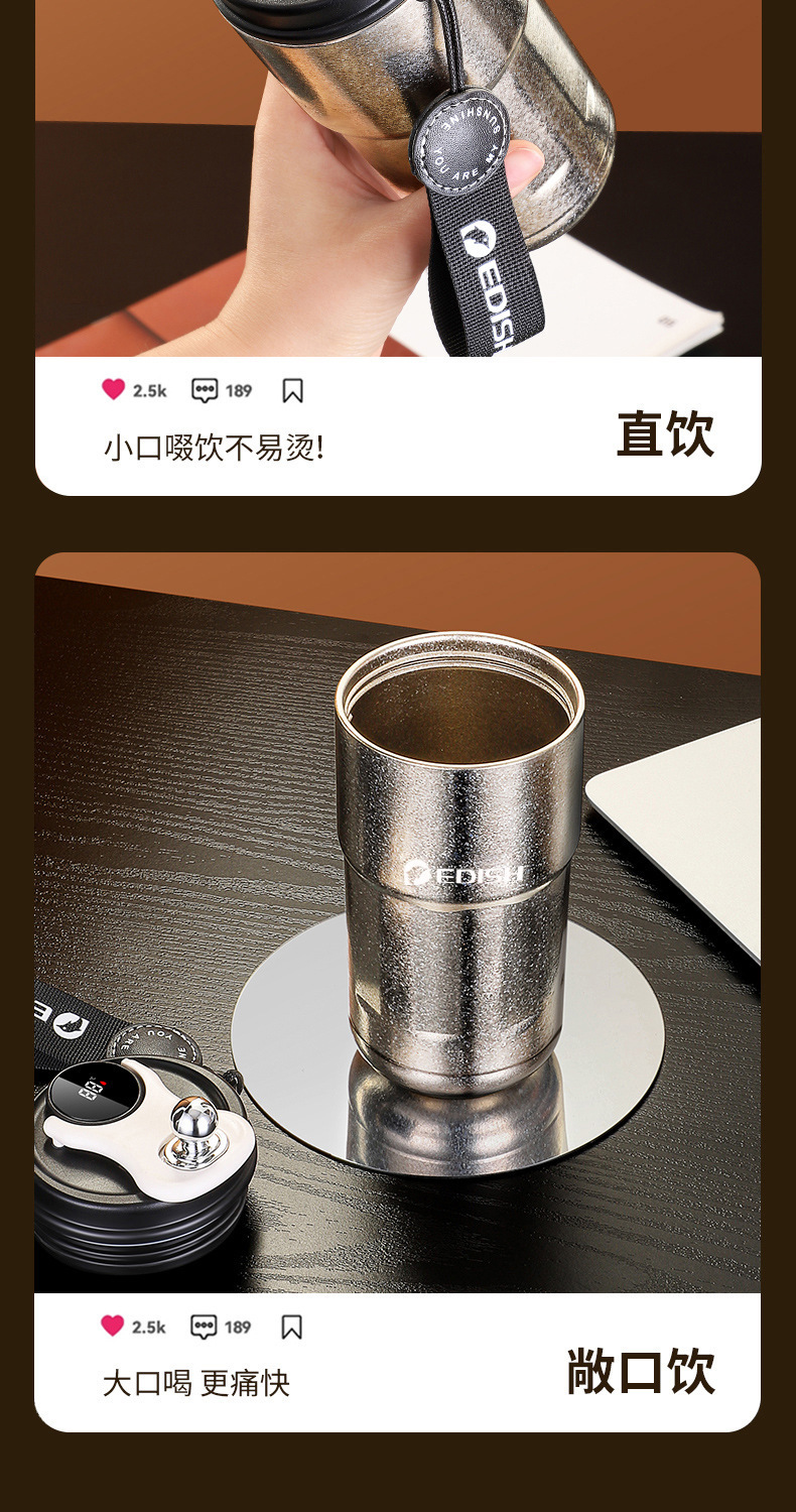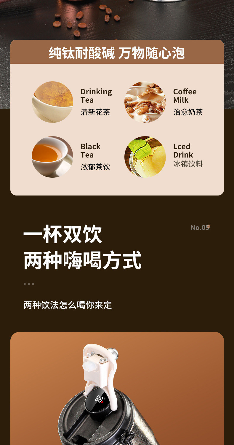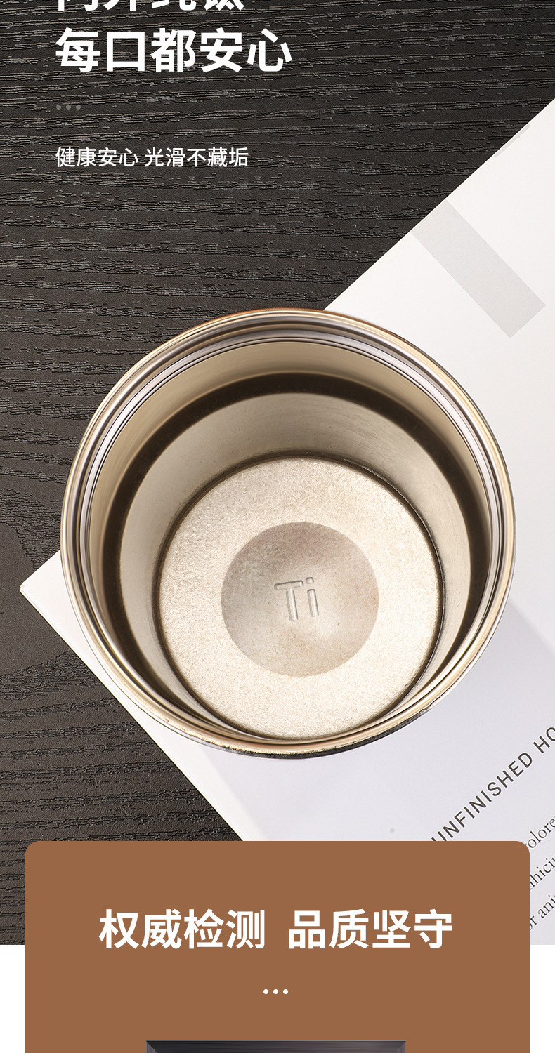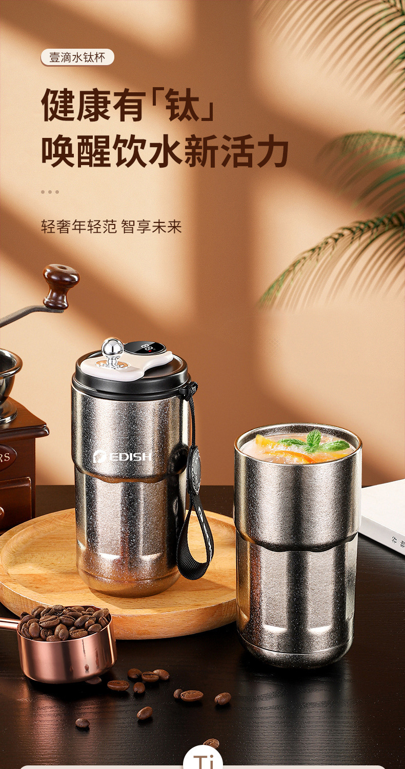 純鈦咖啡杯雙層鈦杯智能顯溫高顔值水杯戶外可攜式帶提繩雙飲杯