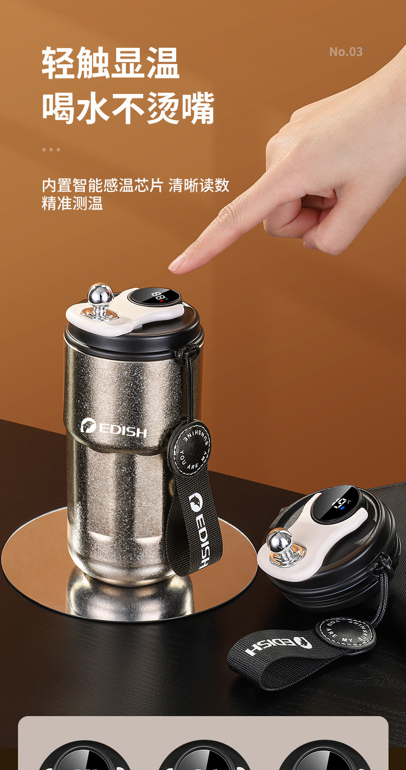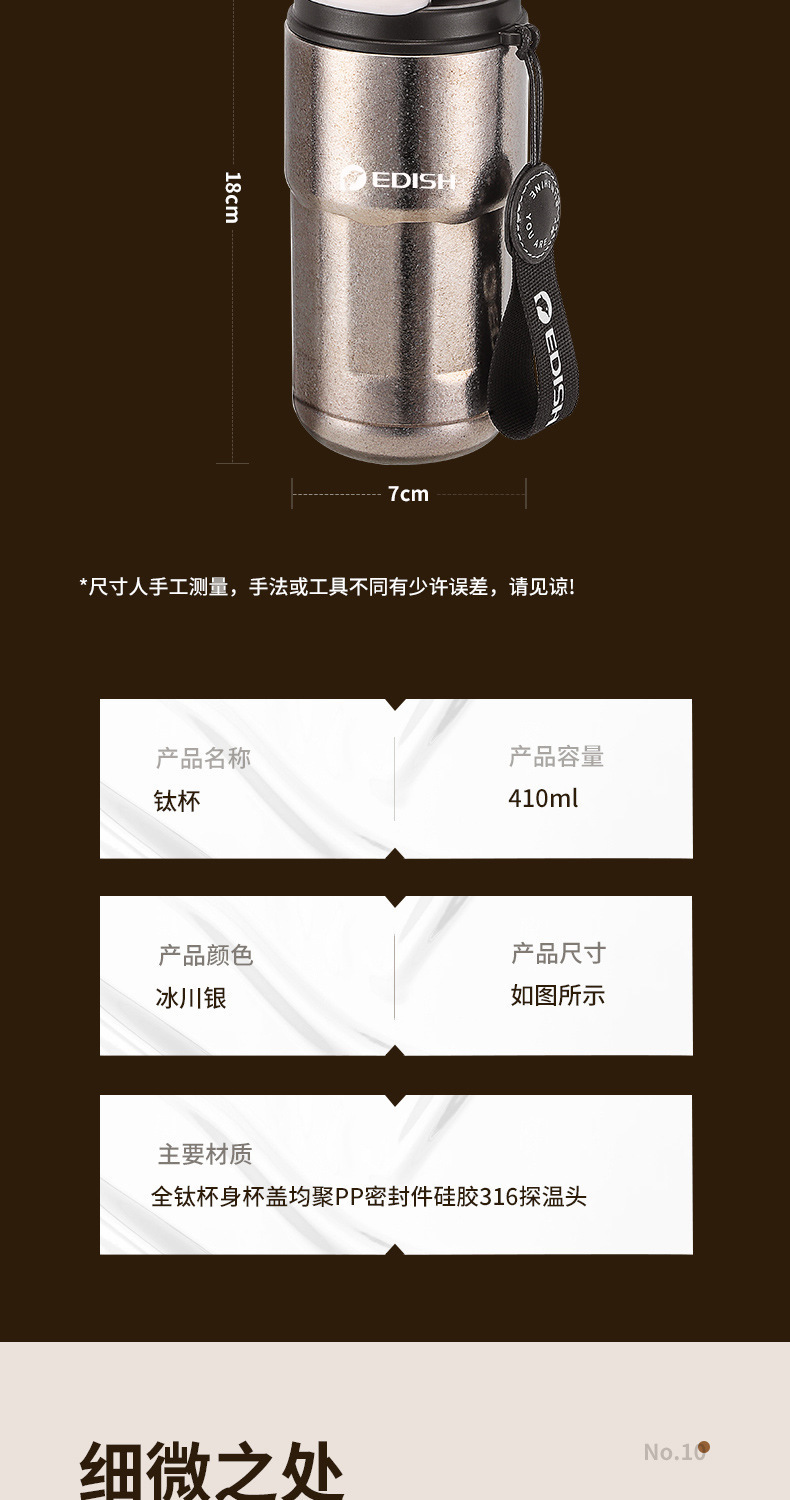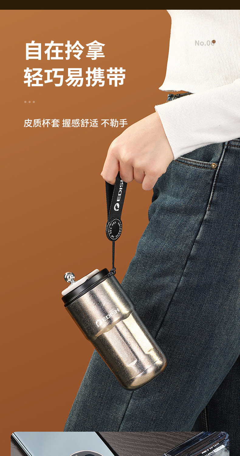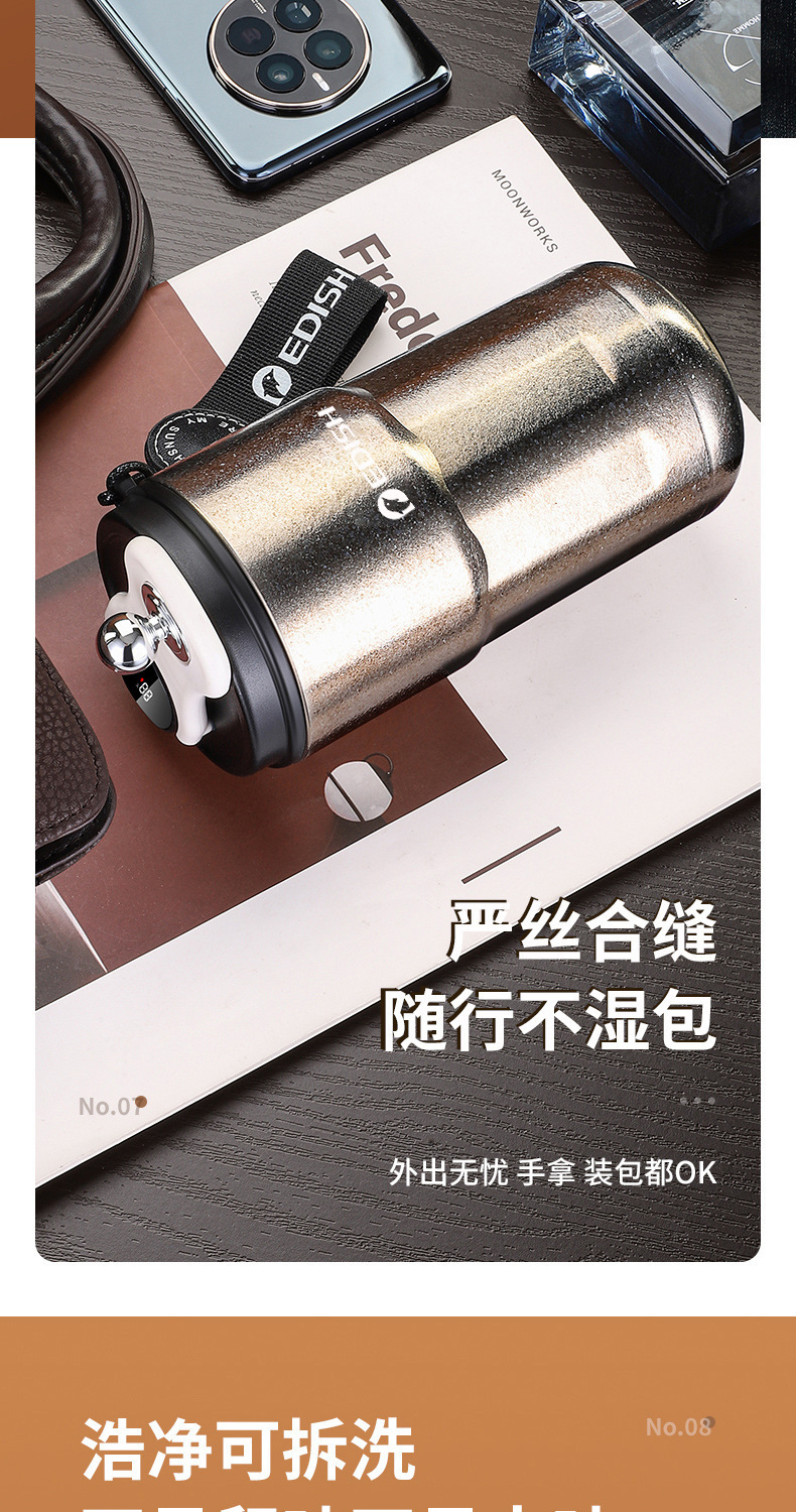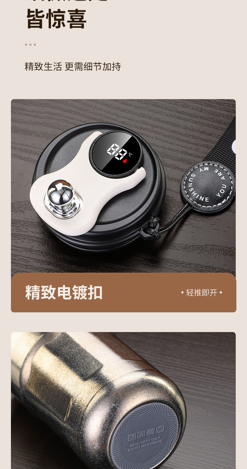 純鈦咖啡杯雙層鈦杯智能顯溫高顔值水杯戶外可攜式帶提繩雙飲杯