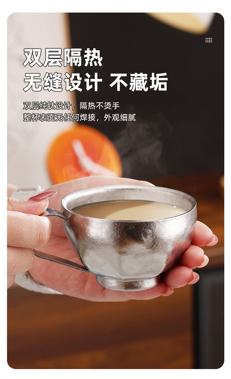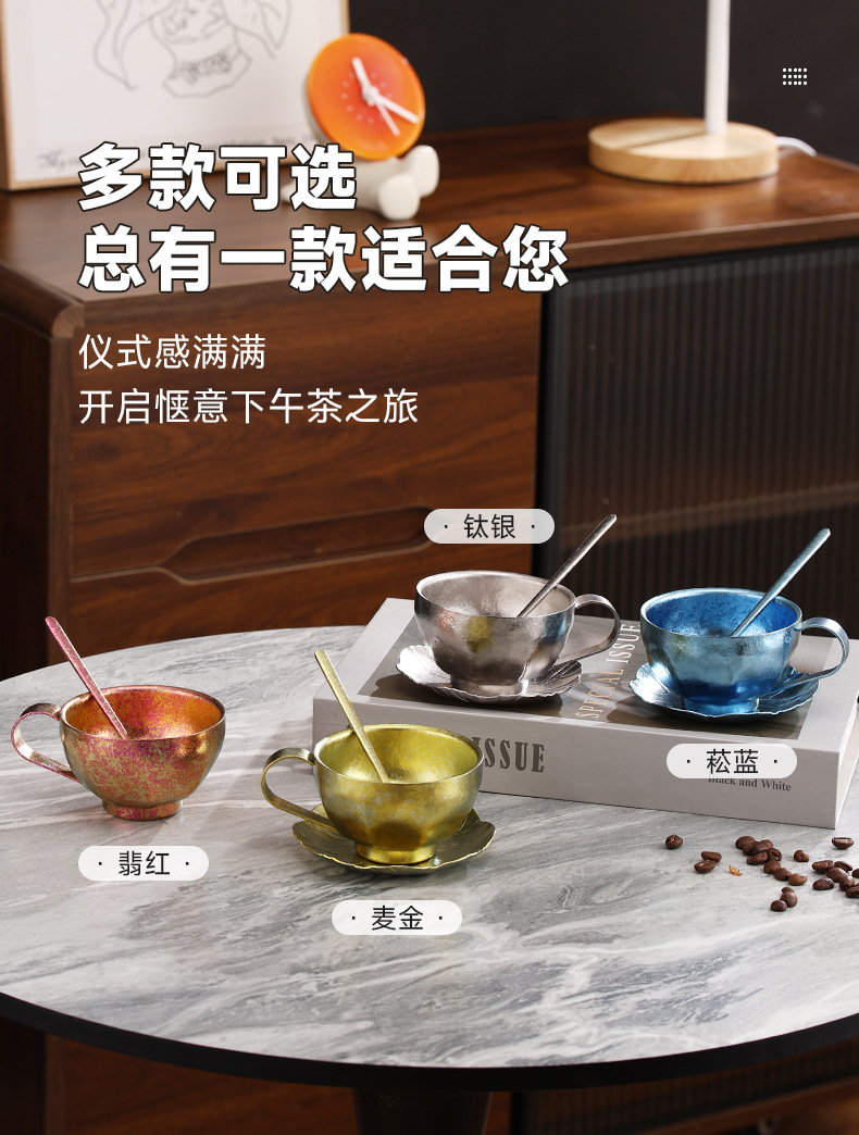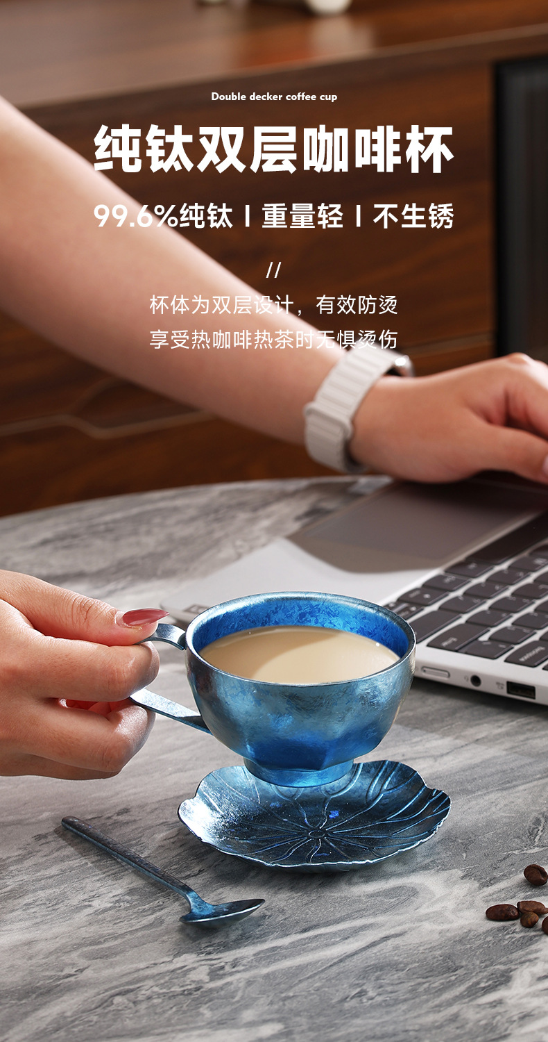 【純鈦咖啡杯套裝】杯碟湯勺套裝下午茶輕奢餐具結晶復古純鈦杯