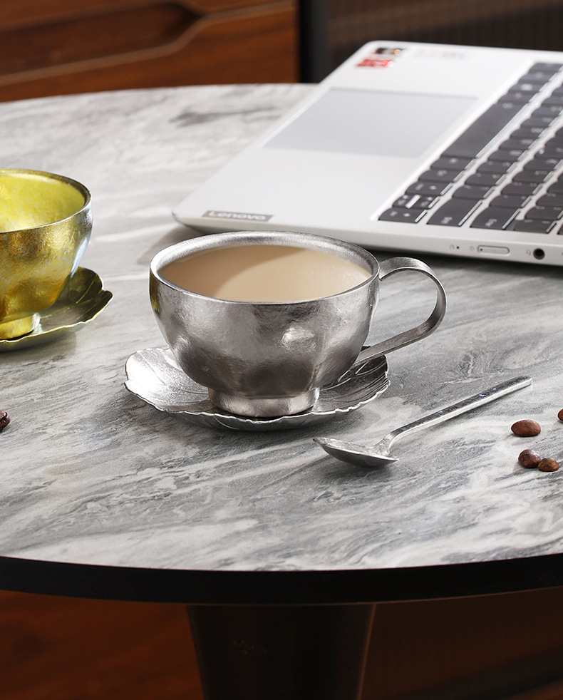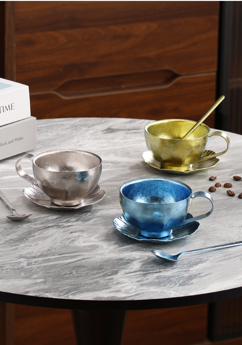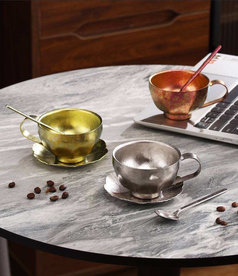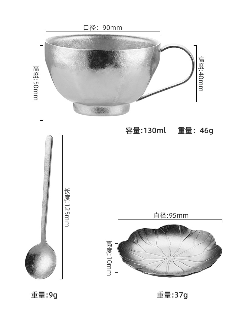 【純鈦咖啡杯套裝】杯碟湯勺套裝下午茶輕奢餐具結晶復古純鈦杯
