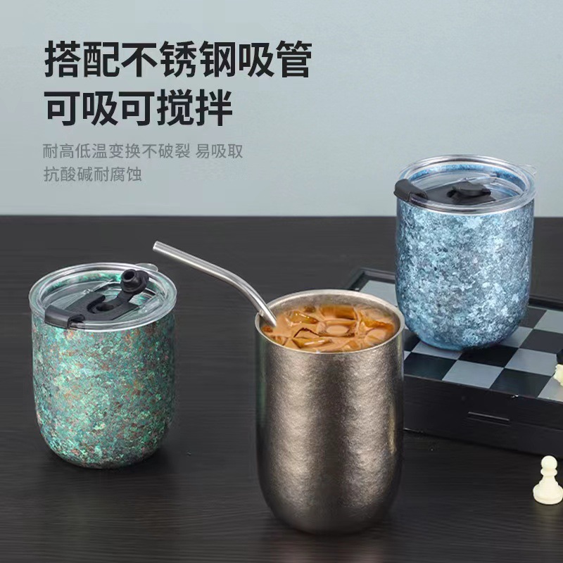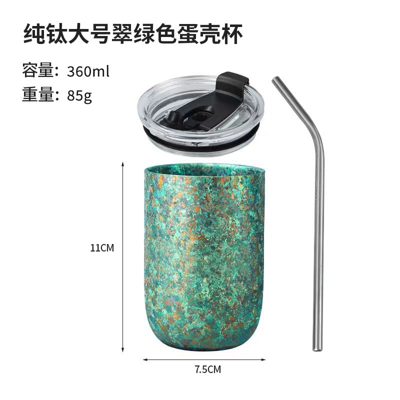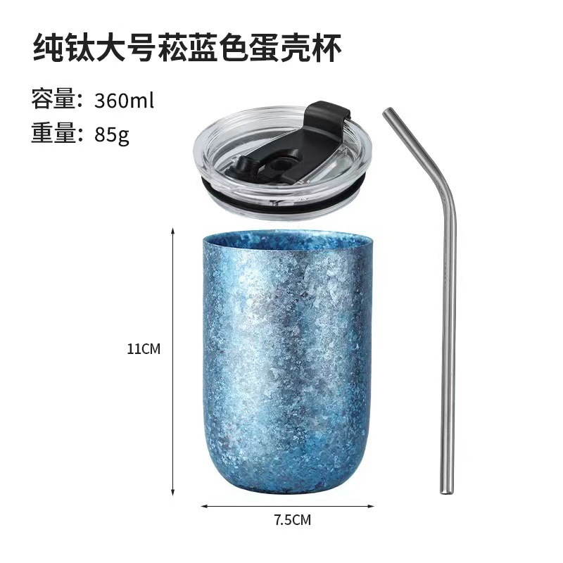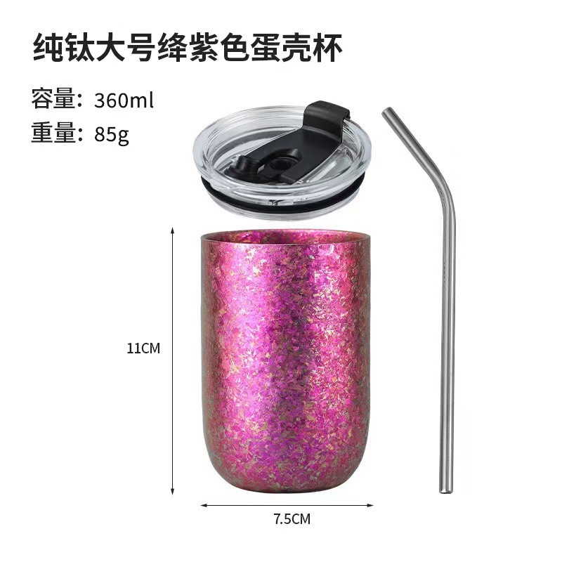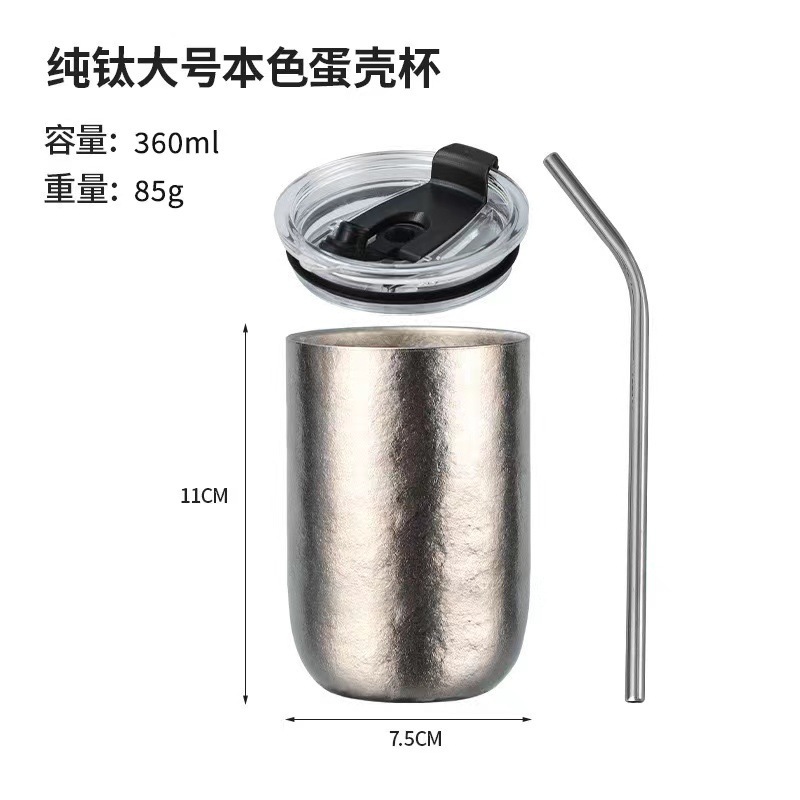 純鈦一體成型啤酒果汁杯家用情侶旅行帶蓋高檔水杯360ml冰花鈦杯