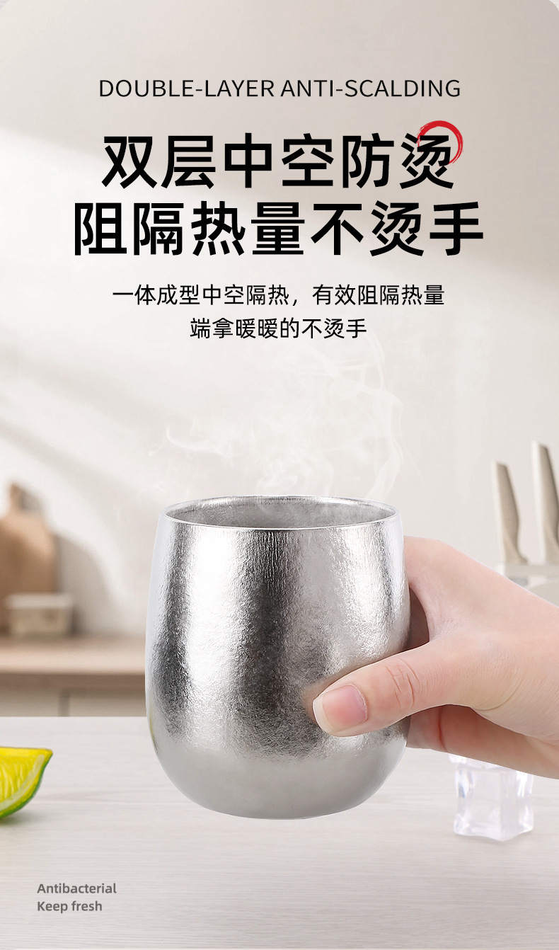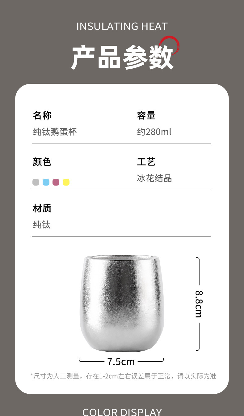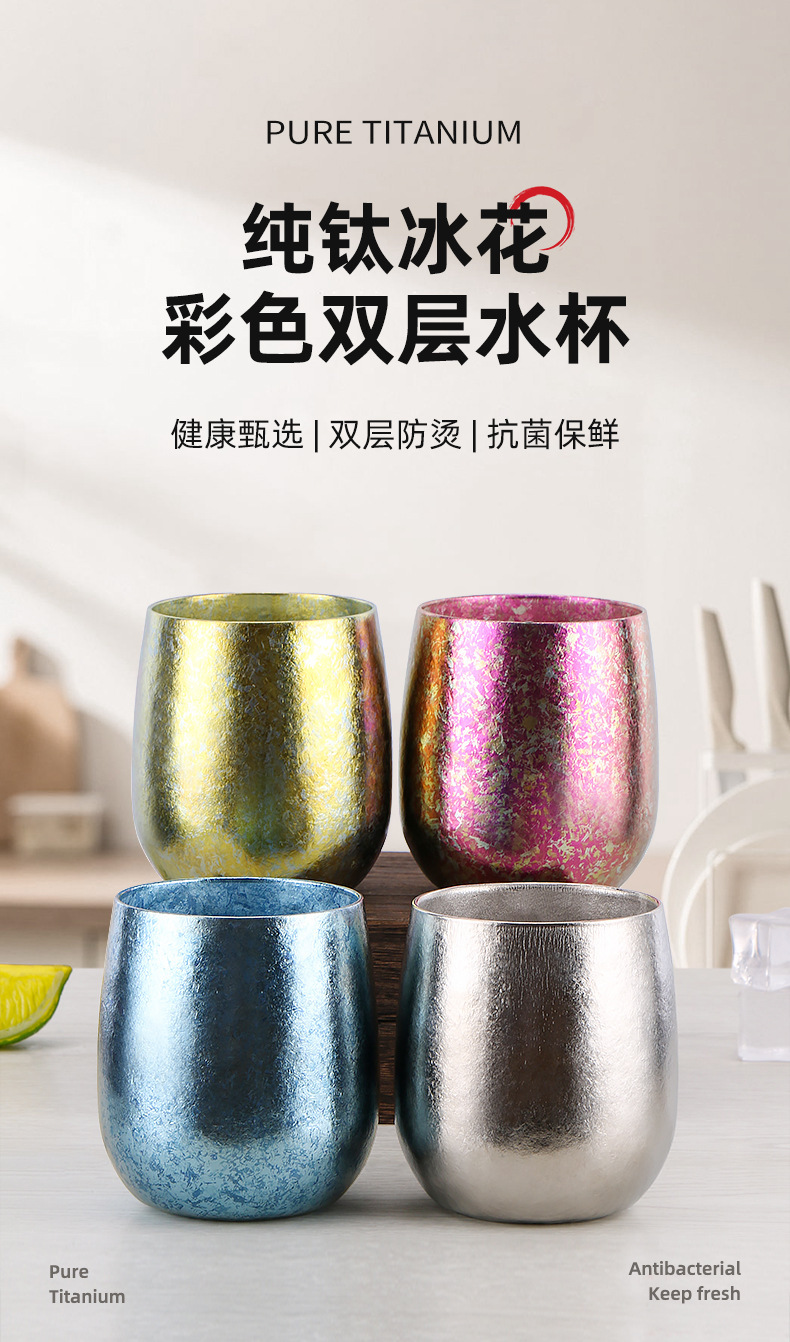 樂壺匠戶外純鈦紅酒杯家用冰花鵝蛋殼水杯啤酒咖啡牛奶隔熱鈦杯