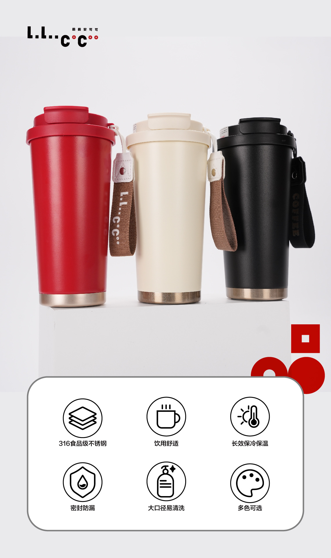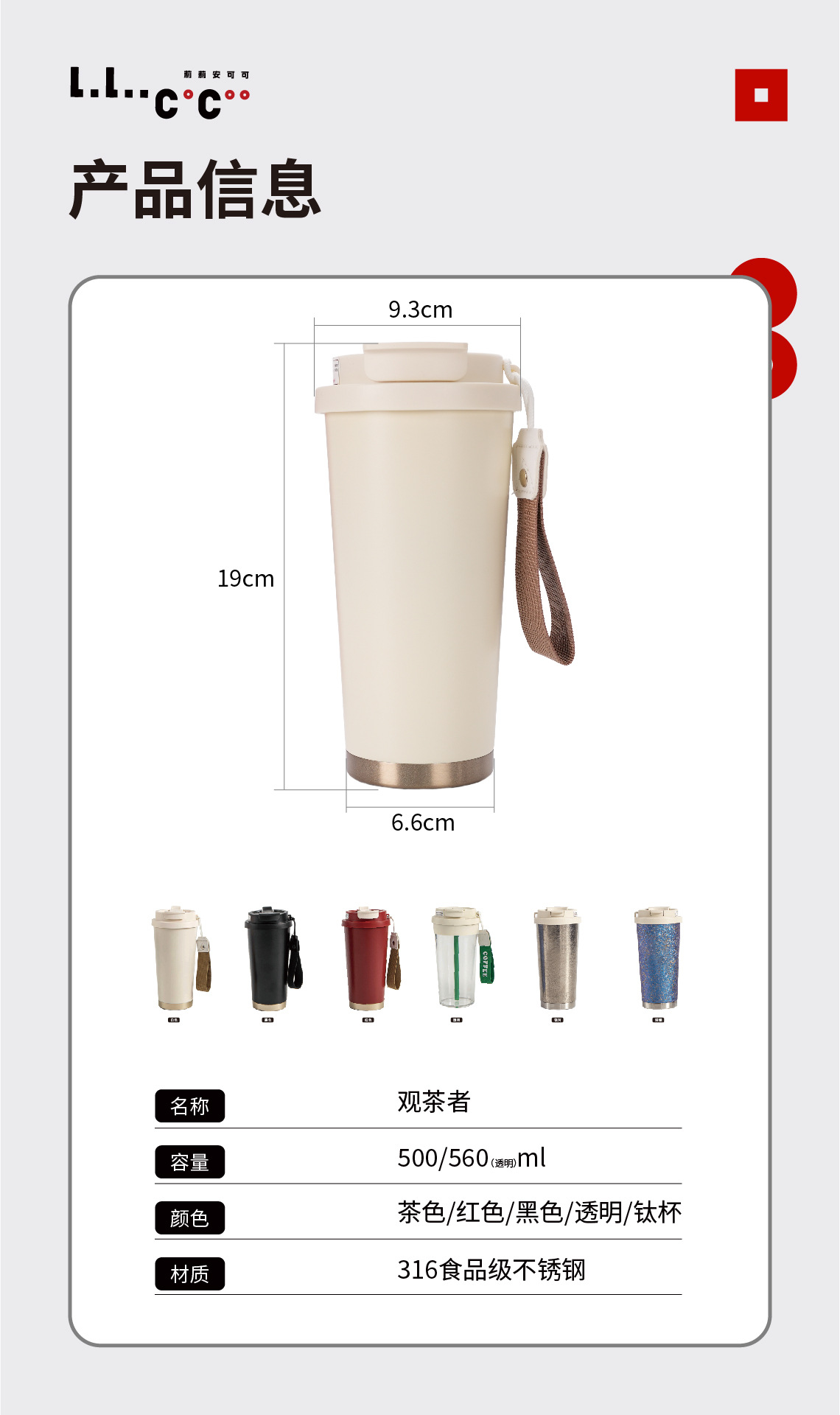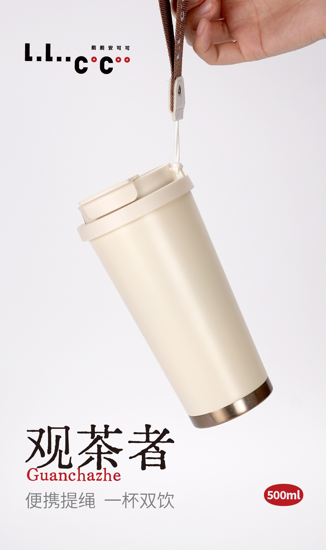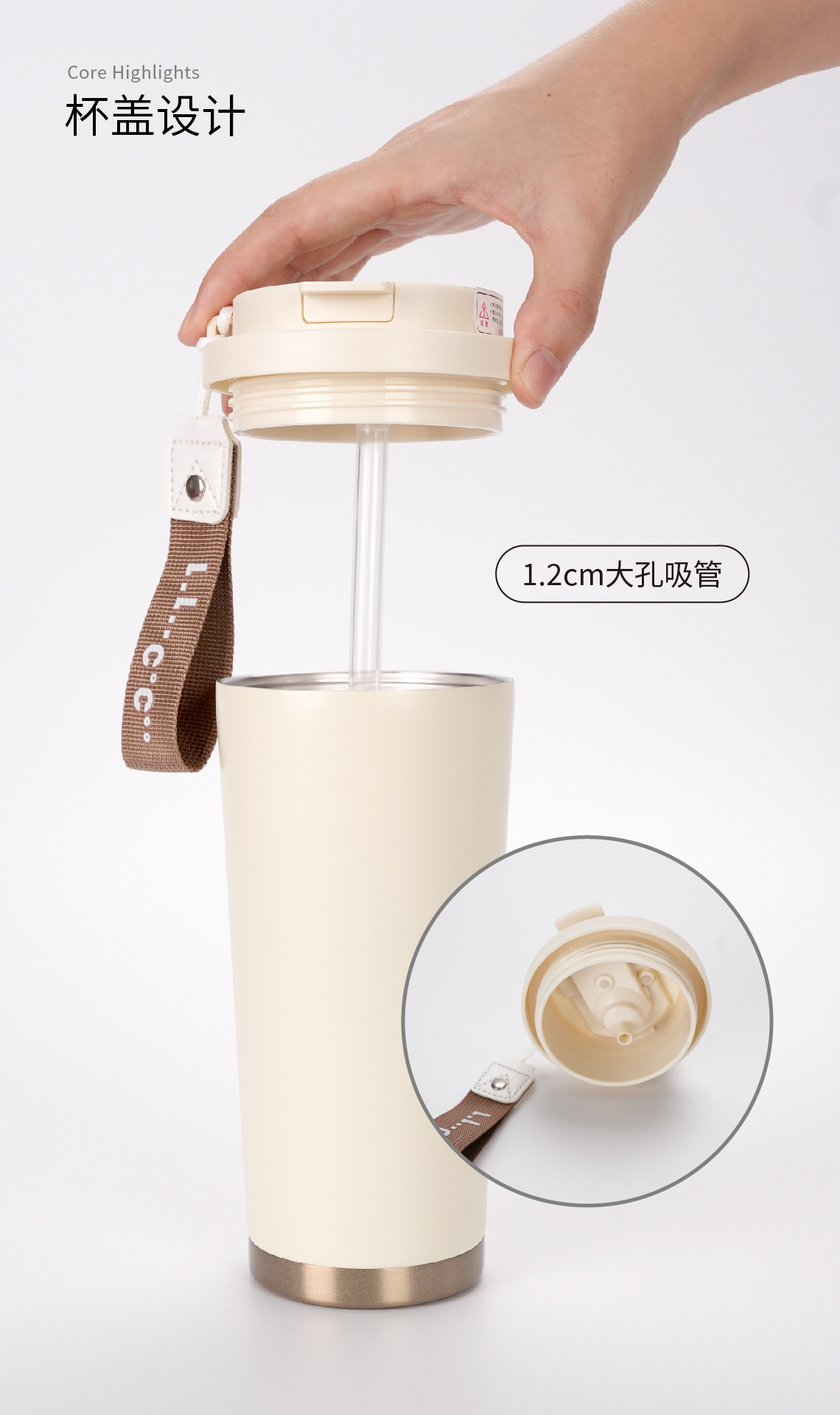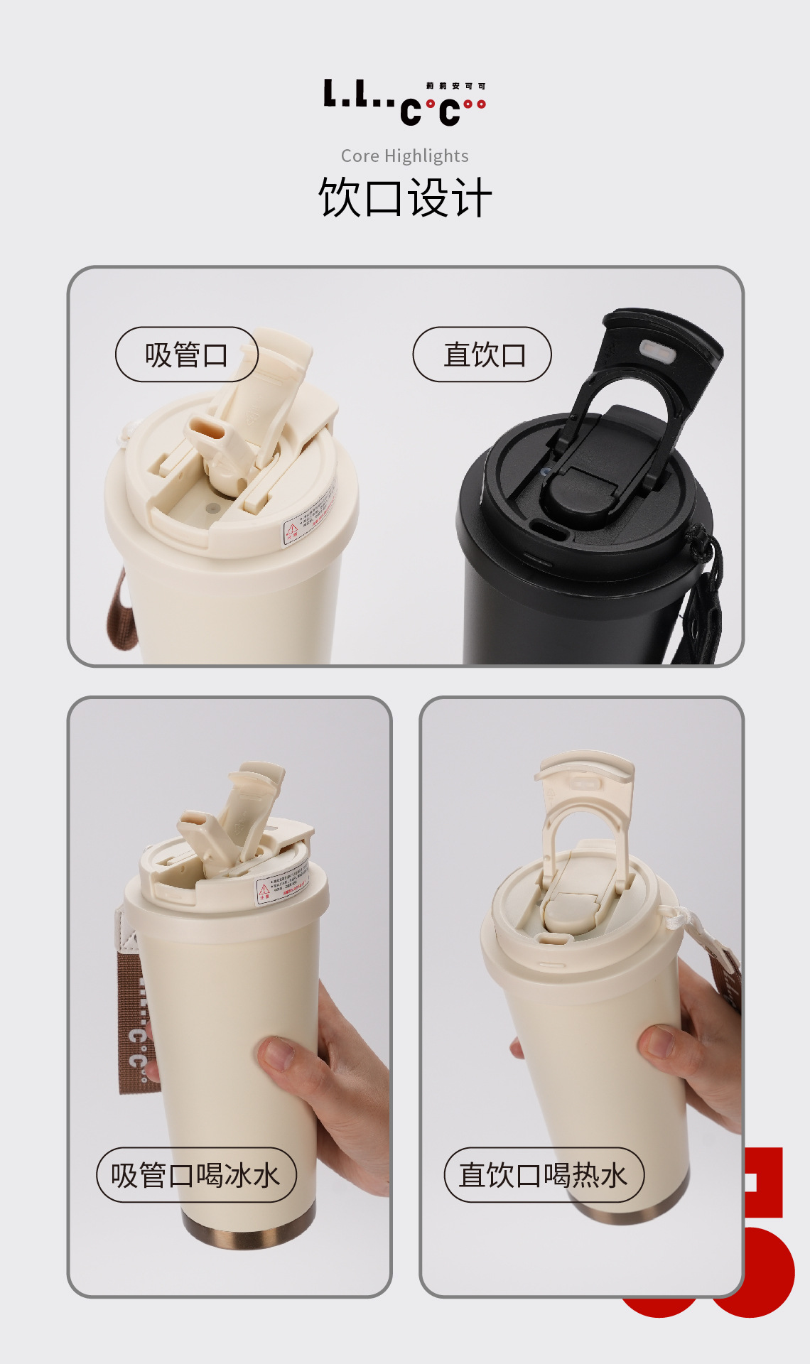 【觀茶者杯】316內膽食品級不鏽鋼手提繩吸琯杯直飲可攜式雙飲口