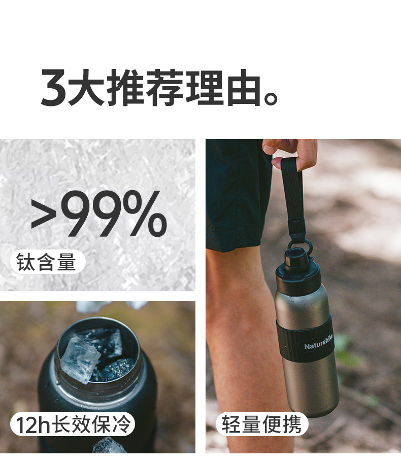 挪客純鈦運動水壺戶外杯子露營雙層鈦杯騎行大容量可攜式吸琯保溫杯