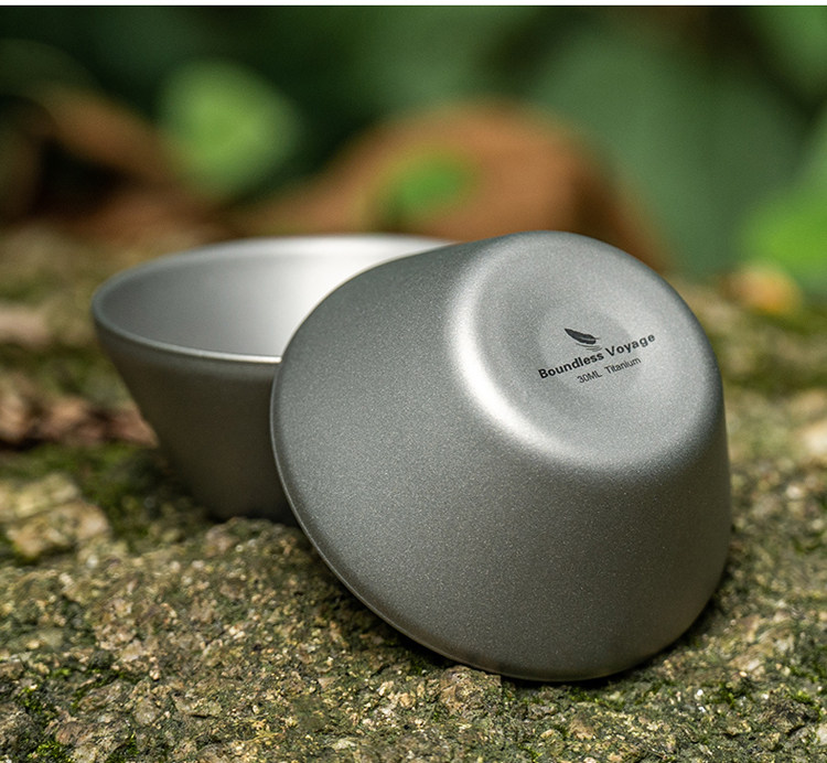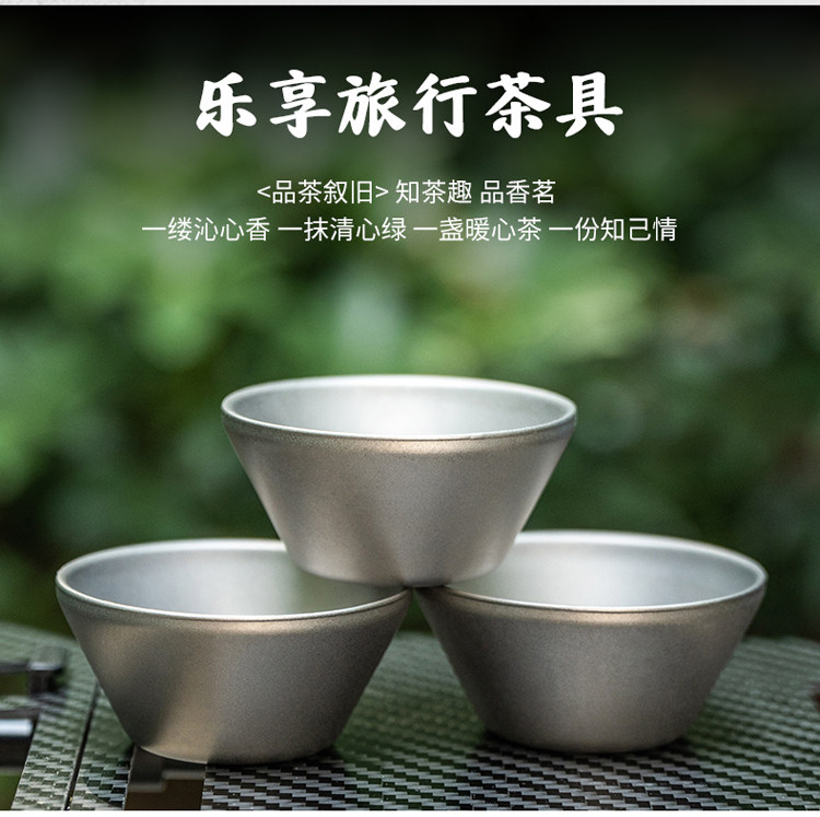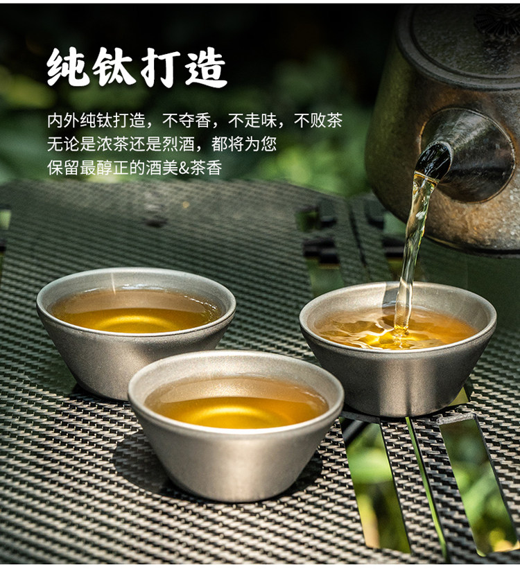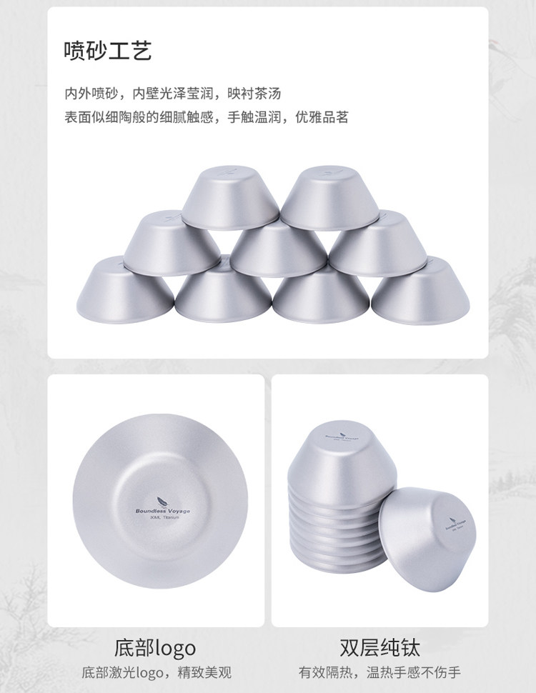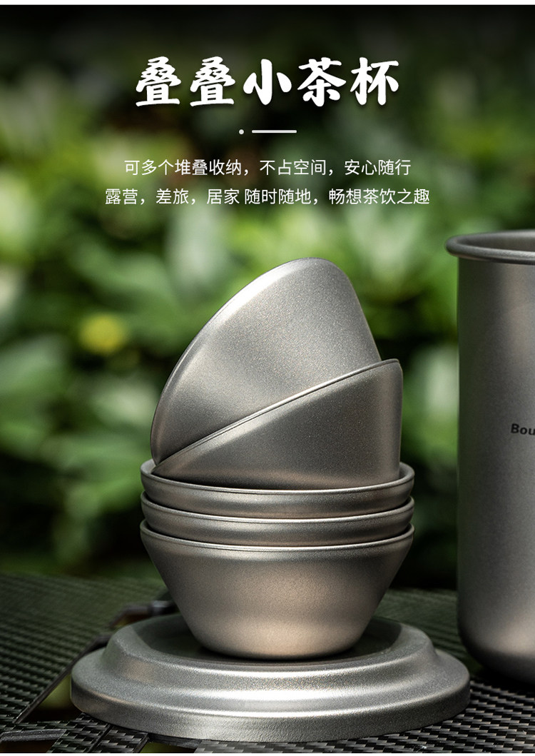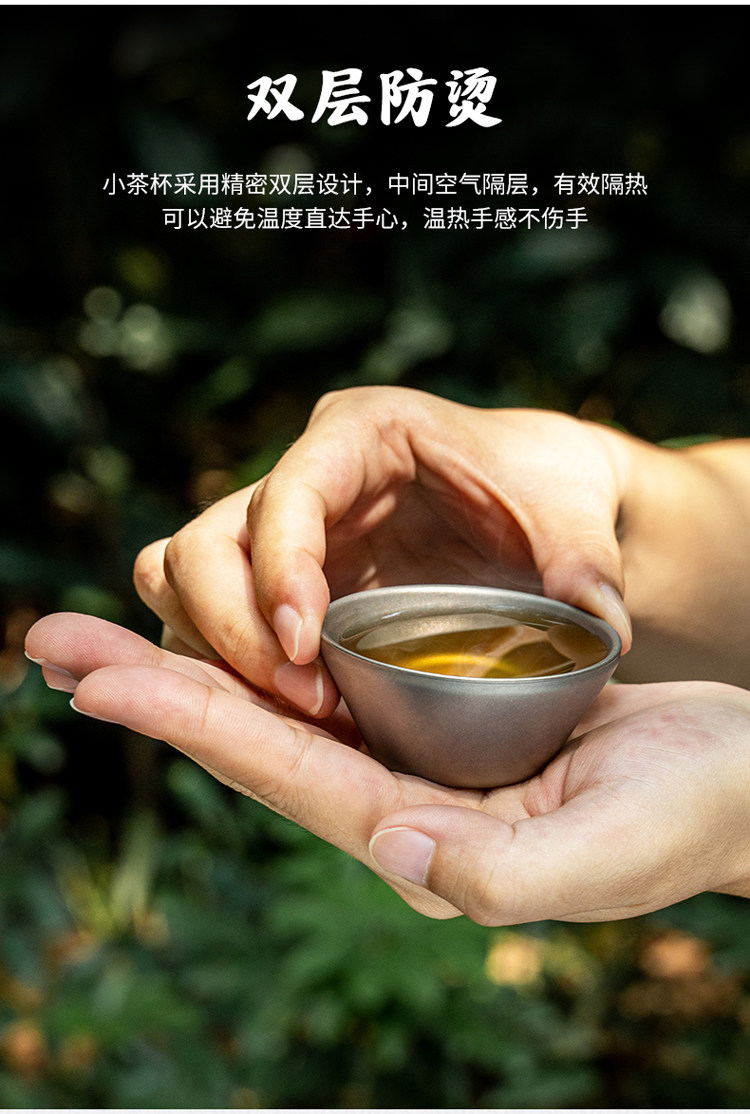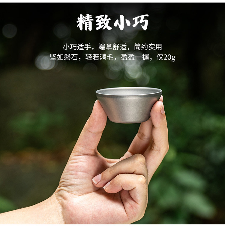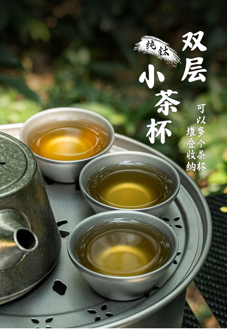 必唯純鈦小茶杯30ml雙層鈦杯戶外超輕可攜式功夫茶杯外出喝茶小杯子