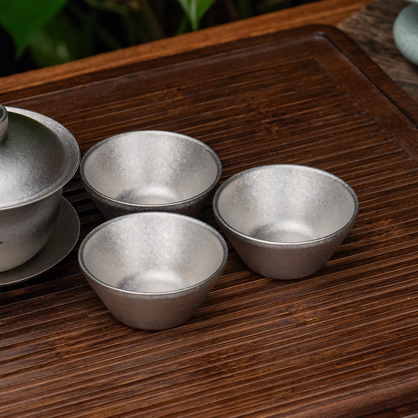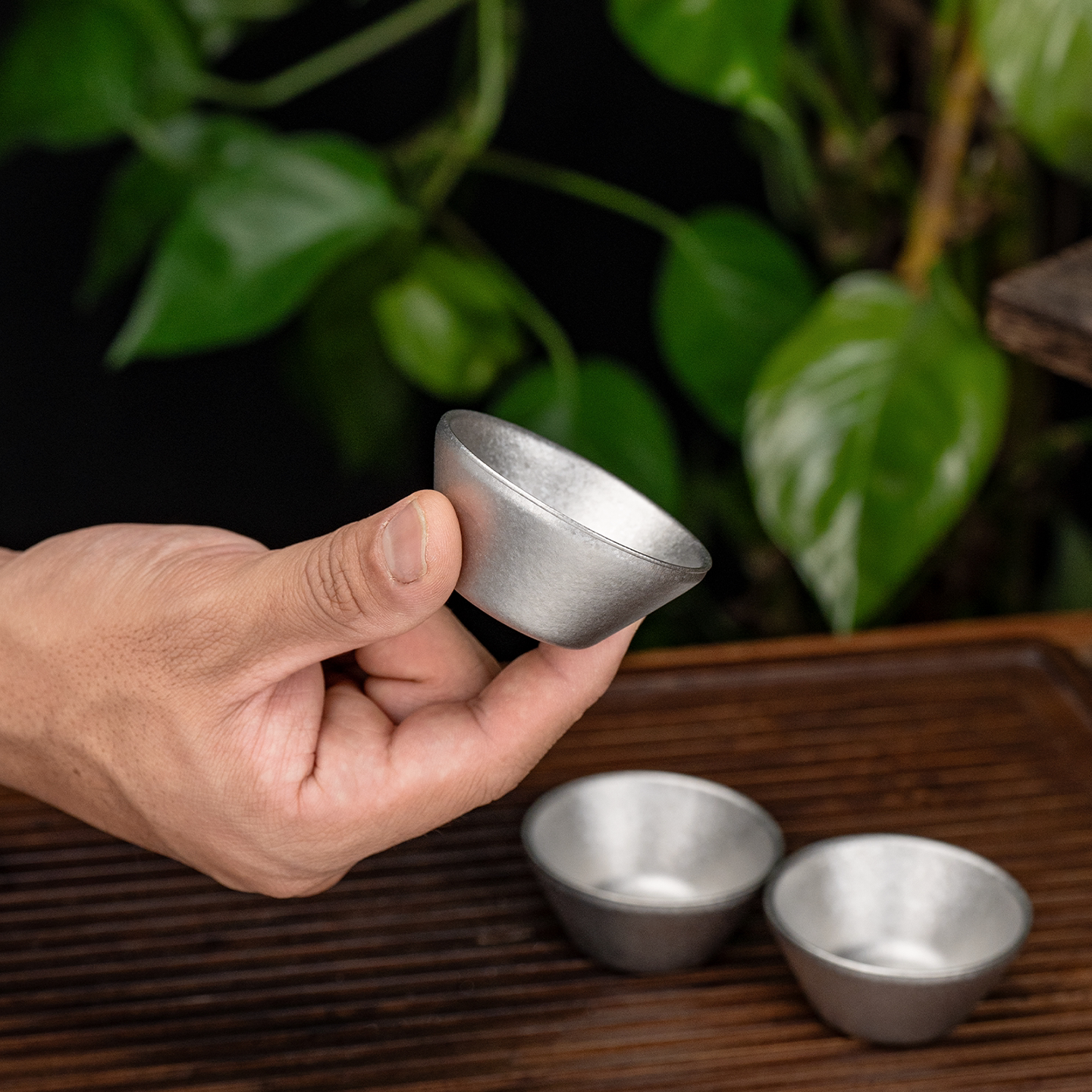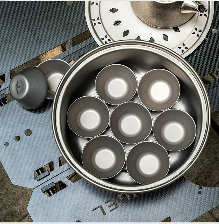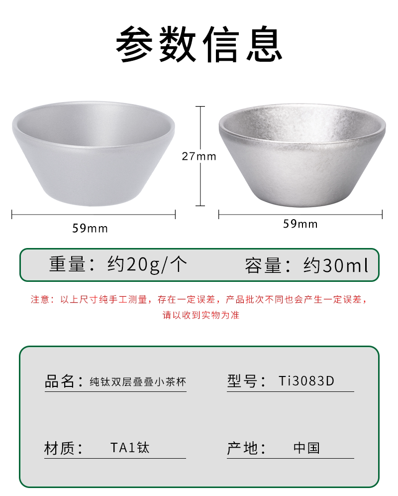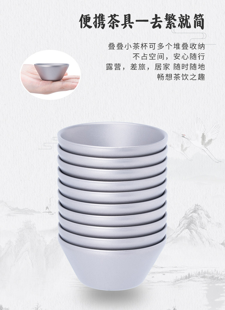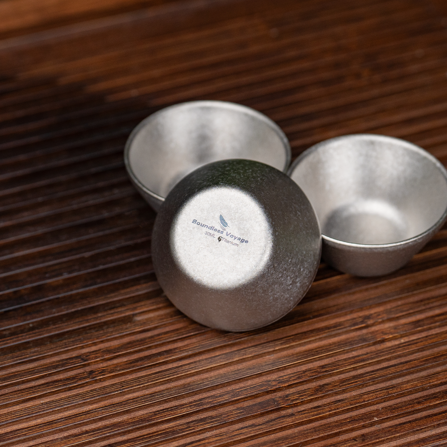 必唯純鈦小茶杯30ml雙層鈦杯戶外超輕可攜式功夫茶杯外出喝茶小杯子