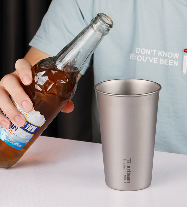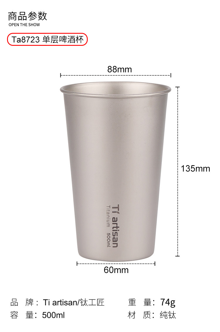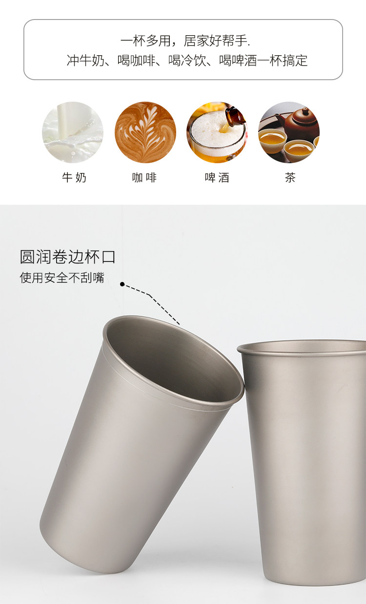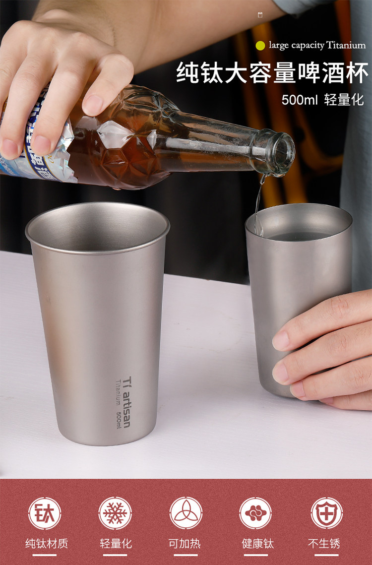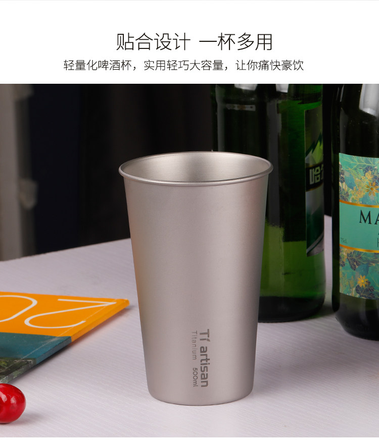 鈦工匠戶外純鈦啤酒杯旅行輕可攜式家用果汁杯喝茶鈦杯單層500ml