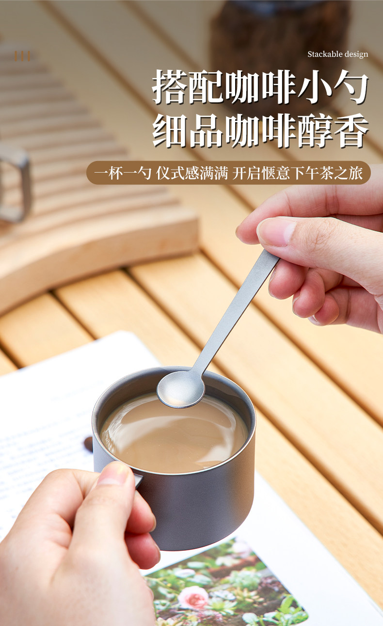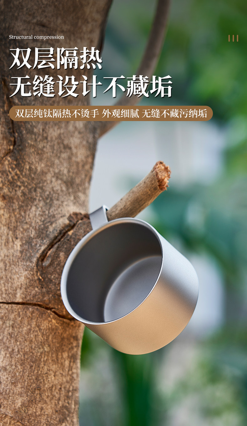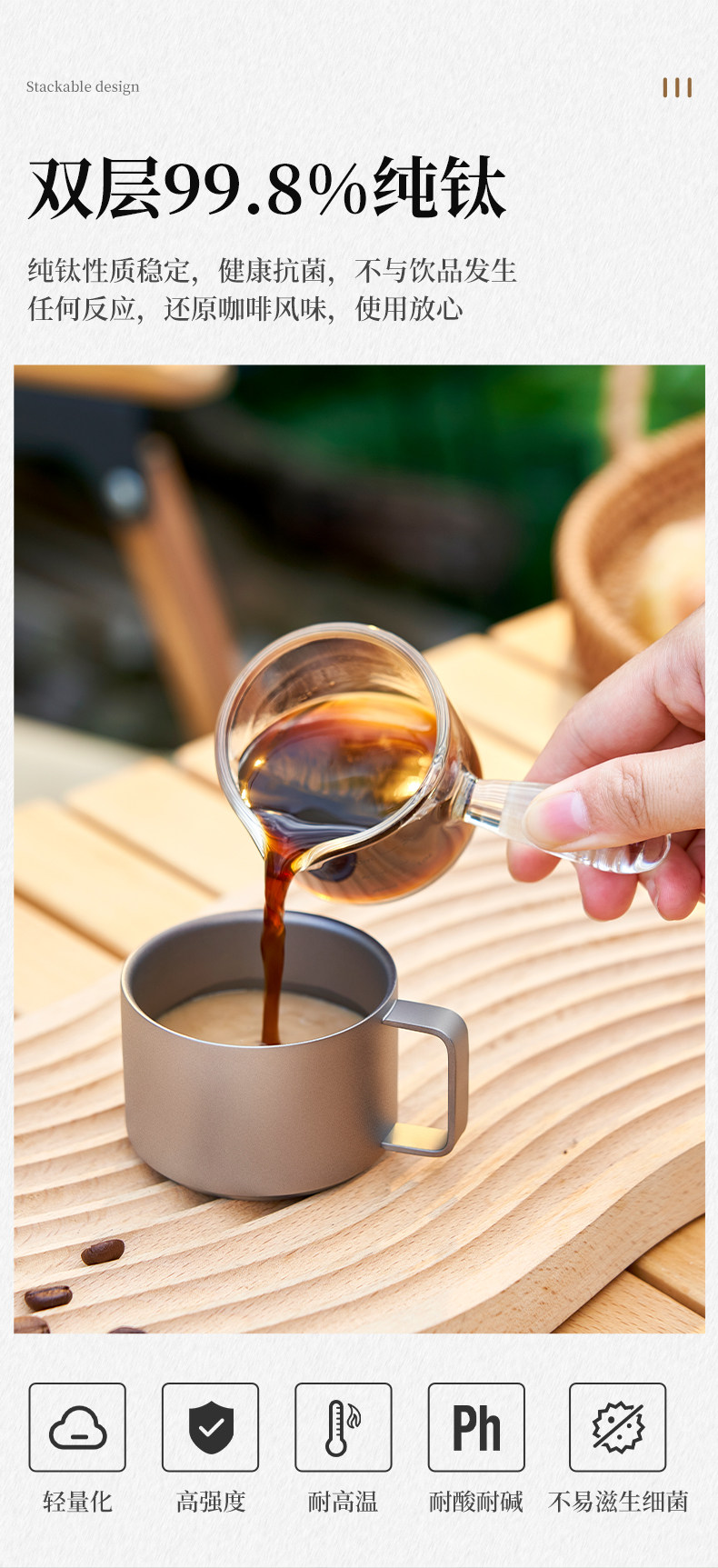 純鈦100ML雙層咖啡杯小茶杯戶外鈦杯手柄水杯防燙帶把品茗杯