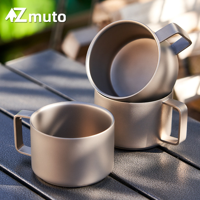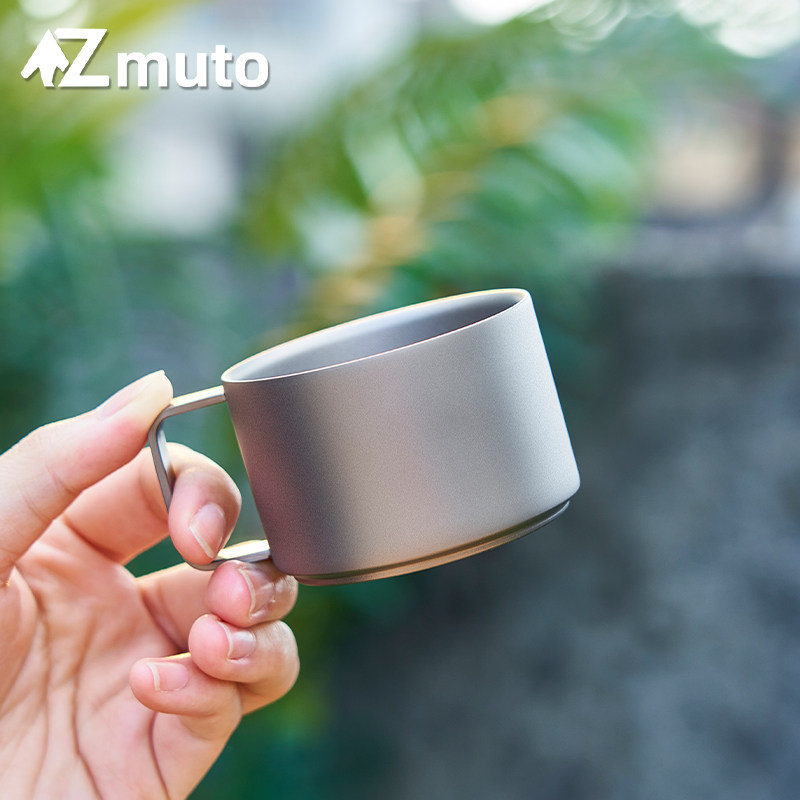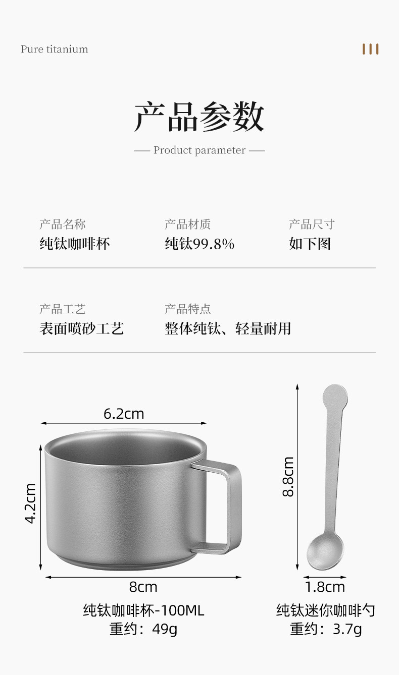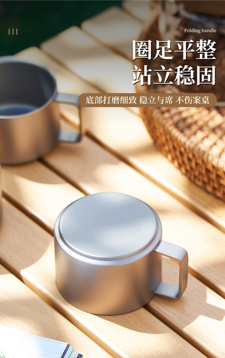 純鈦100ML雙層咖啡杯小茶杯戶外鈦杯手柄水杯防燙帶把品茗杯