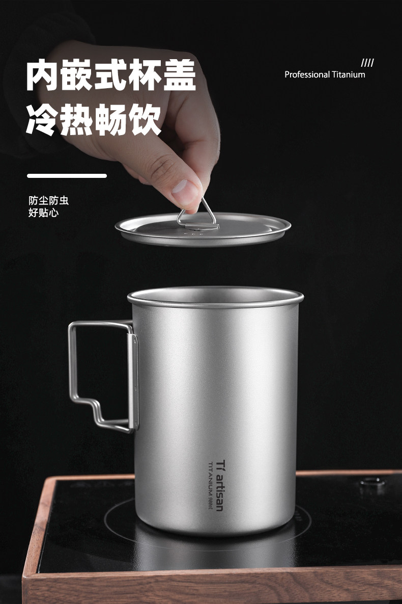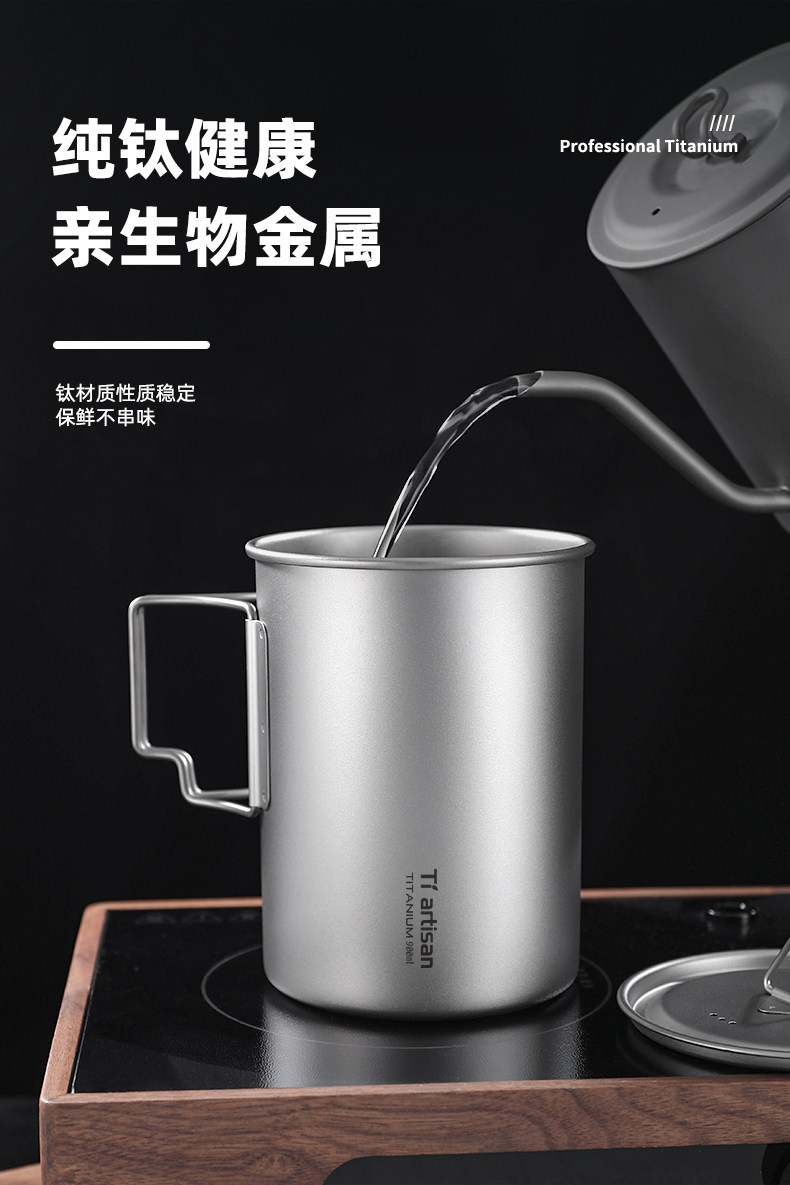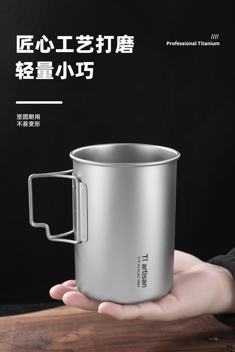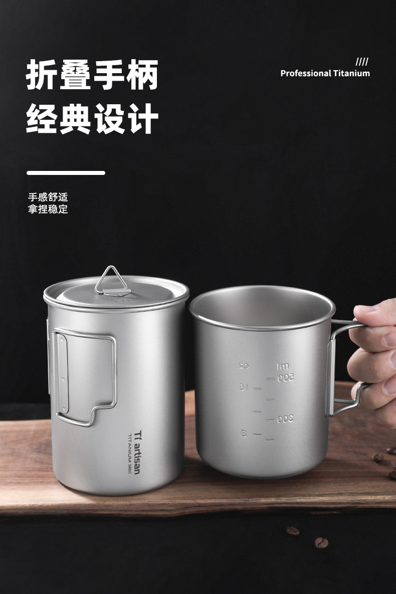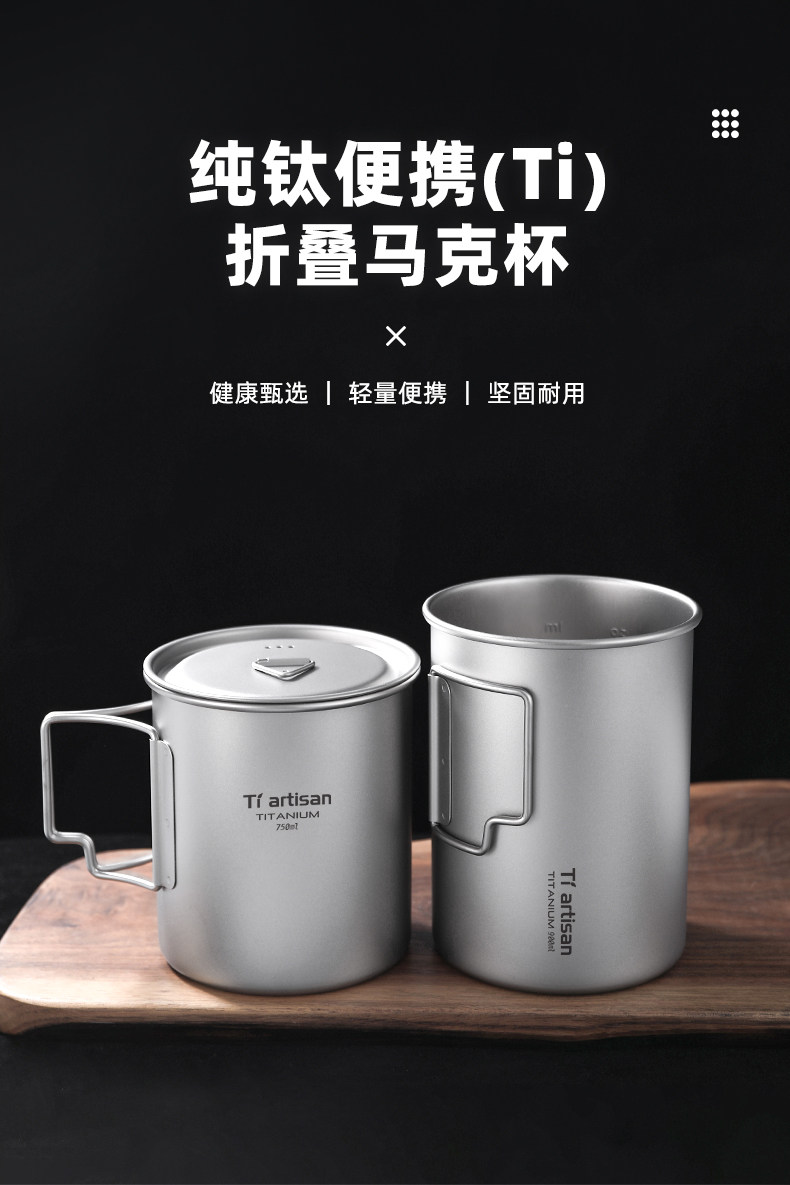 鈦工匠純鈦折疊馬克杯戶外可攜式水杯露營大容量帶蓋可攜式純鈦杯子