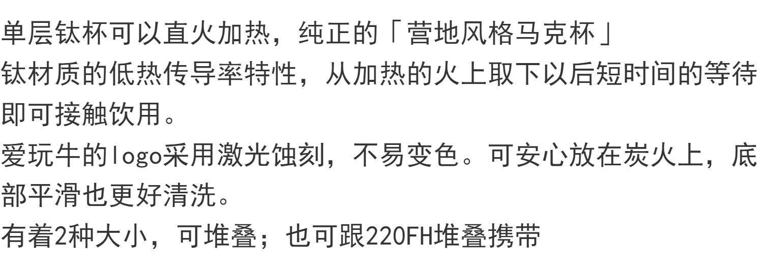 EVERNEW Ti-FH Mug愛玩牛單層鈦杯可直火加熱帶防燙手柄3/400ml