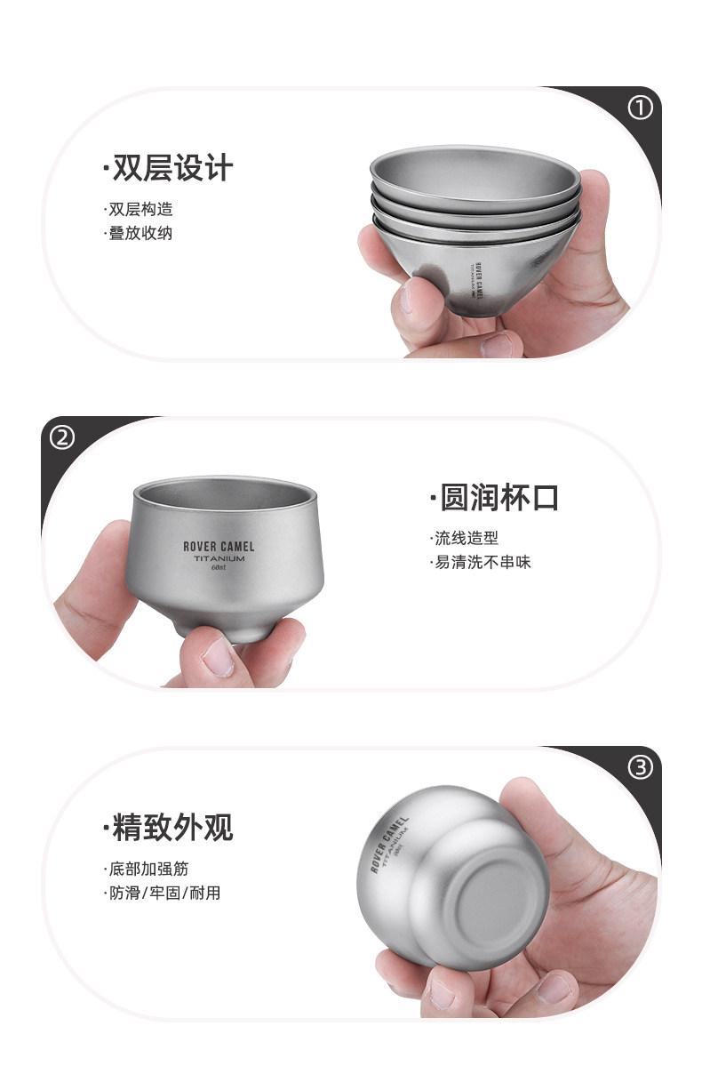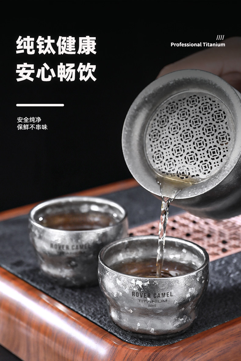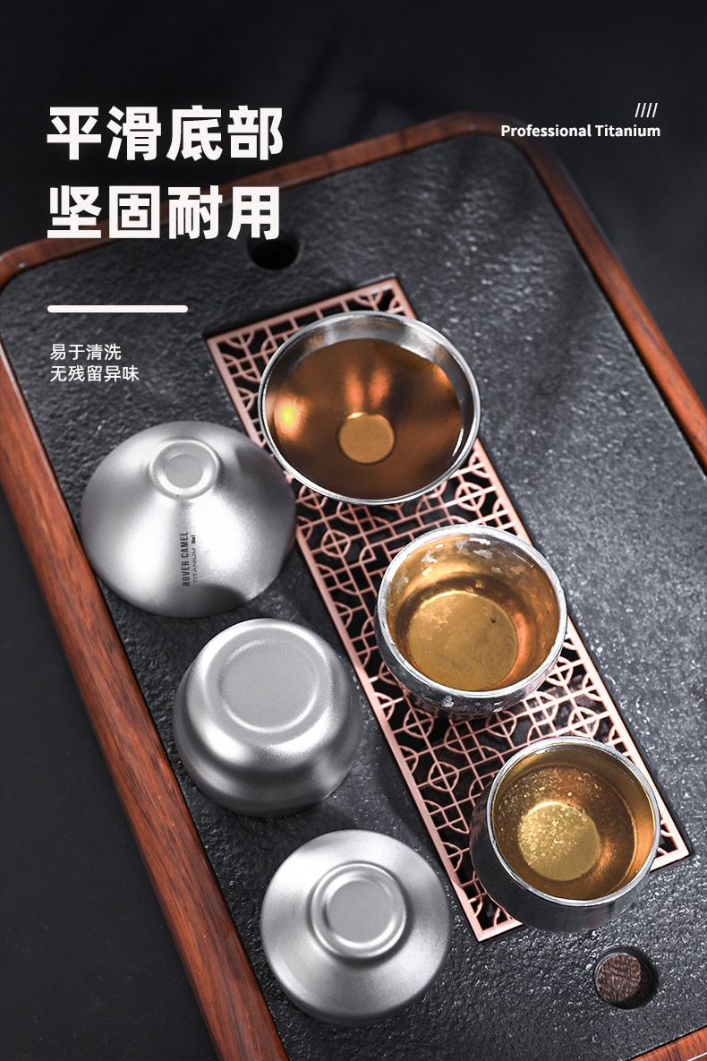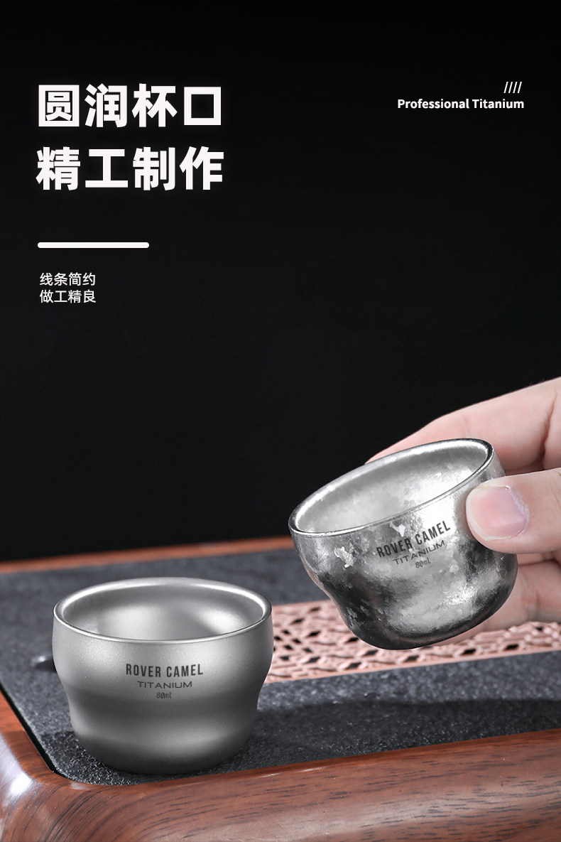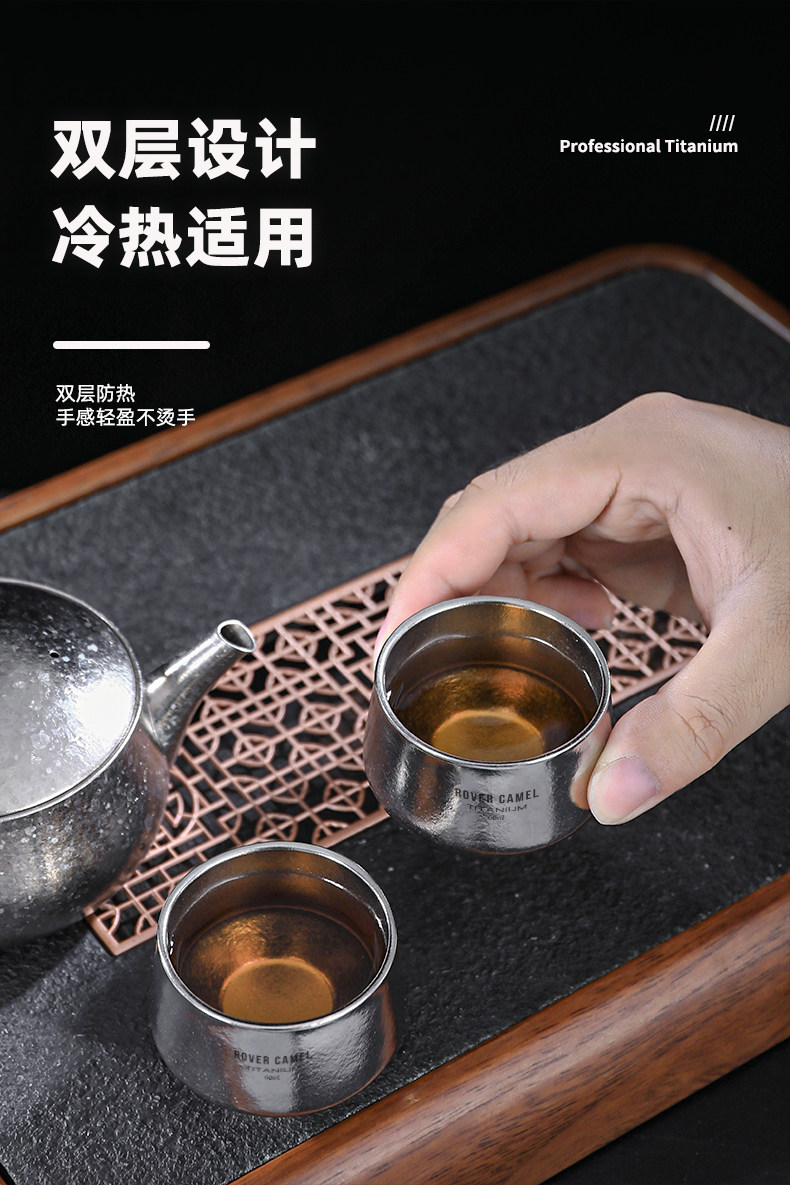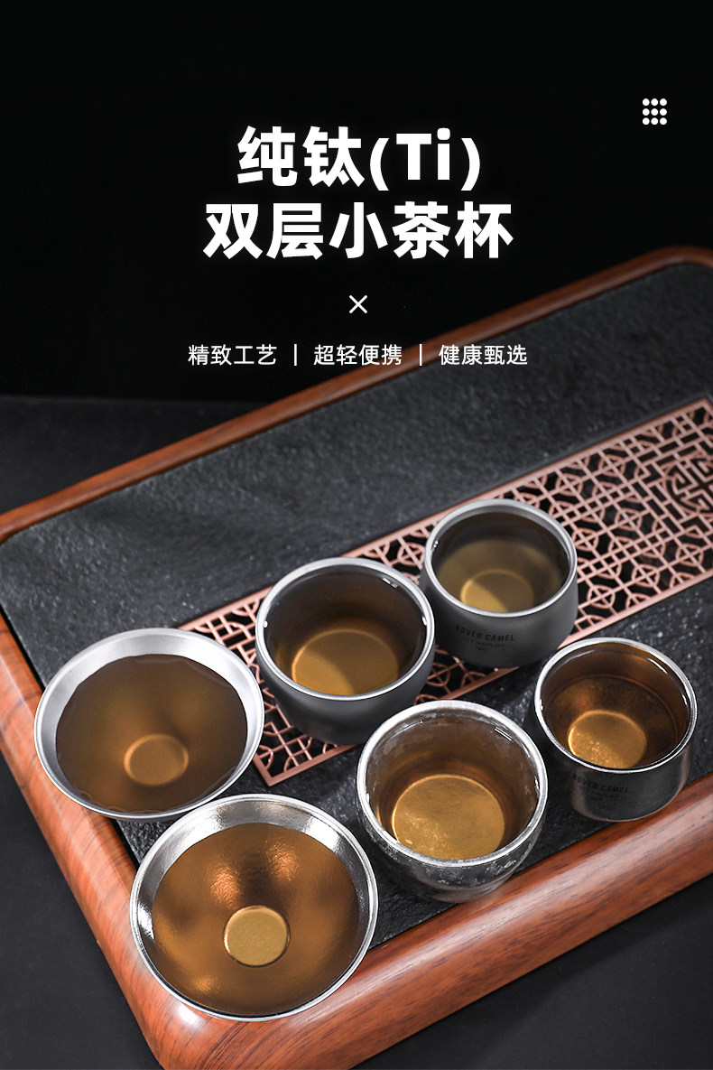 鈦工匠純鈦雙層主人杯戶外露營可攜式茶杯家用功夫茶具鈦杯茶具水杯