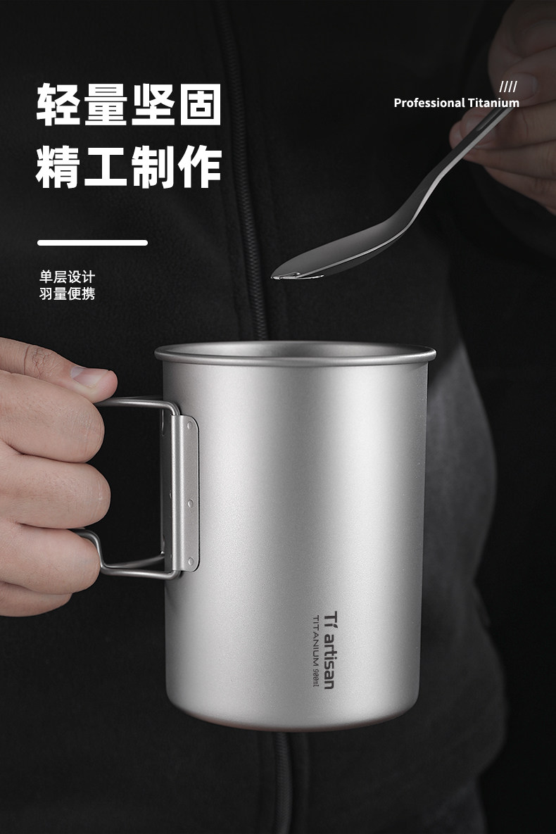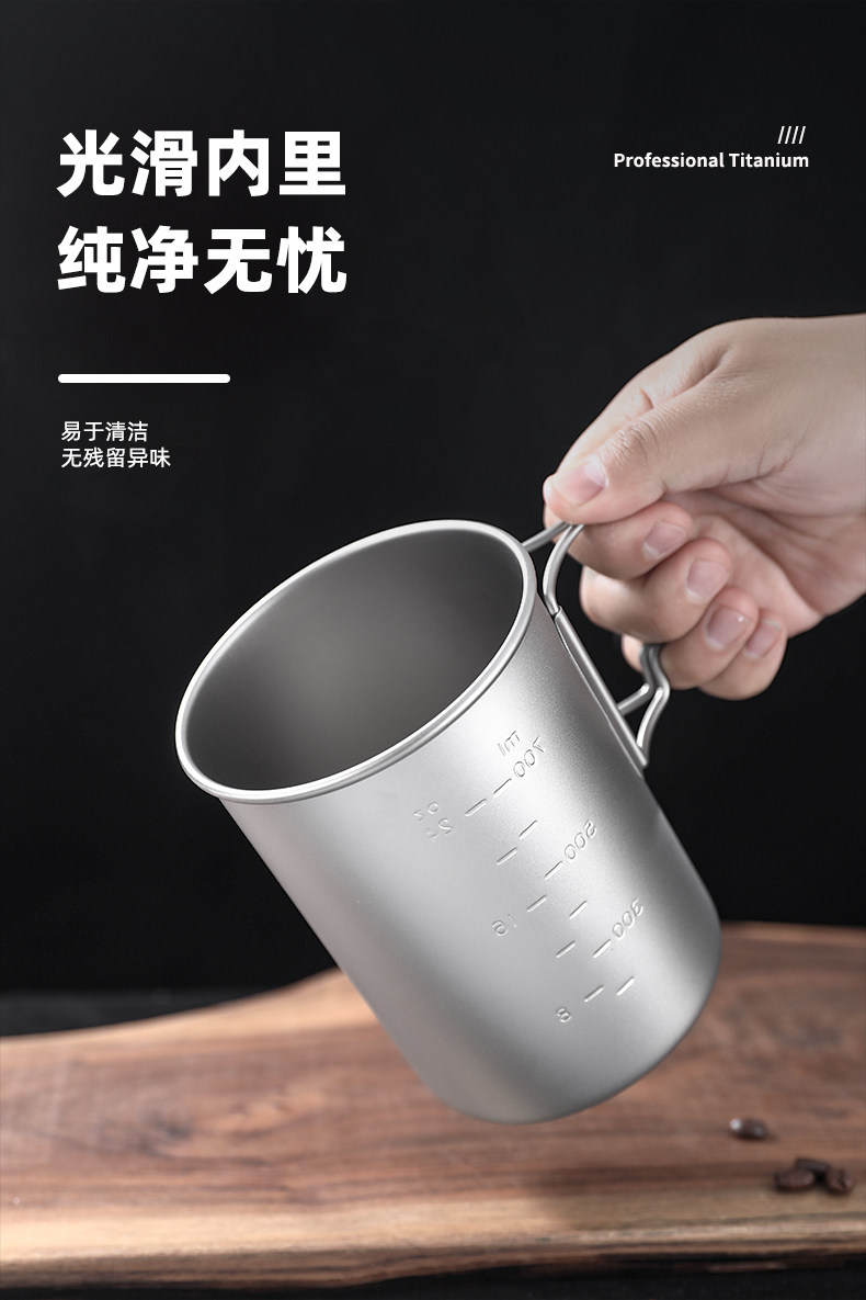 鈦工匠純鈦水杯戶外可攜式鈦鍋家用高檔馬克杯男士折疊柄大容量鈦杯