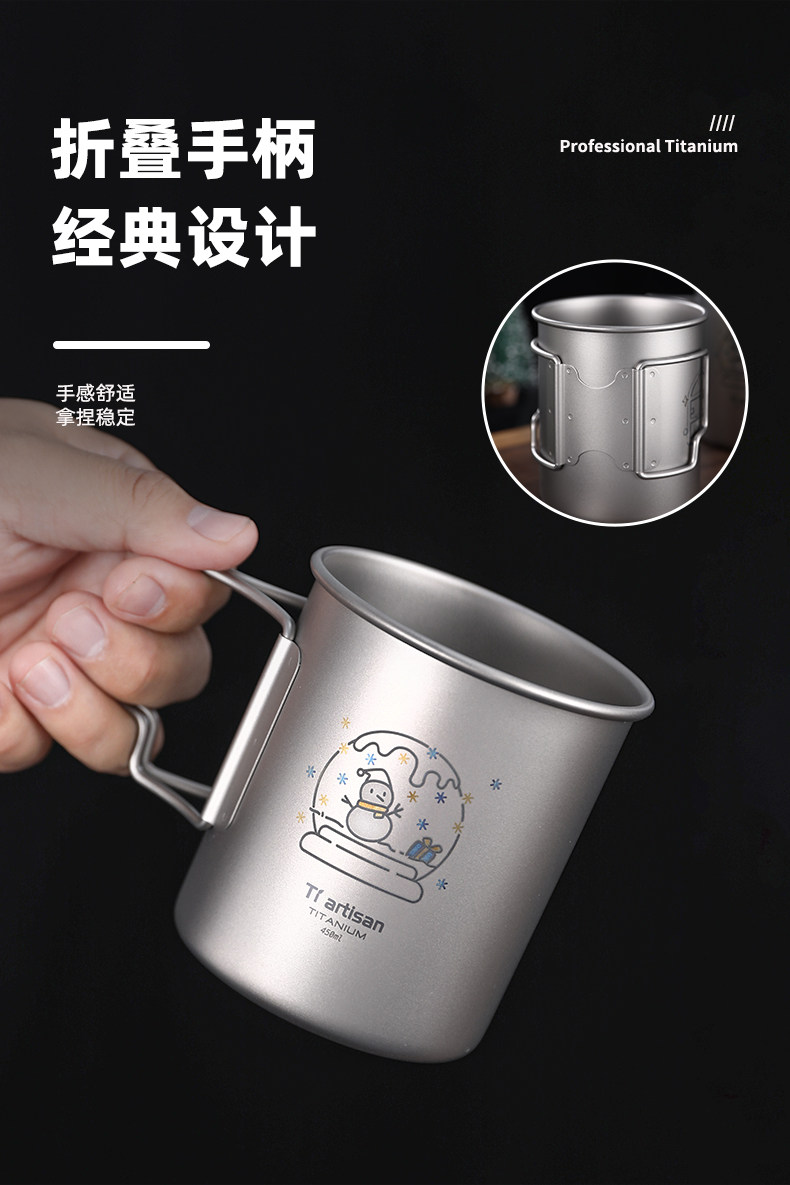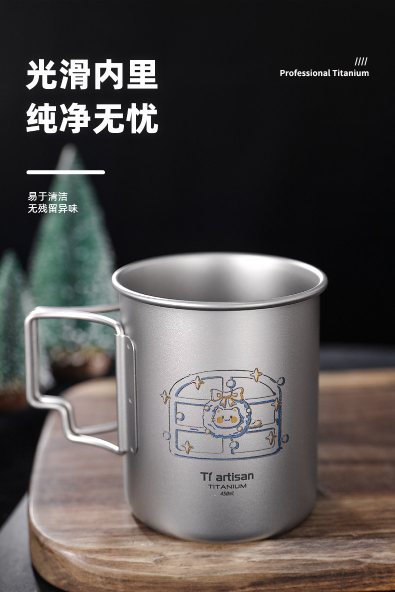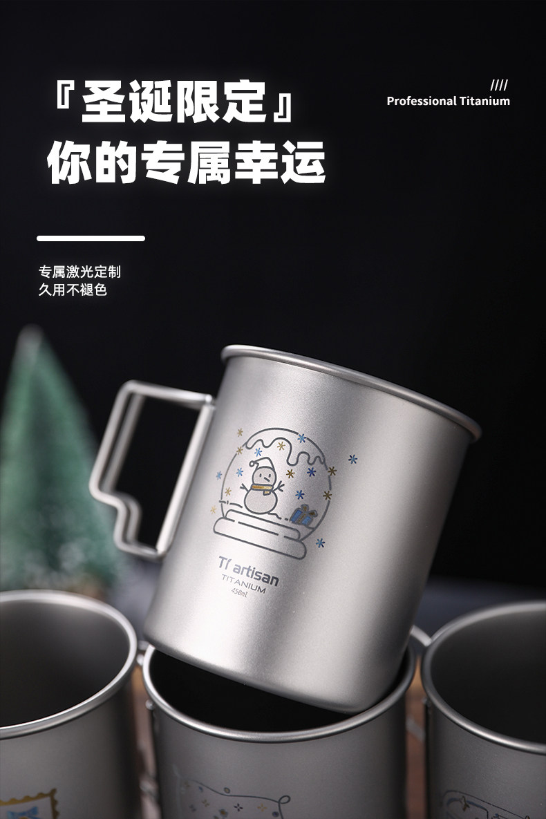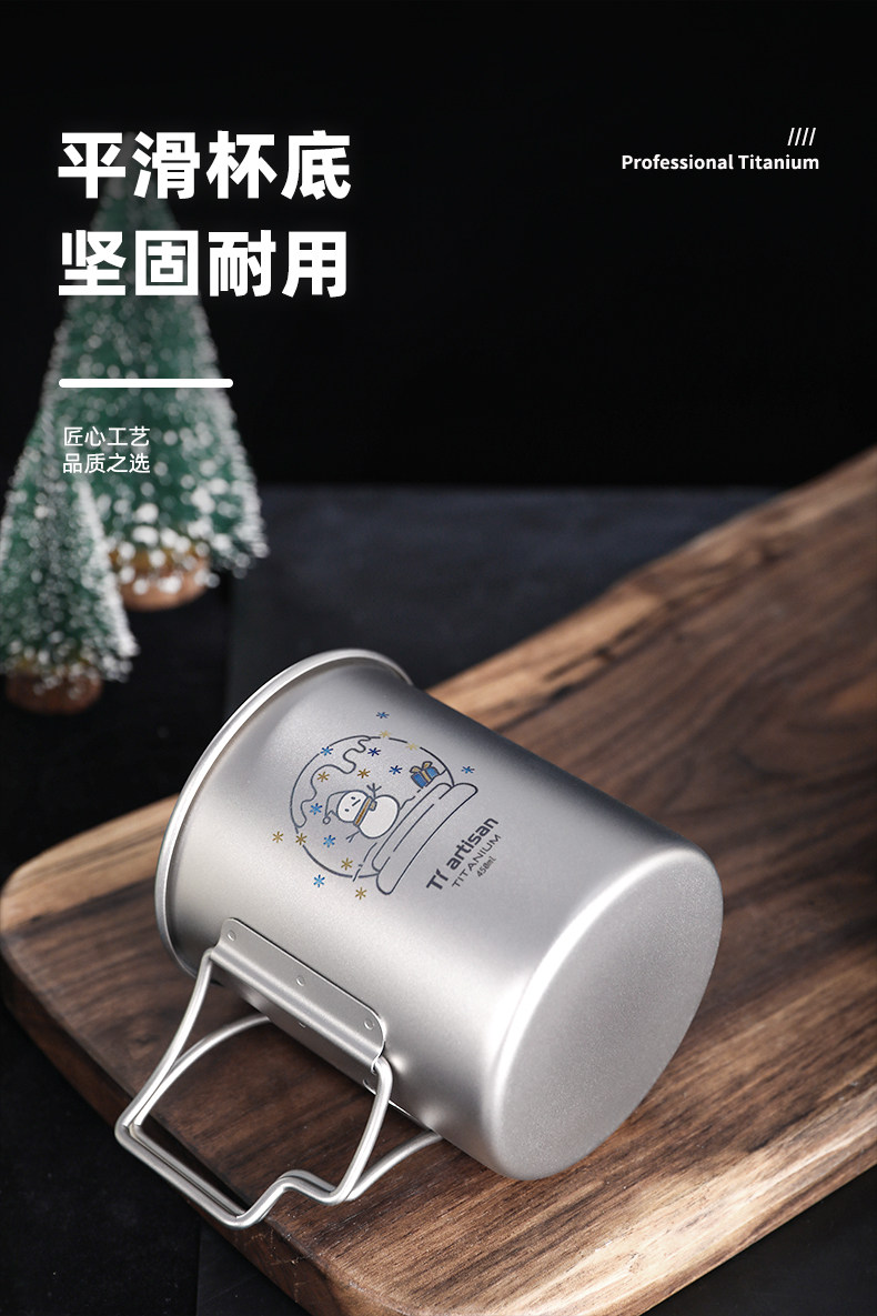 鈦工匠純鈦馬克杯可攜式鈦水杯聖誕卡通圖案戶外露營咖啡杯家用鈦杯