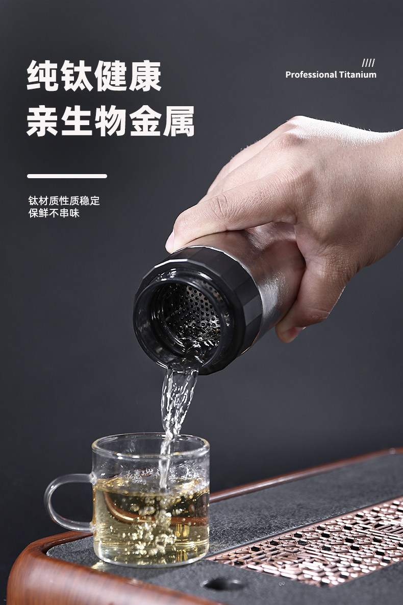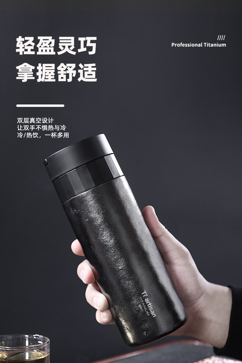 鈦工匠純鈦保溫杯茶水分離鈦杯雙層燜泡茶杯高顔值商務辦公鈦水杯