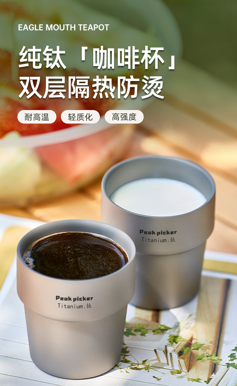 戶外露營純鈦水杯雙層隔熱防燙家用鈦茶杯主人杯咖啡杯辦公鈦杯子