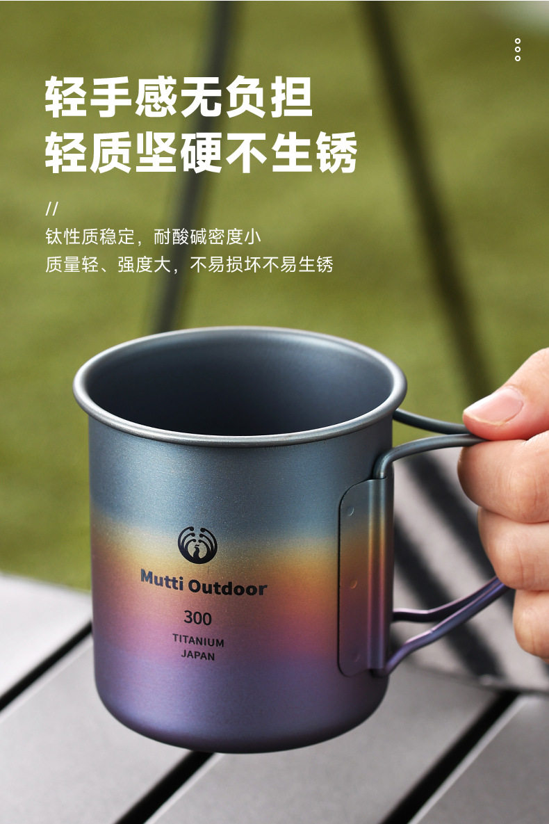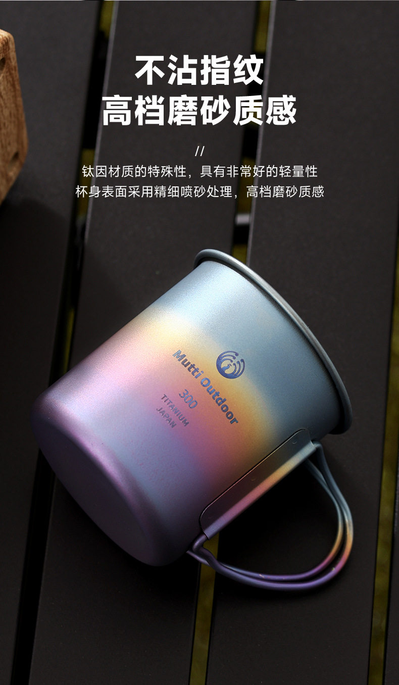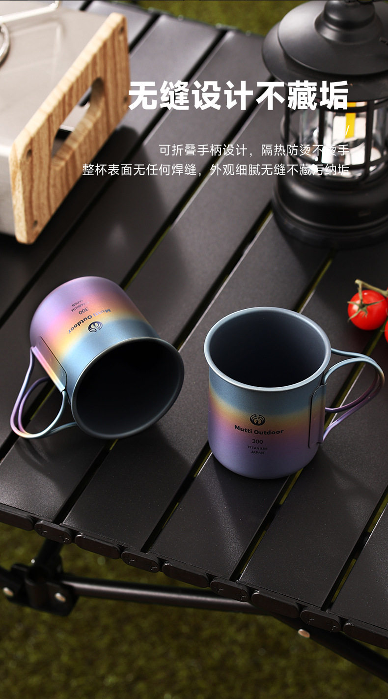 手工燒製幻彩300ML鈦杯戶外露營純鈦馬克杯可攜式水杯咖啡杯早餐杯