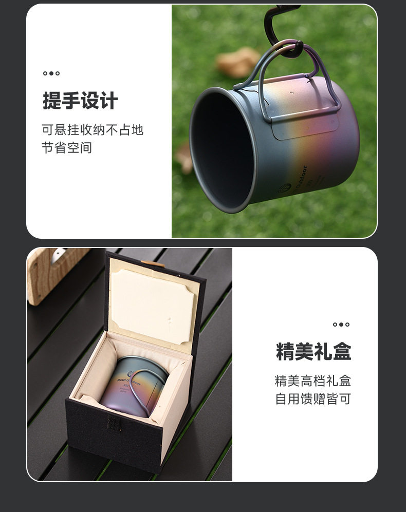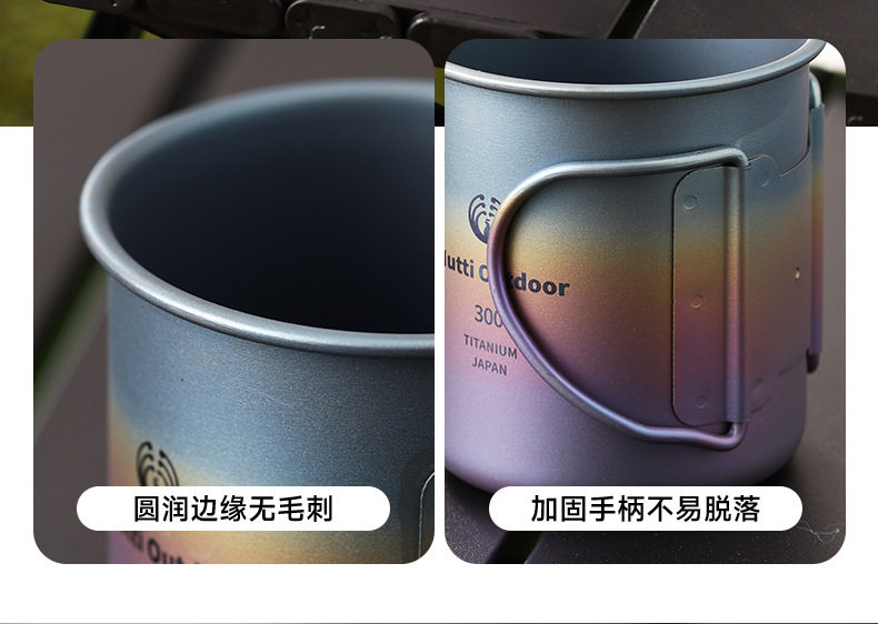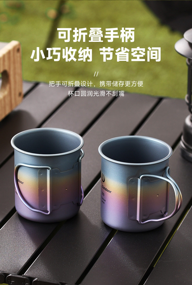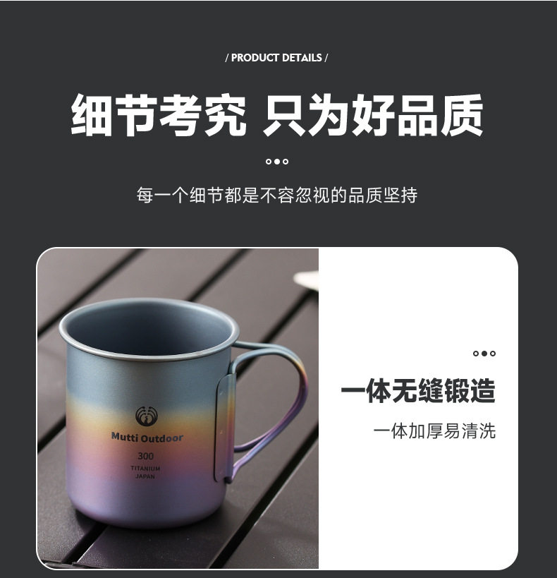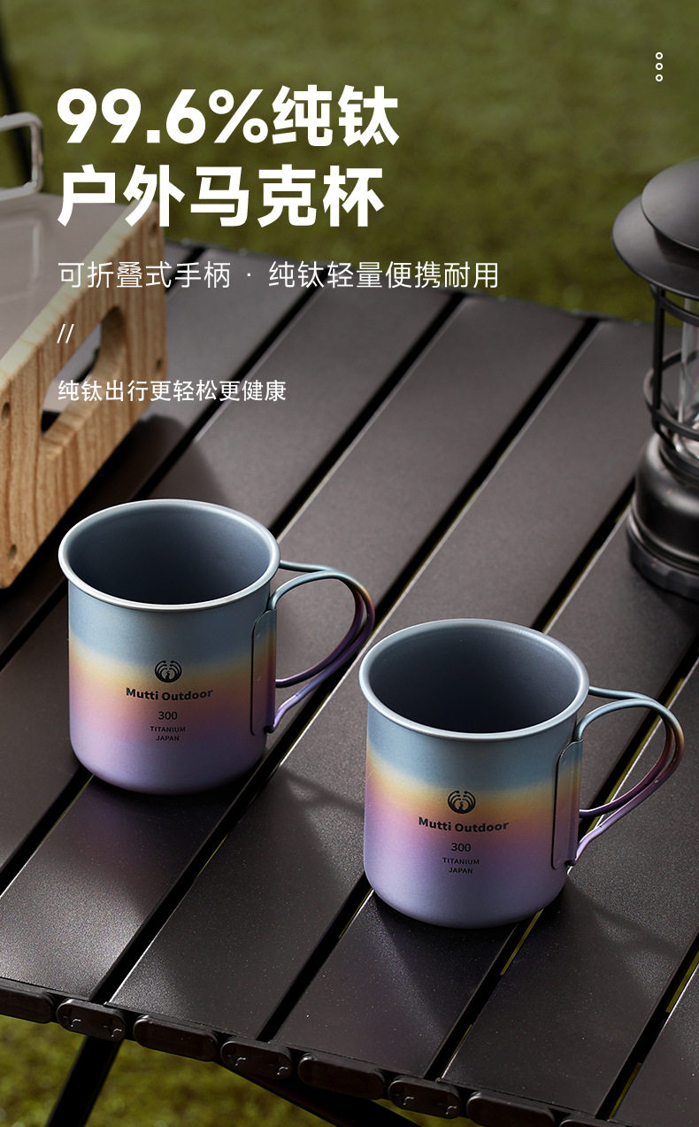 手工燒製幻彩300ML鈦杯戶外露營純鈦馬克杯可攜式水杯咖啡杯早餐杯