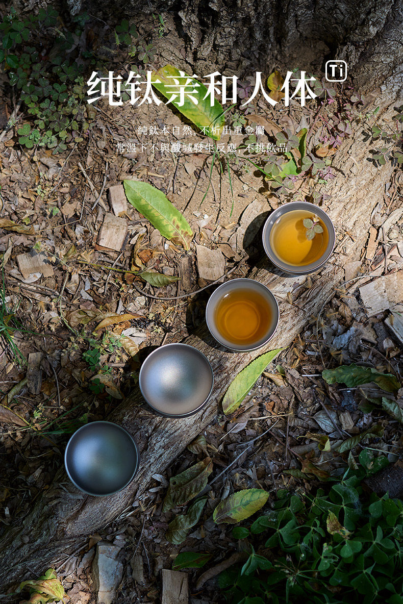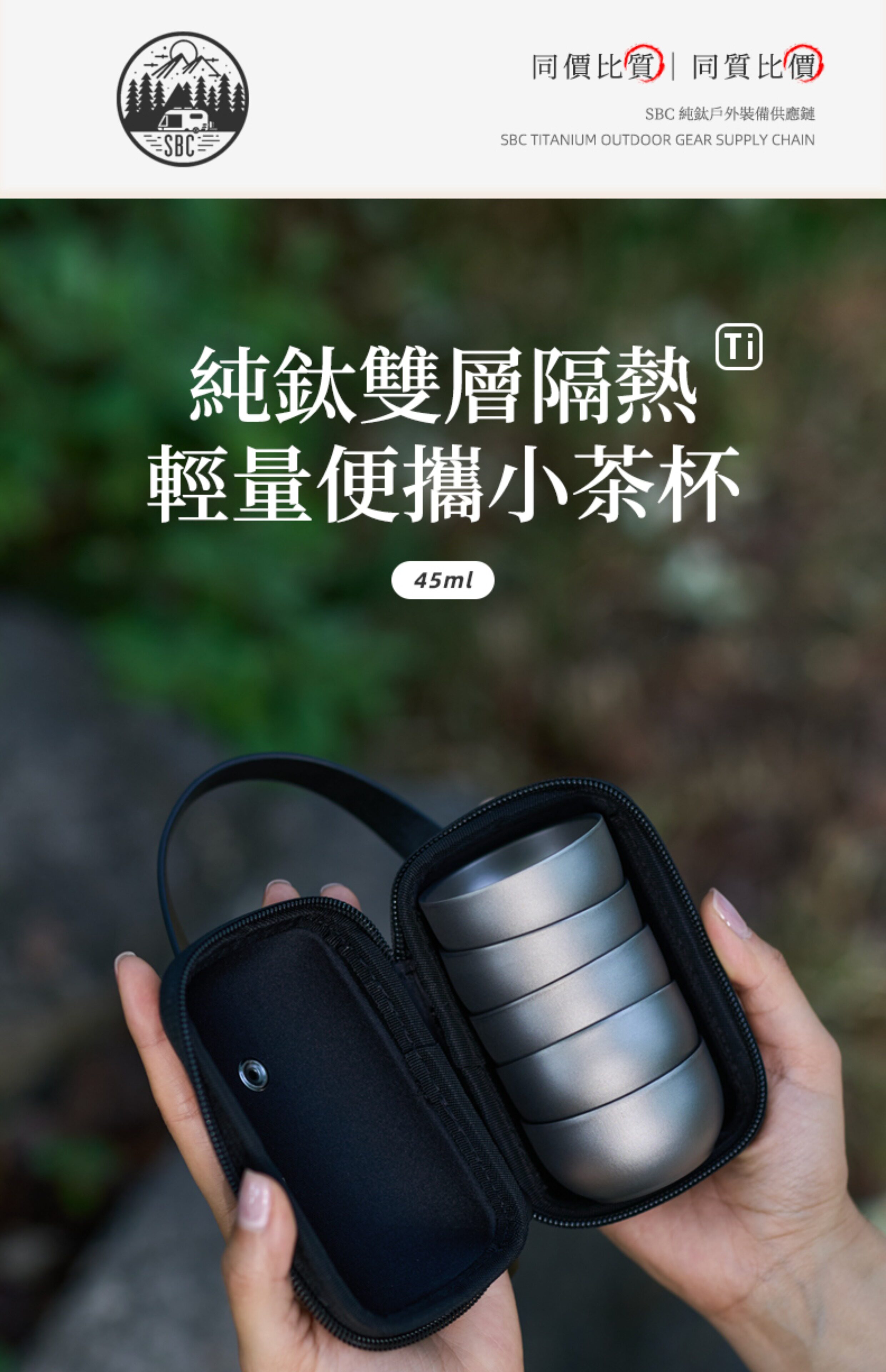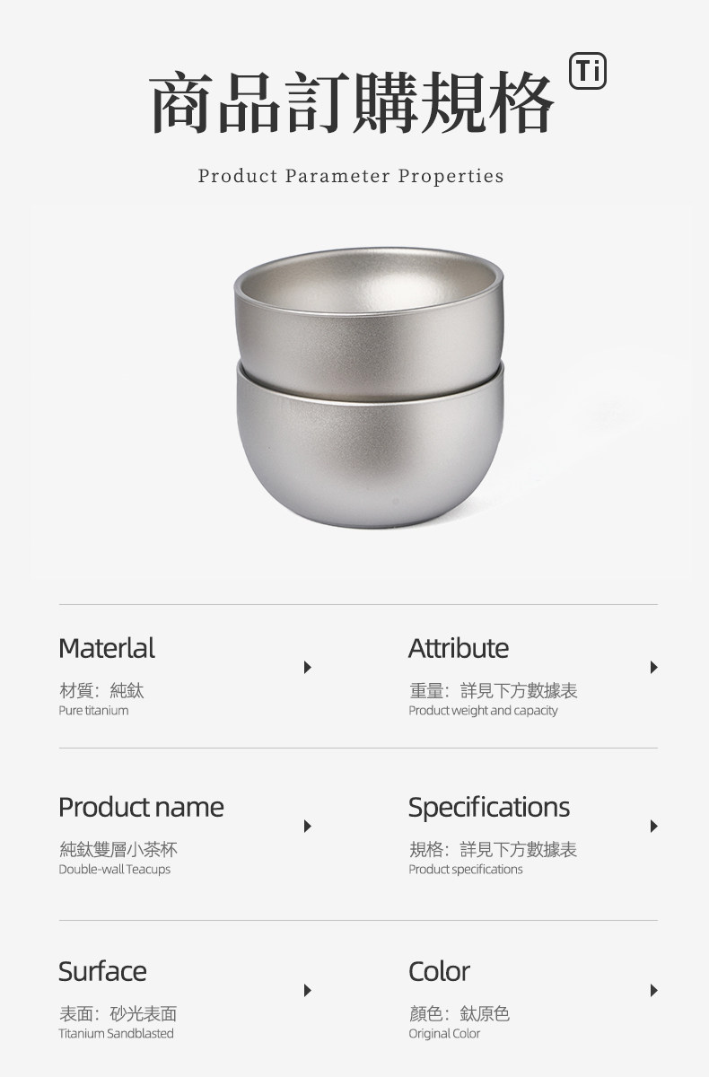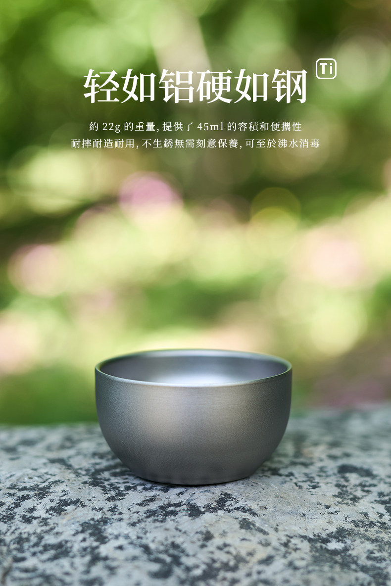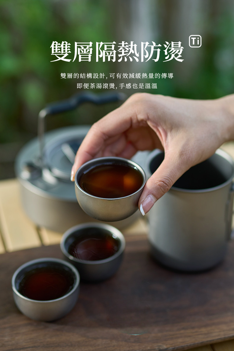 純鈦小茶杯戶外鈦茶具雙層隔熱防燙露營旅行鈦杯家用泡茶主人杯