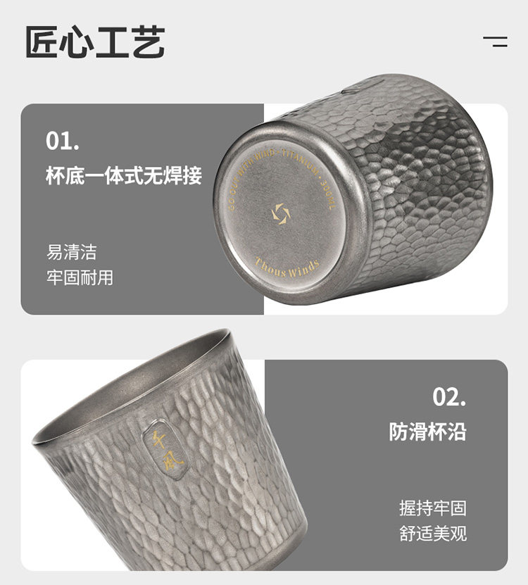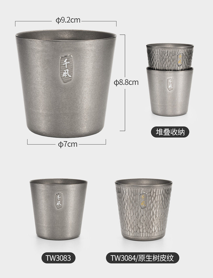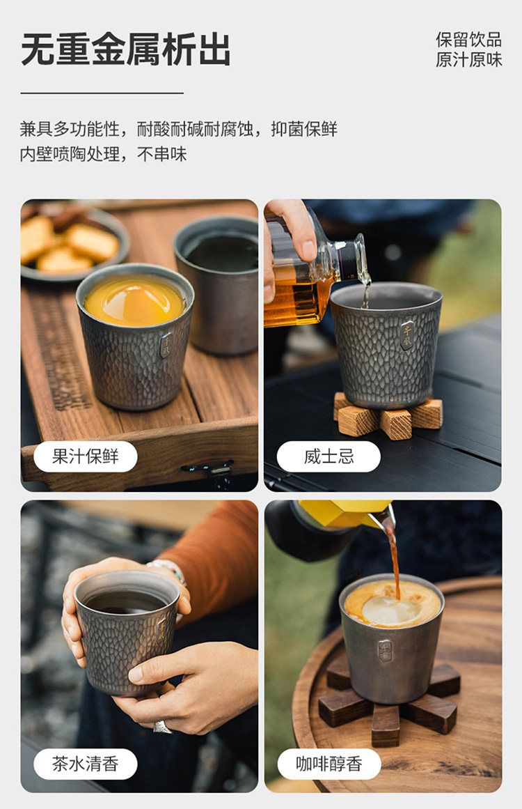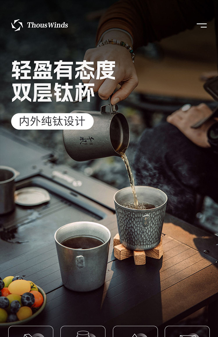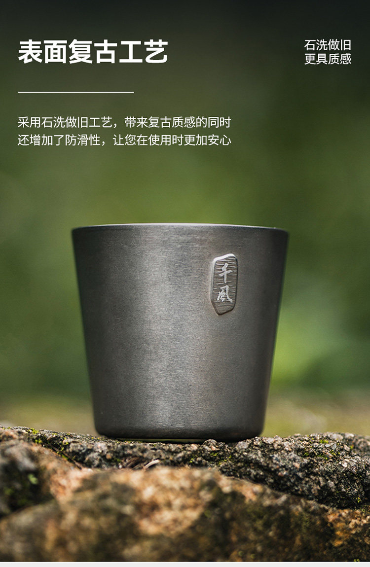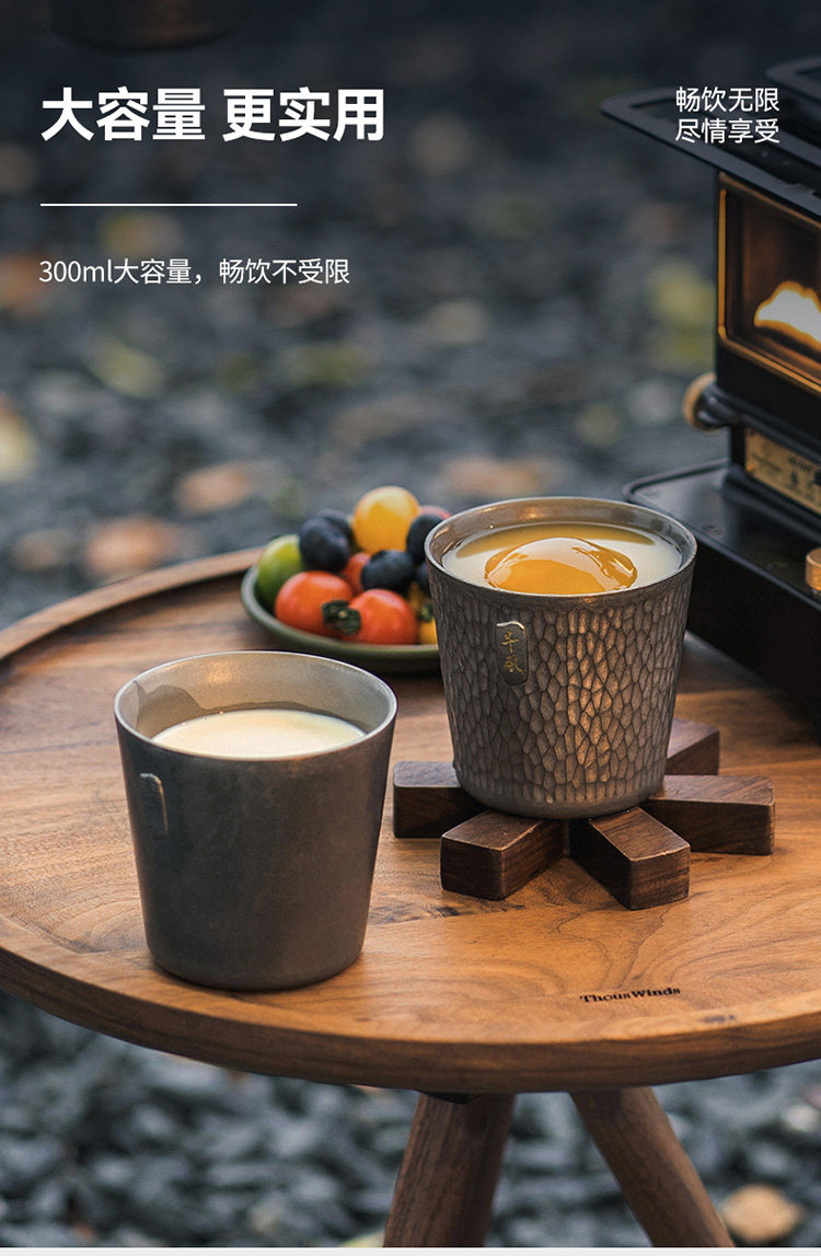 Thous Winds千風戶外露營雙層鈦杯樹皮紋保溫防燙咖啡水杯茶杯