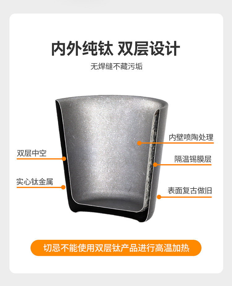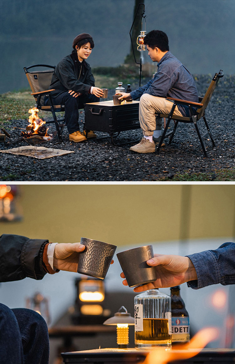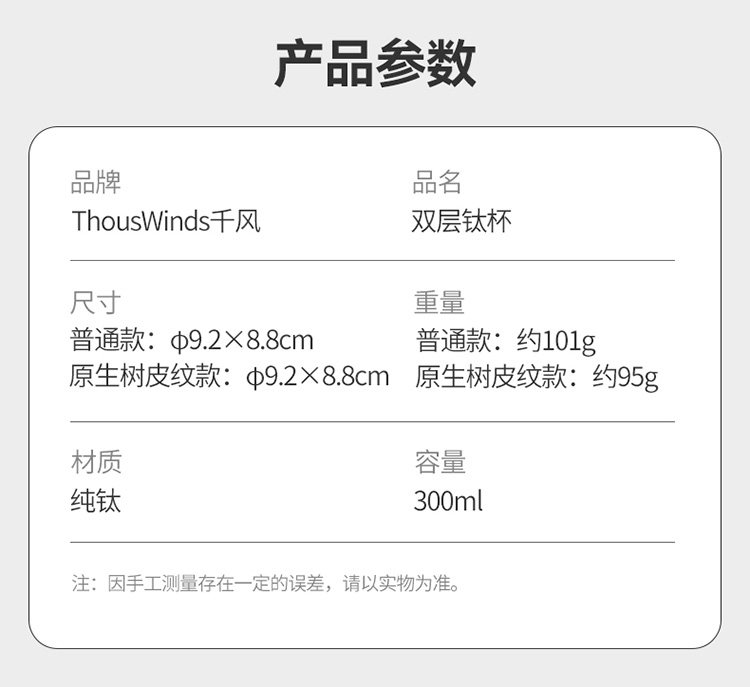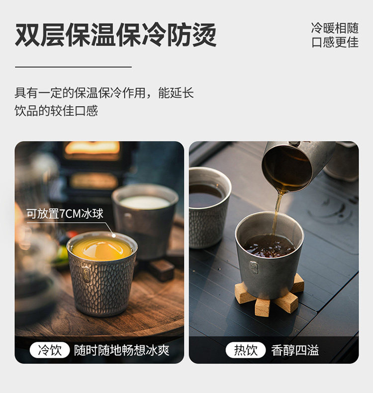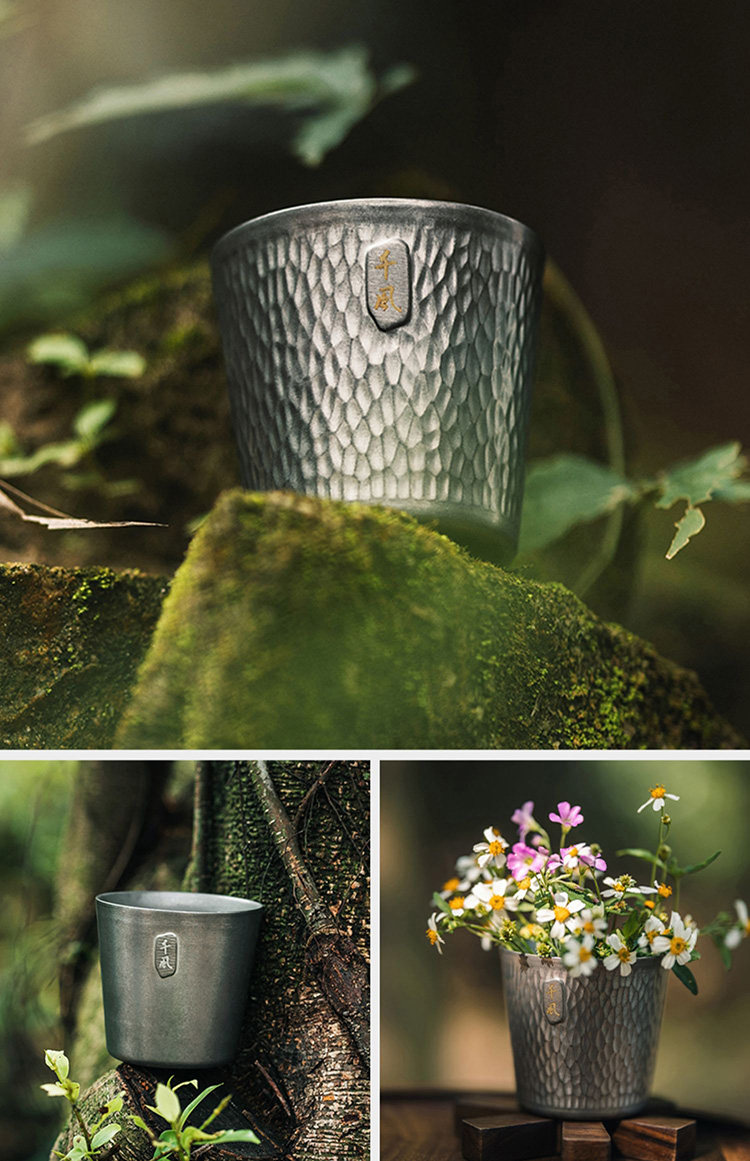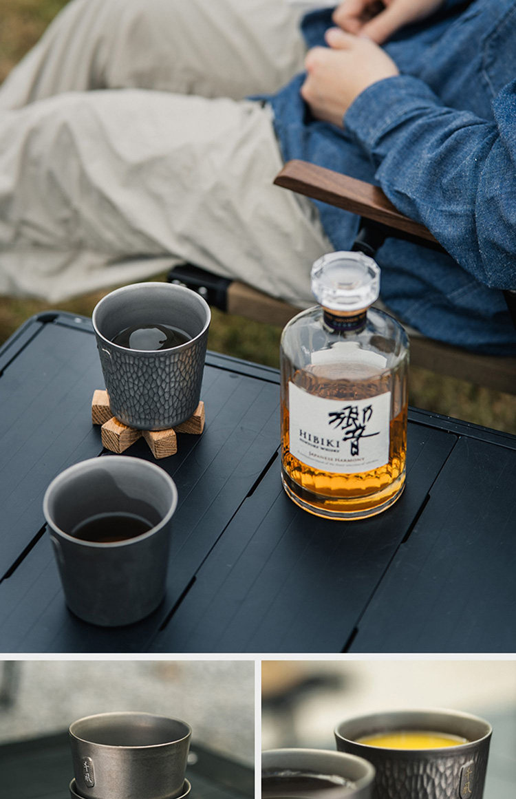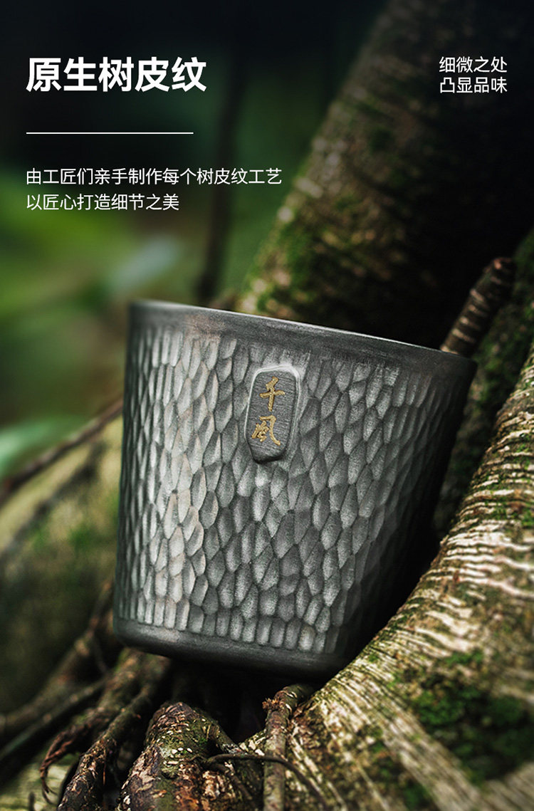 Thous Winds千風戶外露營雙層鈦杯樹皮紋保溫防燙咖啡水杯茶杯