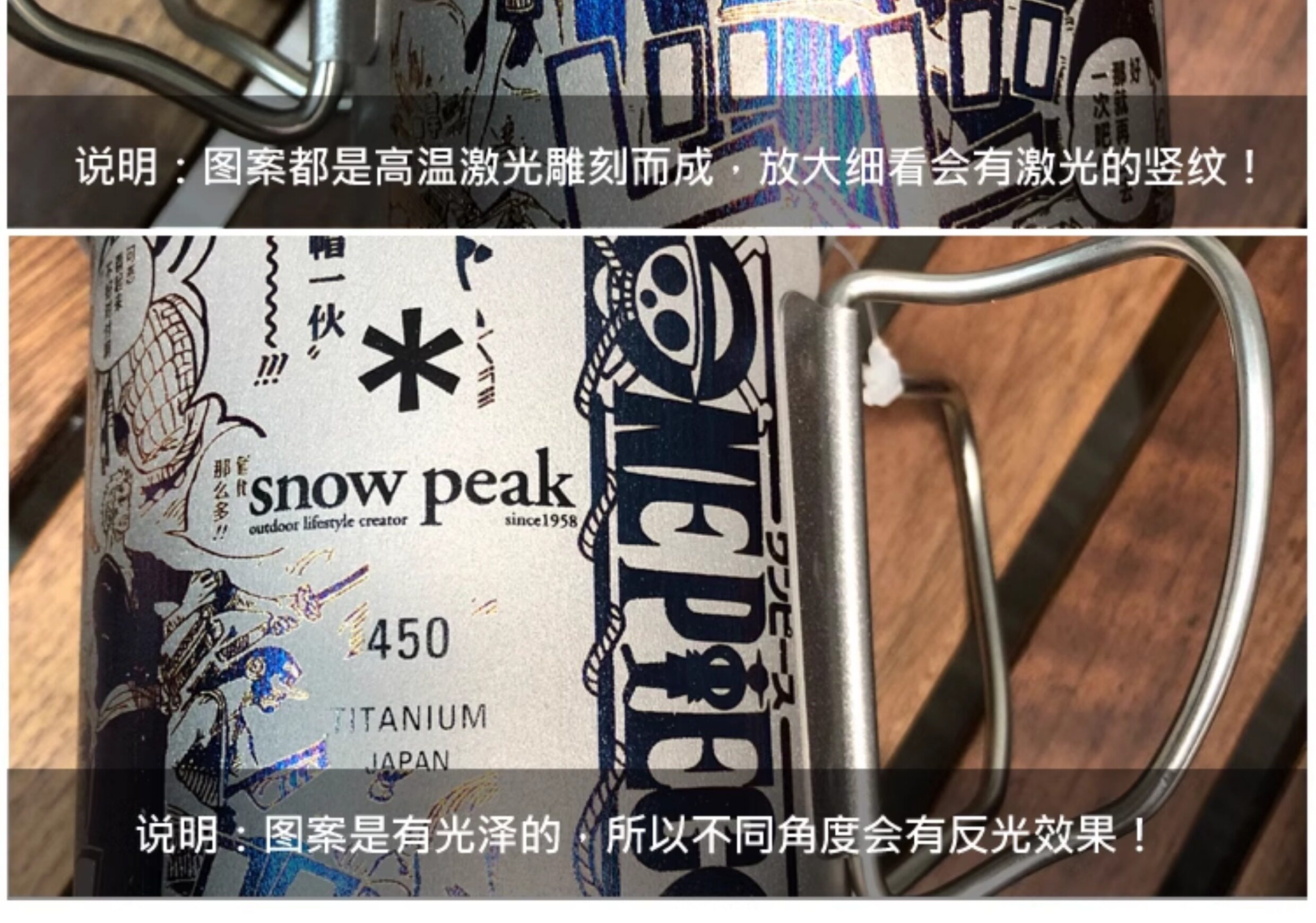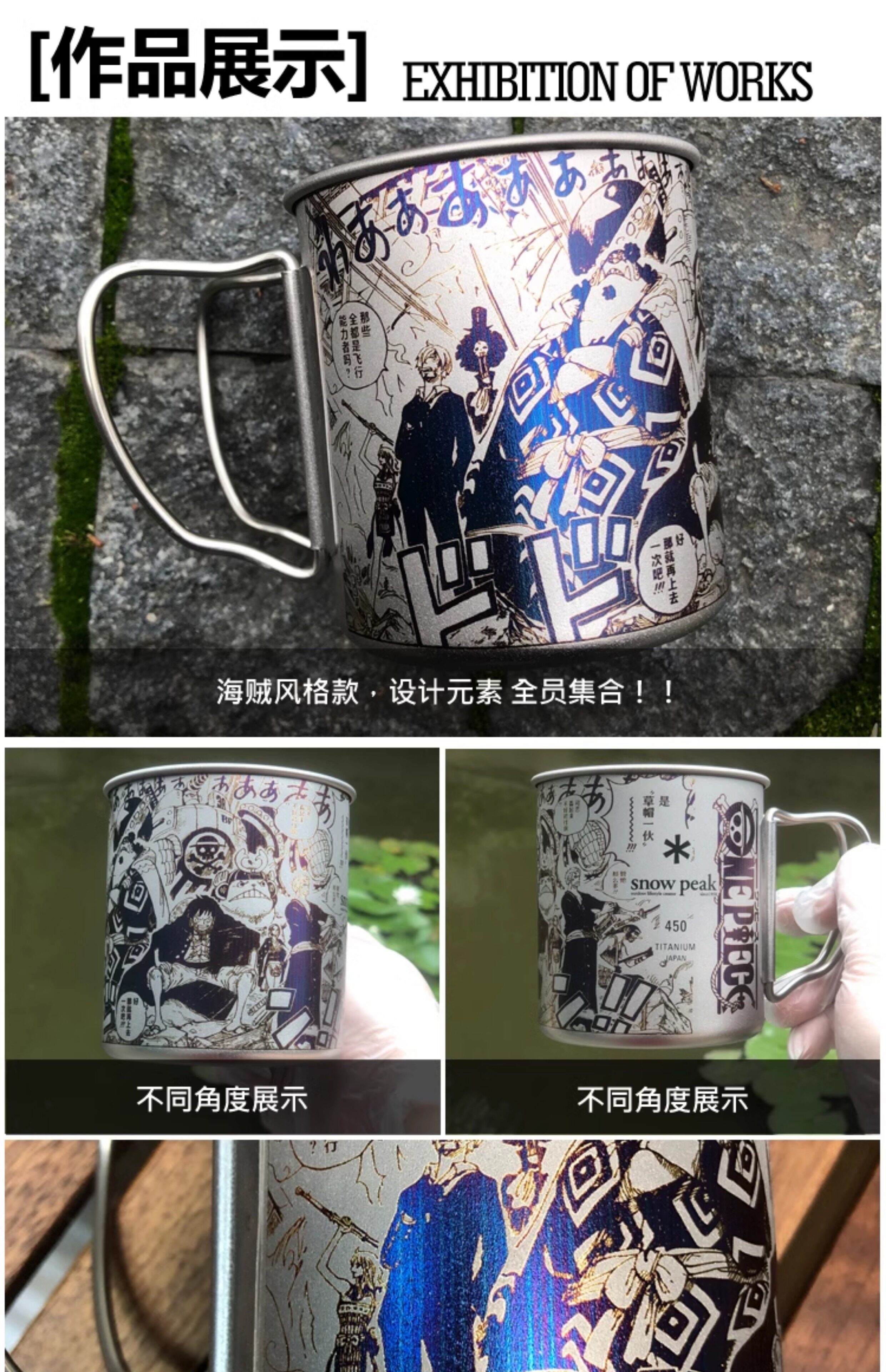 Snowpeak雪峰450ml鈦杯手工海賊王雕刻輕便折疊戶外馬克杯咖啡杯