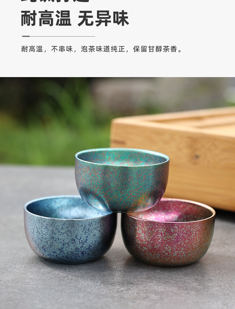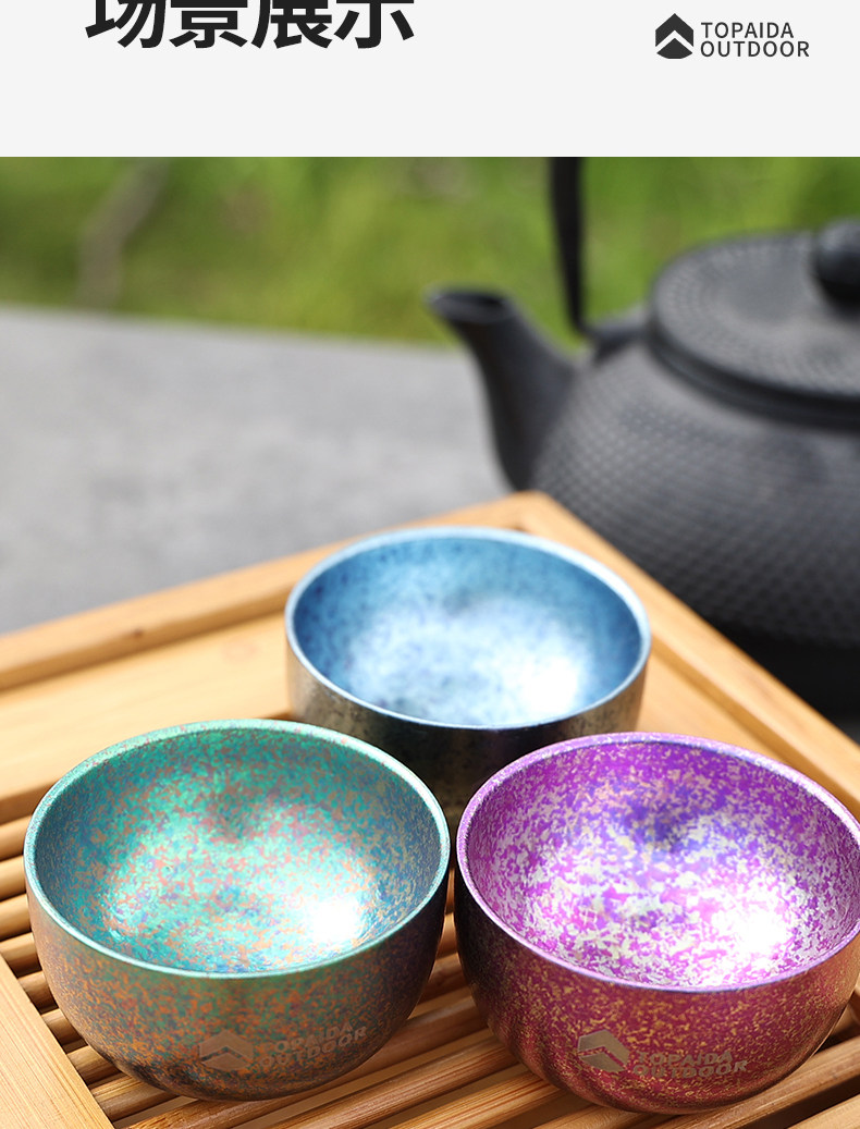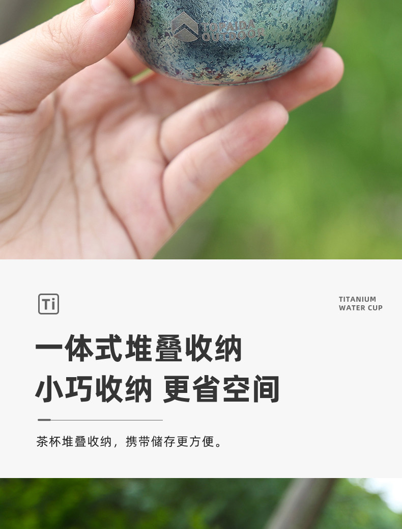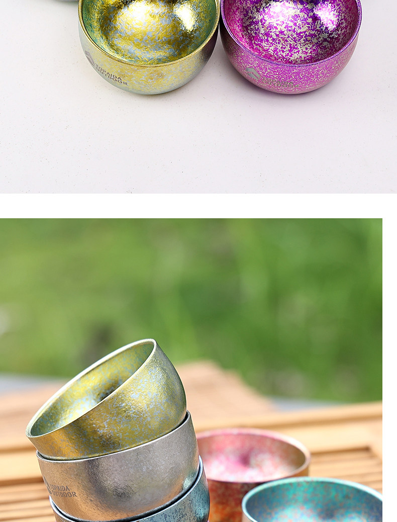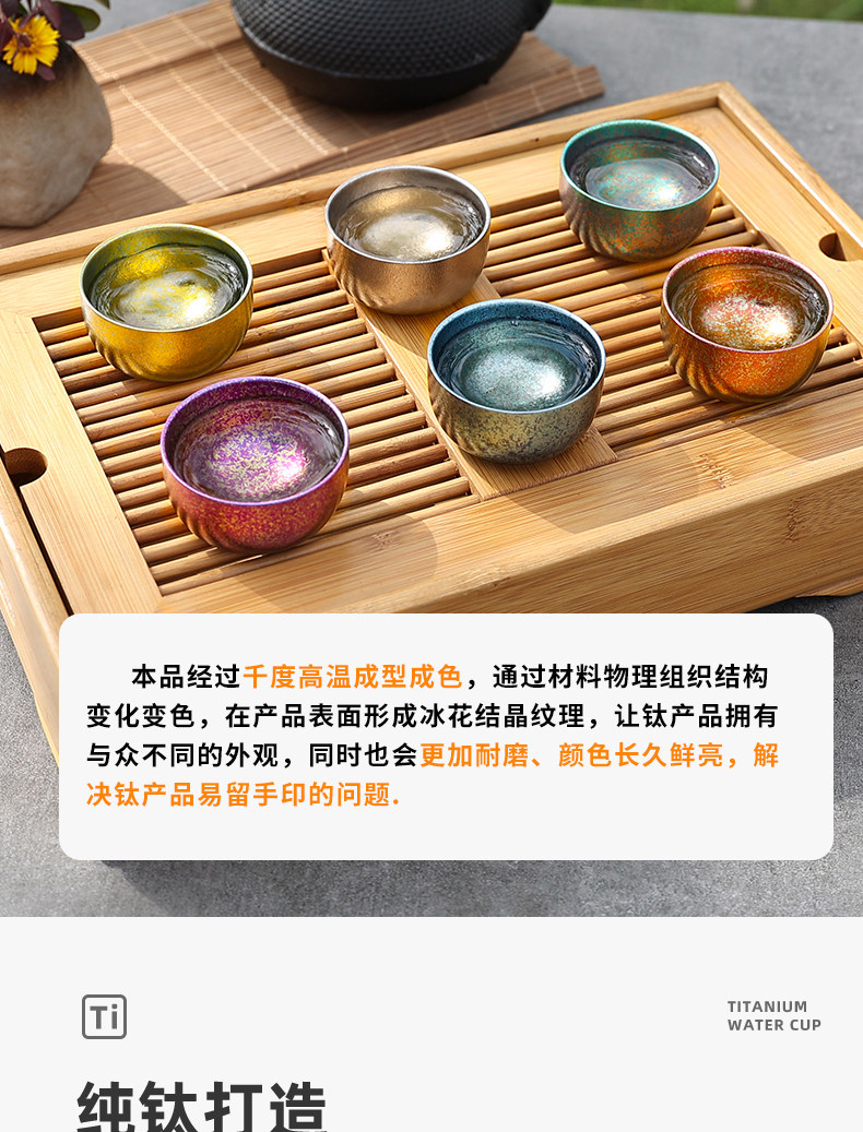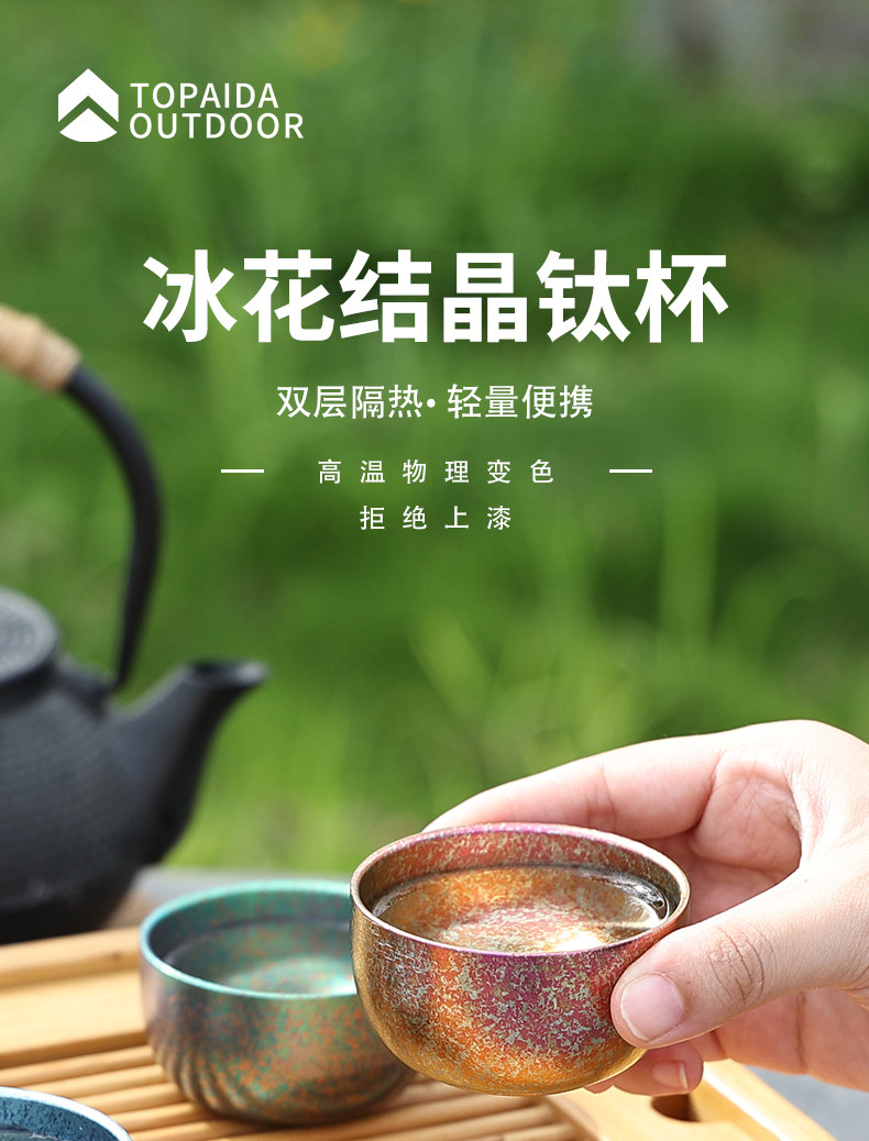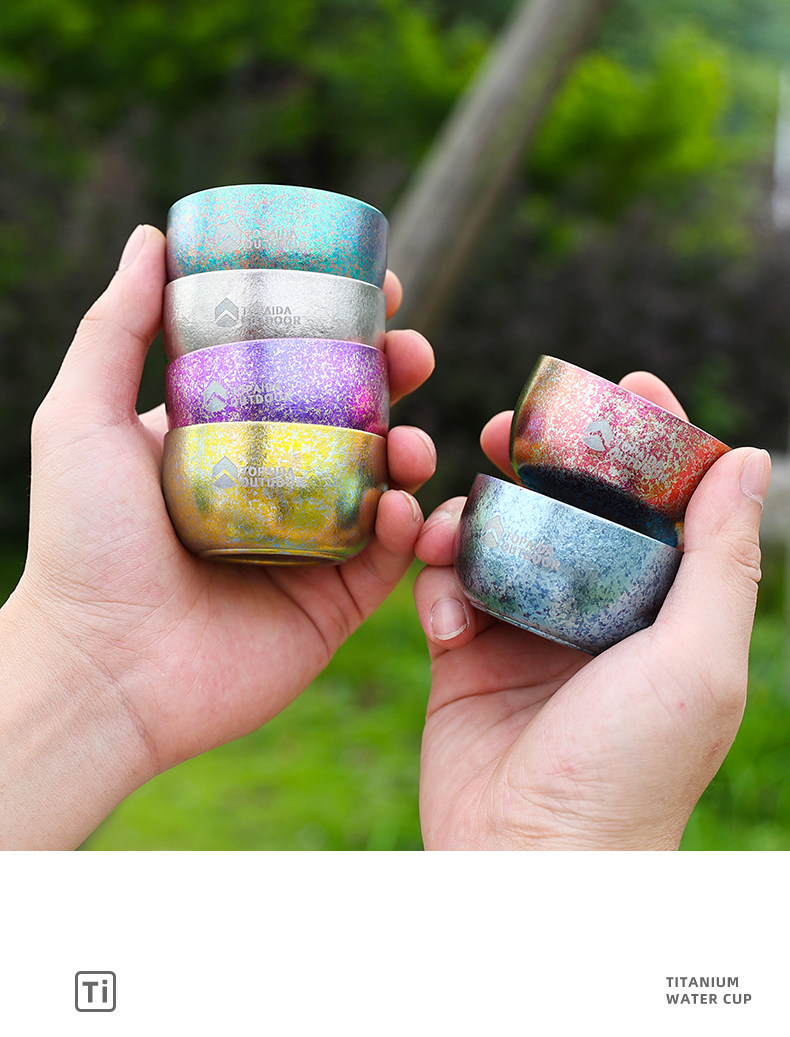 戶外純鈦杯雙層冰花茶杯耐高溫野外露營酒杯旅遊茶杯可攜式茶碗中式