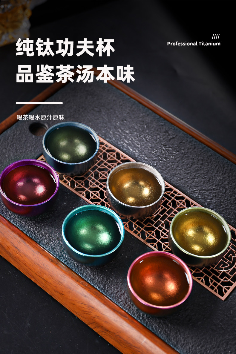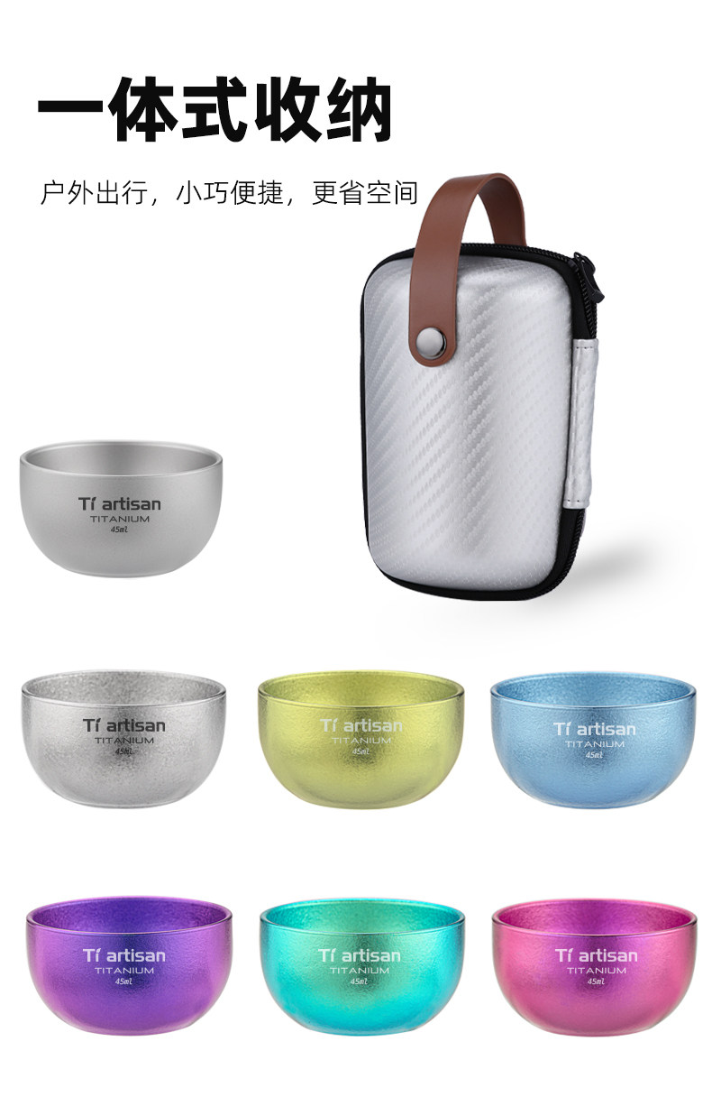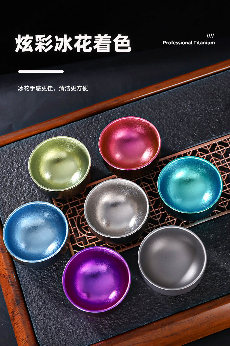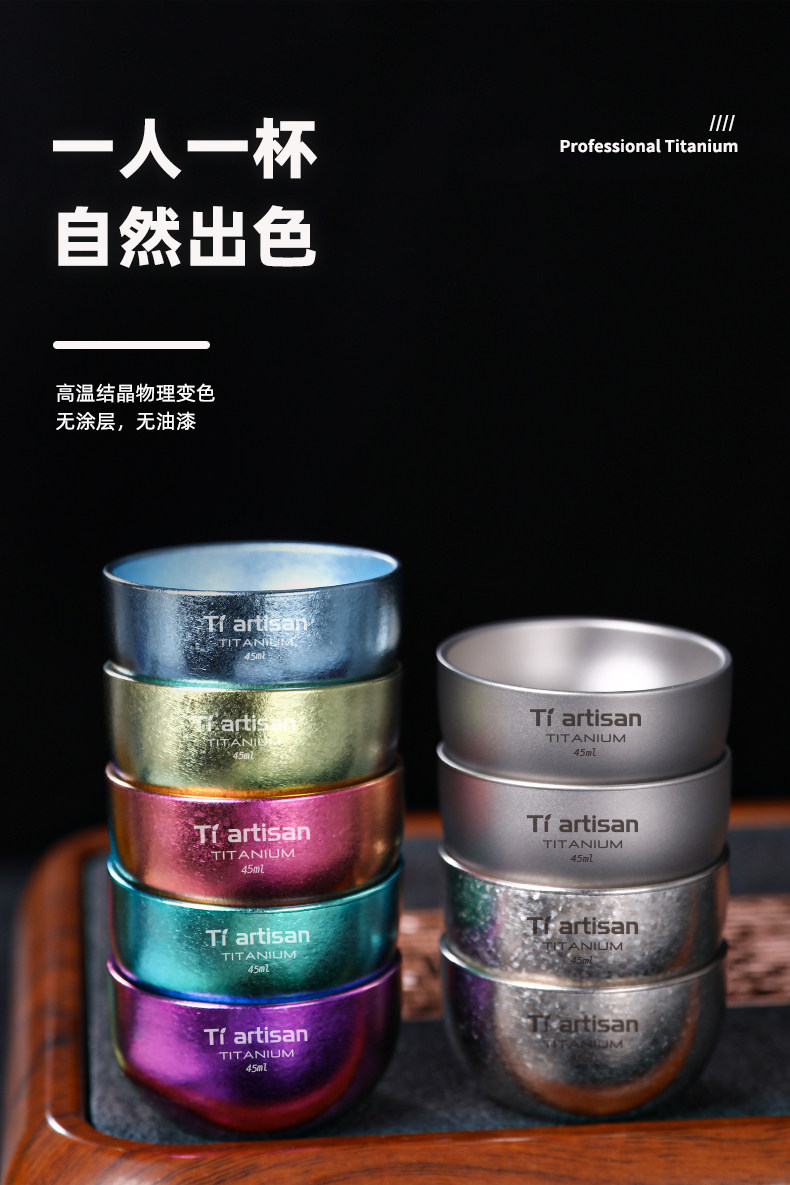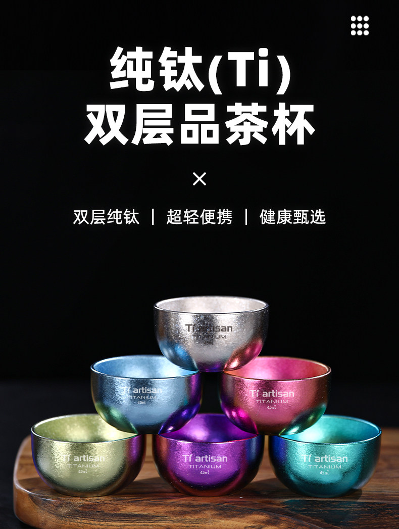 鈦工匠純鈦雙層小茶杯戶外防燙冰花鈦杯露營旅行茶具主人杯鈦水杯