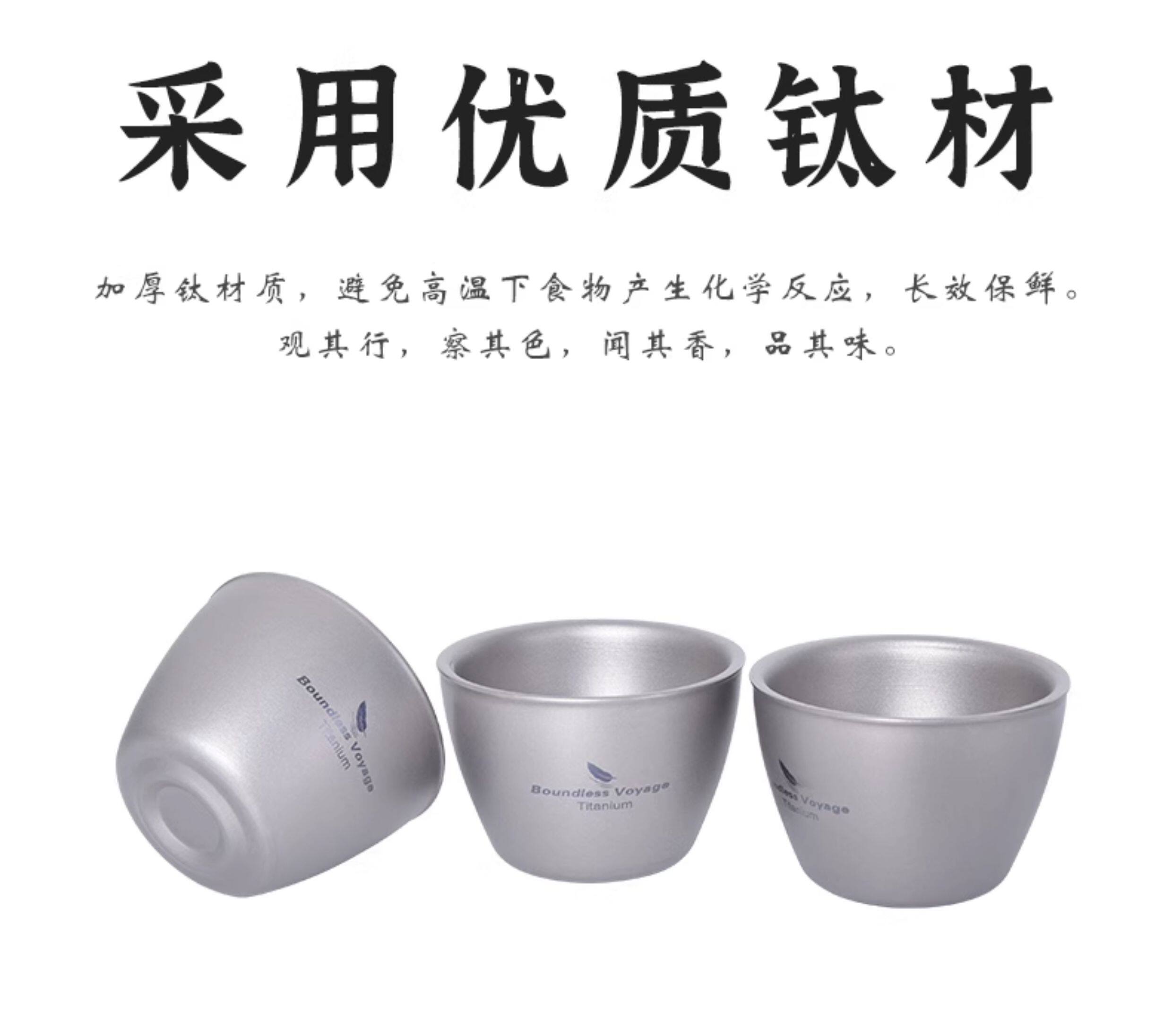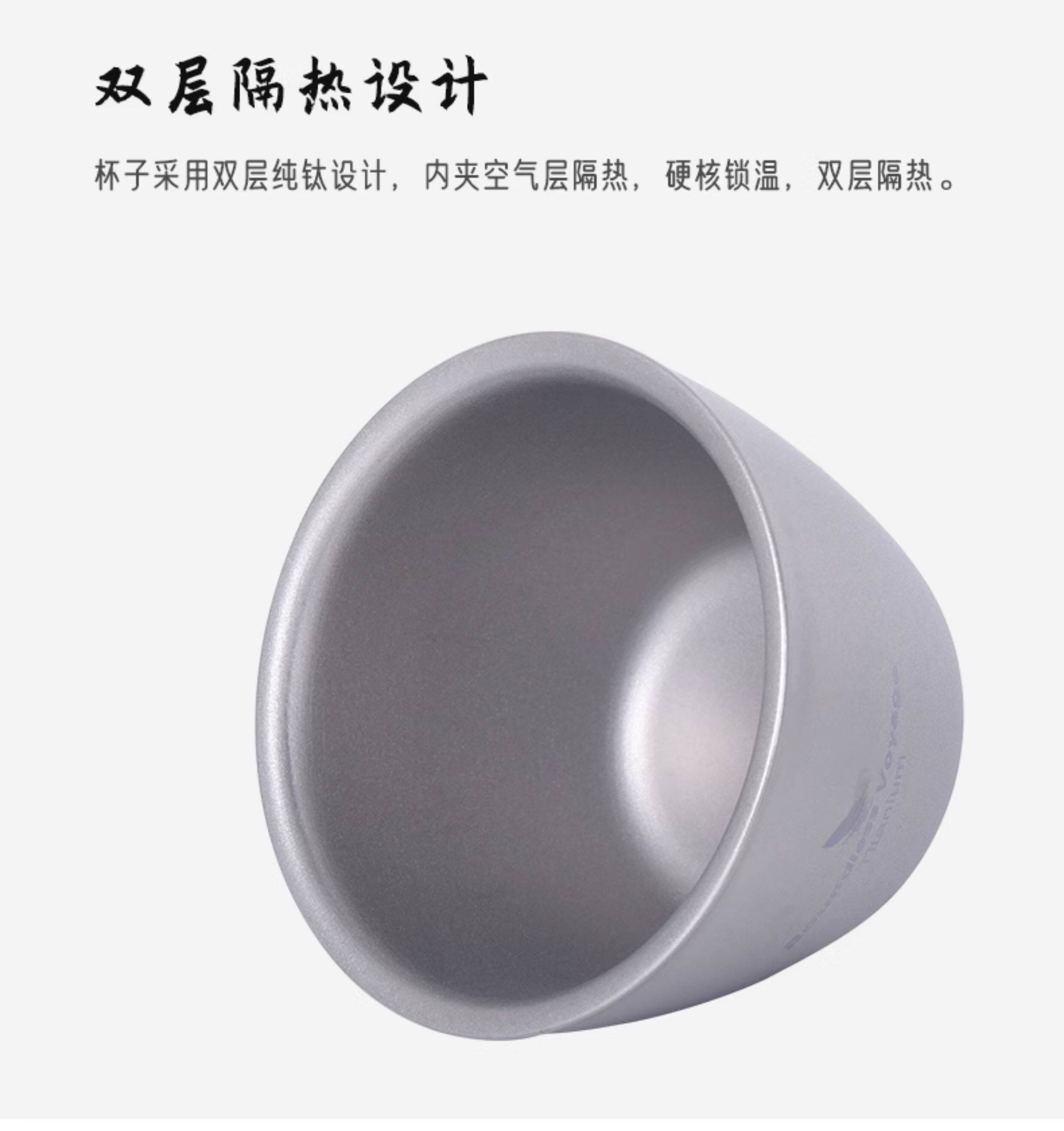 必唯純鈦小茶杯40ml迷你杯子茶具戶外野營雙層水杯鈦杯露營喝茶杯