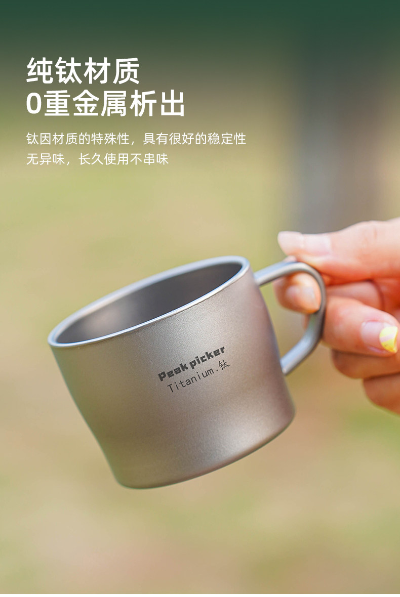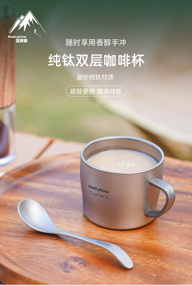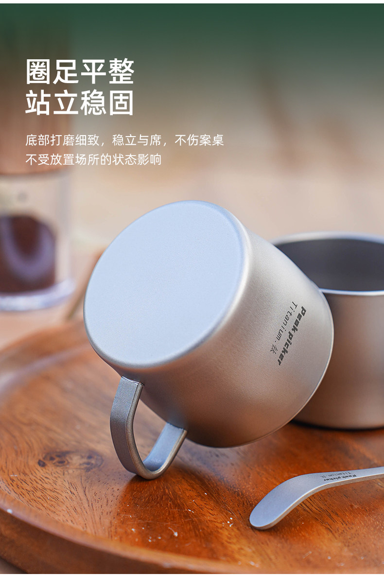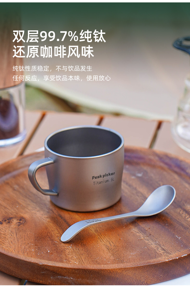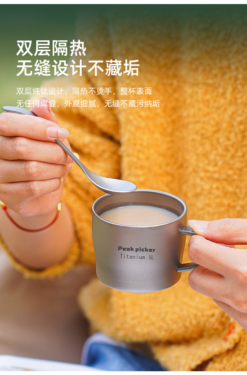 純鈦雙層馬克杯咖啡杯帶把手防燙品茗杯喝茶鈦杯高顔值可攜式馬克杯