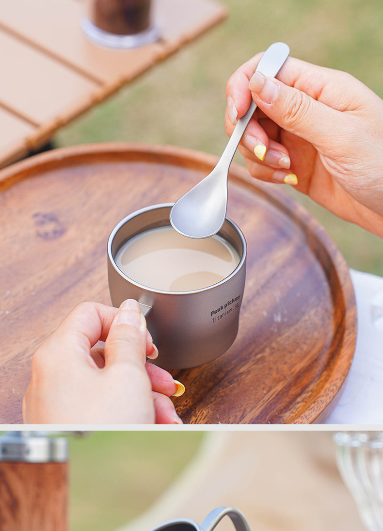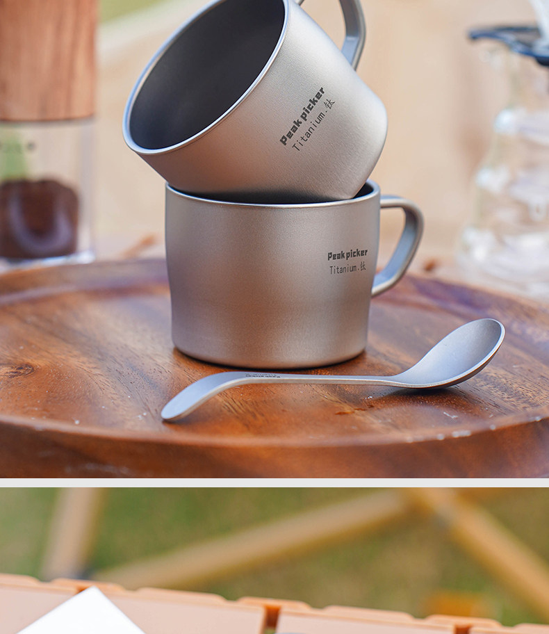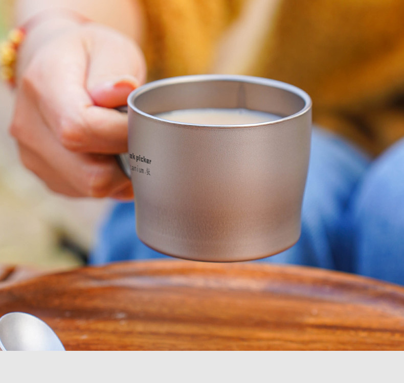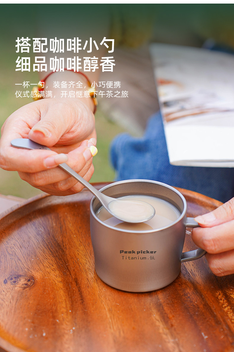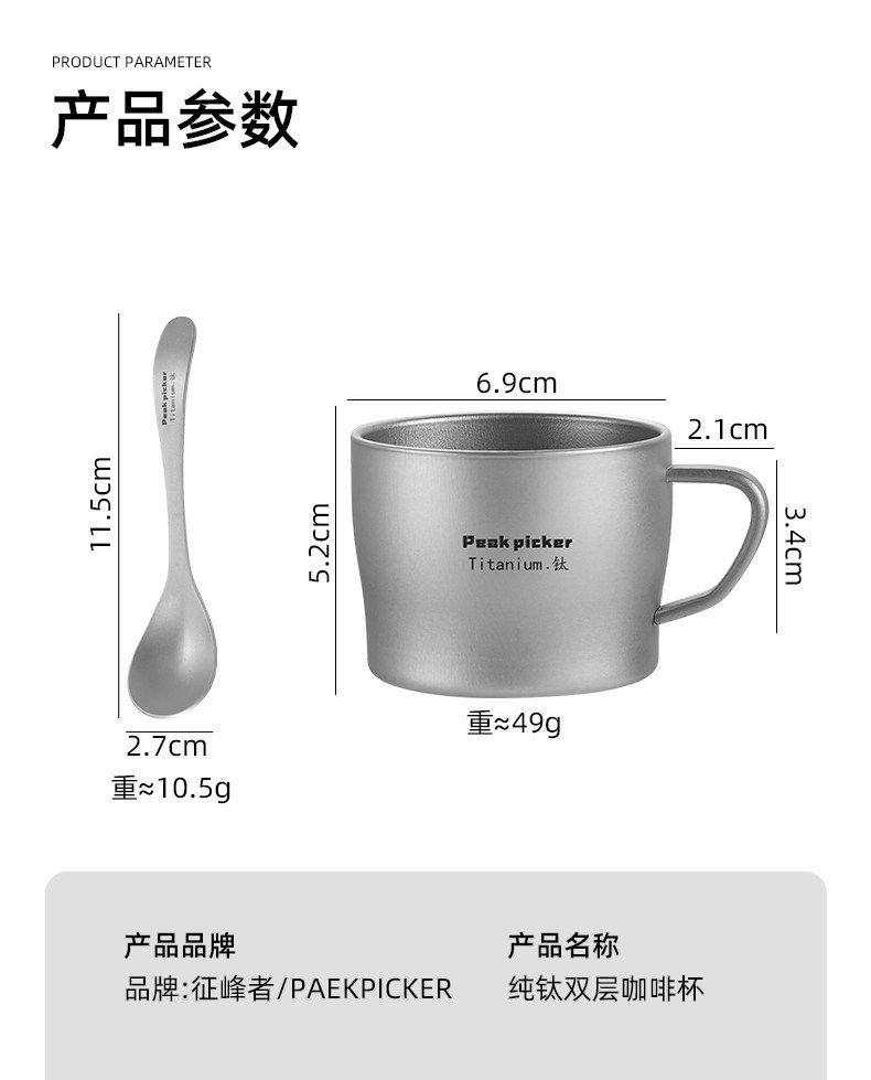 純鈦雙層馬克杯咖啡杯帶把手防燙品茗杯喝茶鈦杯高顔值可攜式馬克杯